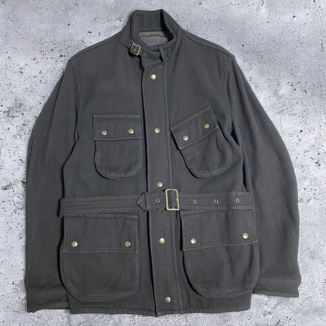 AD2004の "COMME des GARÇONS HOMME"より、 メルトンウールモーターサイクルジャケットです。 バブアーのインターナショナルをモチーフにした一着です。 2004年より正式にオムのディレクションを担当された渡辺淳弥氏らしいアプローチが光るこちら。 ダブルジッパー仕様でシルエットに変化が加えられるのも嬉しいです。 サイズバランスも良く、欠損しがちなベルトも付く個体となっております。 size:L color:Black 着丈74.5cm 身幅58cm 肩幅47cm 袖丈64cm アーム幅23cm 袖口幅11cm〜12.5cm