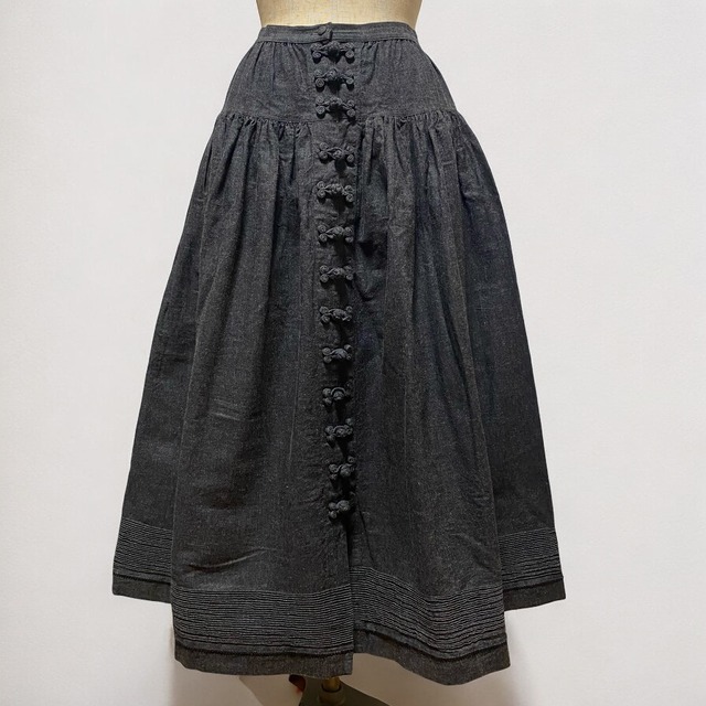 【For Women's】1990s〜"KANEKO ISAO" Chinese Button Pin Tuck Denim Skirt