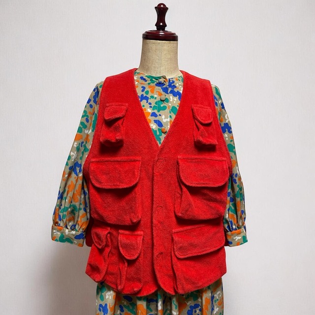 1990年代初頭の"Hysteric Glamour"より、 マルチポケットパイルベストです。 フィッシャーマンらハンティングといったウェアに見られるディティールをデザインとして落とし込んだマルチポケットベスト。 現代では、デザインとして見られることも珍しくはないと思いますが、こちらは1990年代初頭のヒスが爆発的な人気を見せる直前の頃のアーカイブアイテムとなります。 パイル生地であるが故に、野暮ったさを全く感じませんし、絶妙な発色のカラーも最高です◎ 着丈52cm 身幅53cm 肩幅32cm アーム30cm