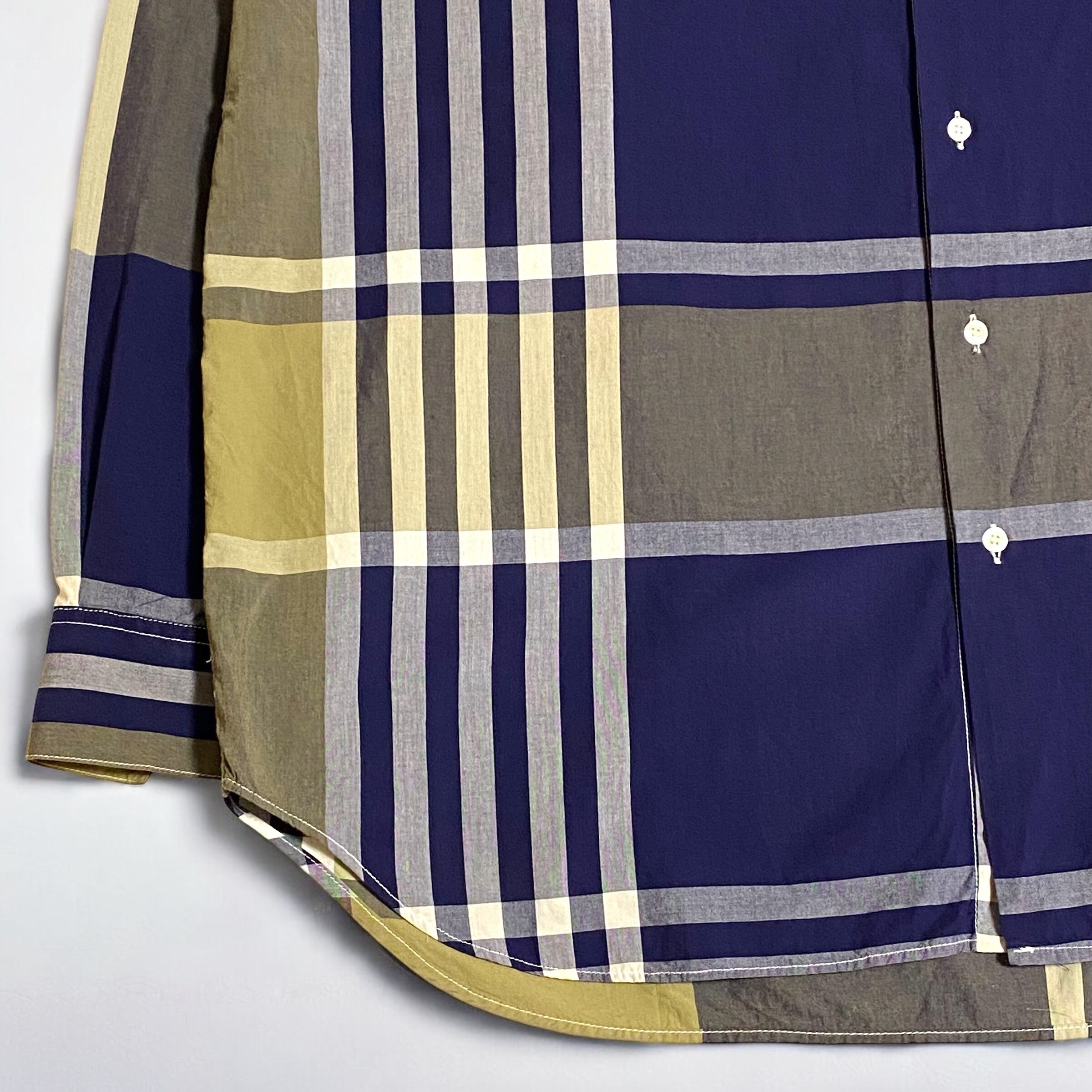 1990s "EMPORIO ARMANI" Multi Check Pattern Cotton Band Coller Shirts MADE IN ITALY