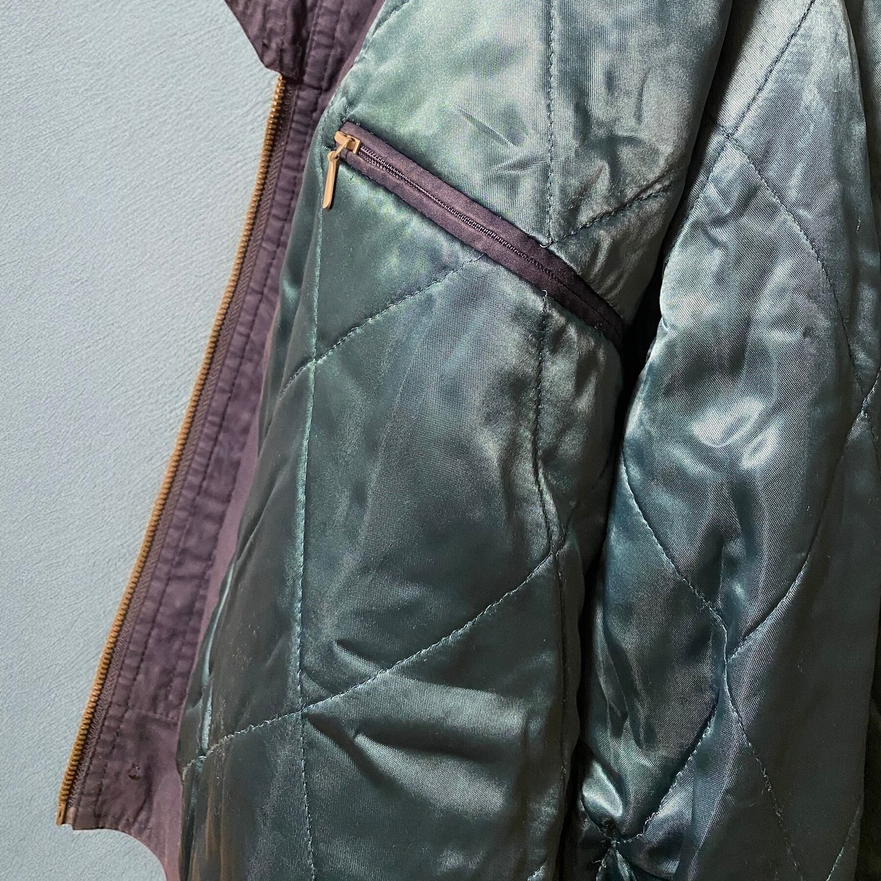コットン×ポリの茄子紺のボディーに、美しいターコイズブルーが映えるサテンのライニング。