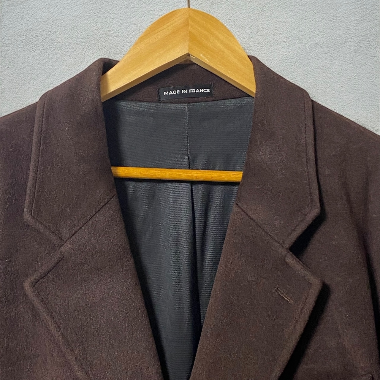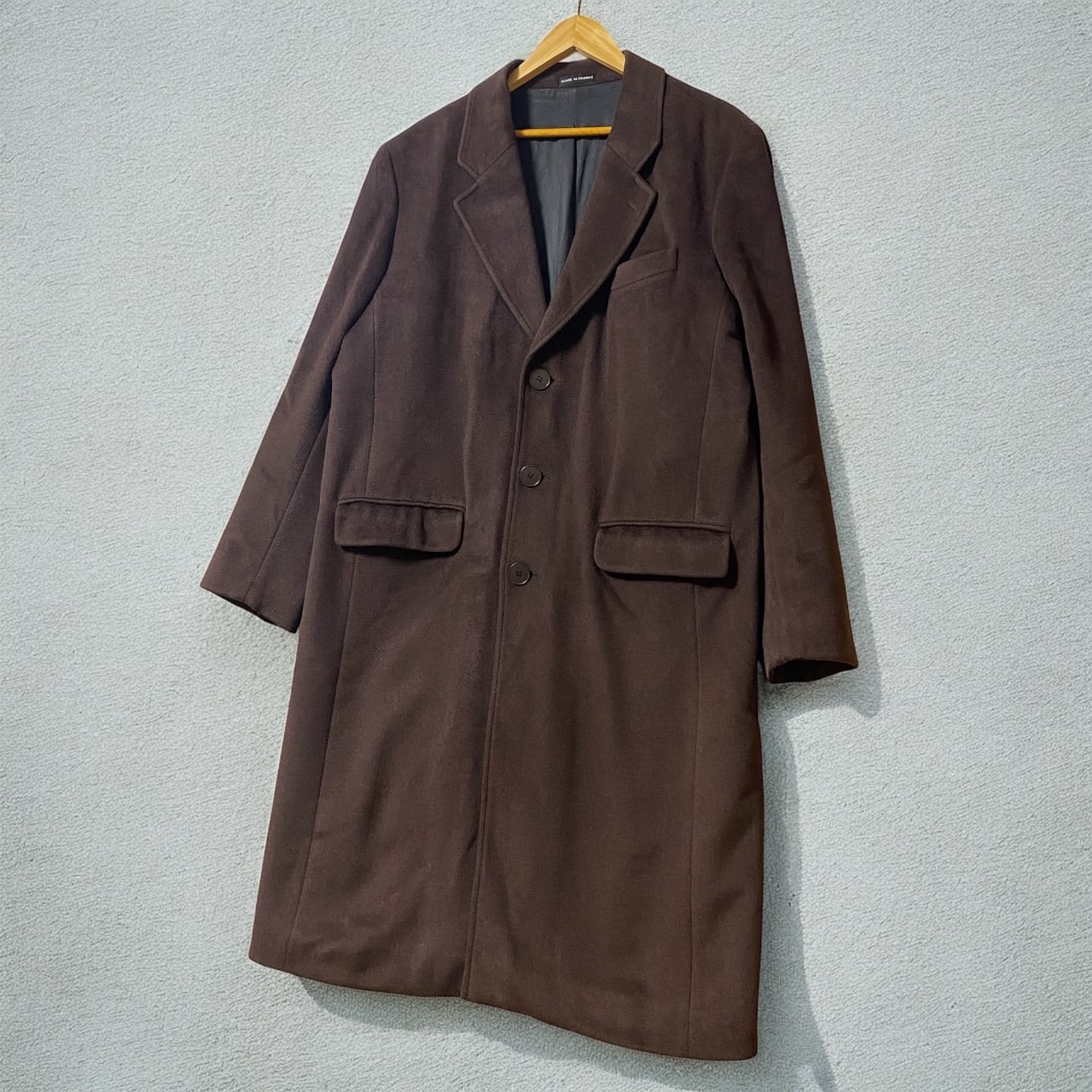 海外ライセンスの1990年代前半のオールドアニエスより、柔らかな質感のメルトンウールのチェスターコートです。