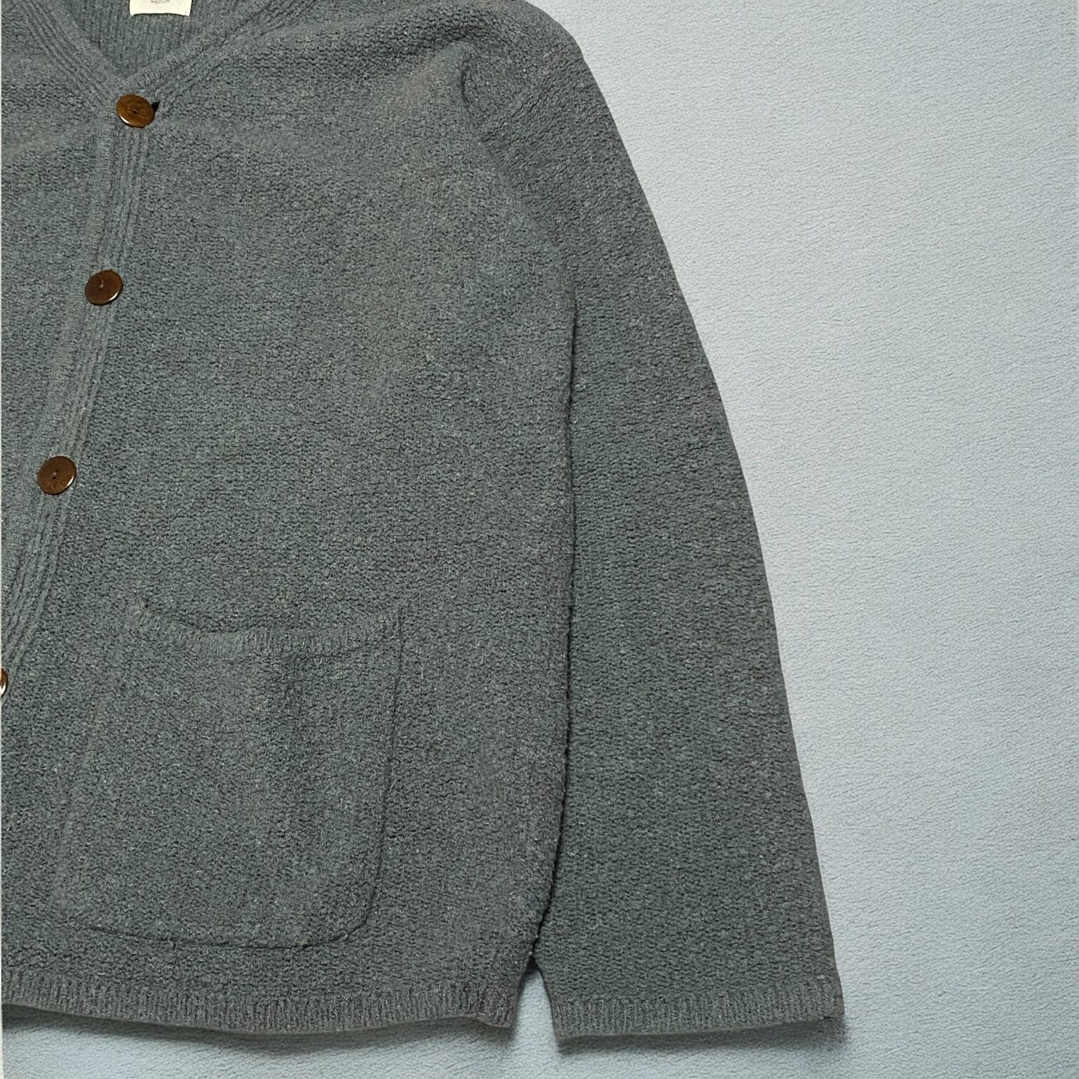 のウールミックス生地から形成されるカーディガンで、田口氏のパターンの妙が存分に感じられる素晴らしいシルエットの一枚となっております◎