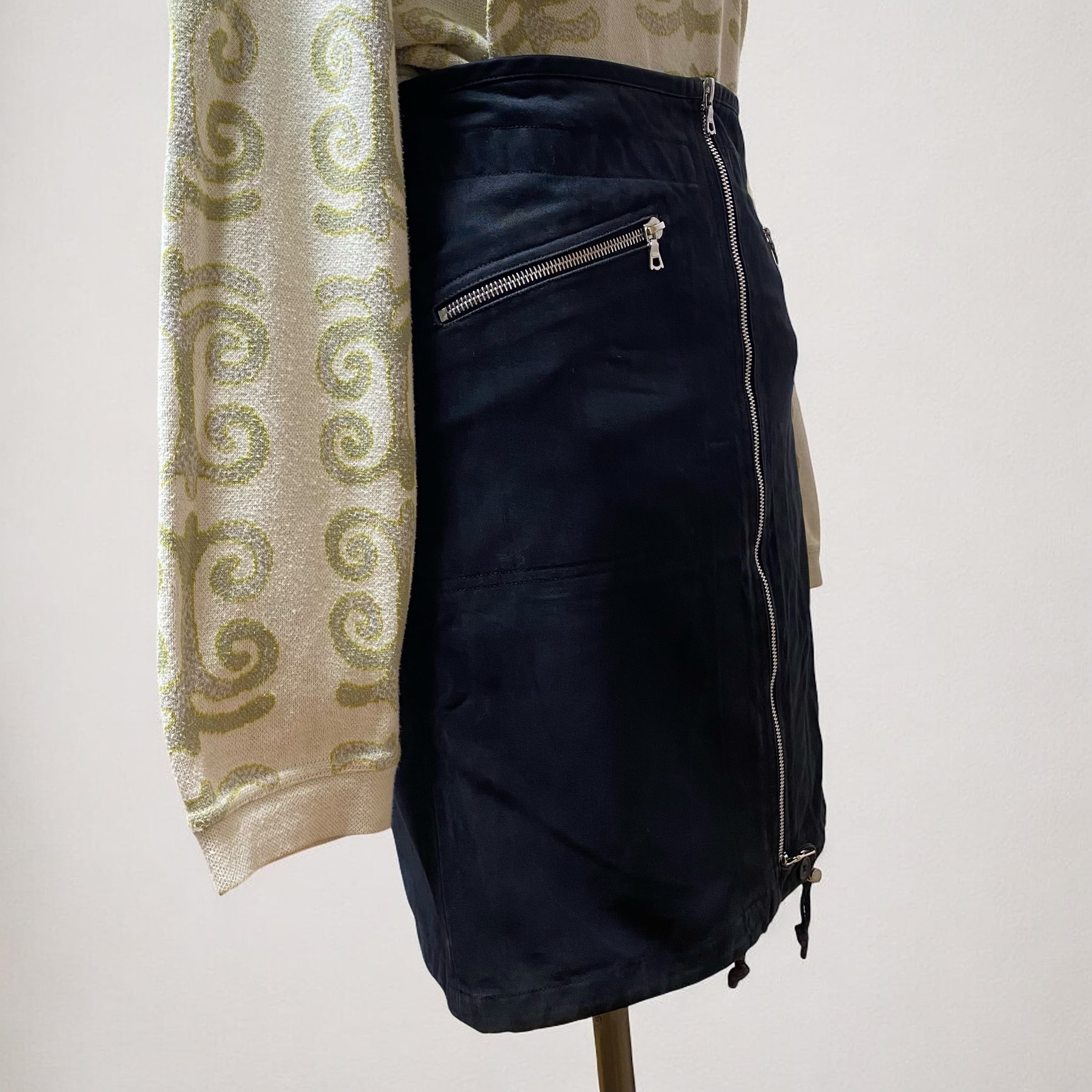 【For Women's】1990s〜 "A.P.C" Black Moleskin Diagonal Zip Skirt MADE IN FRANCE