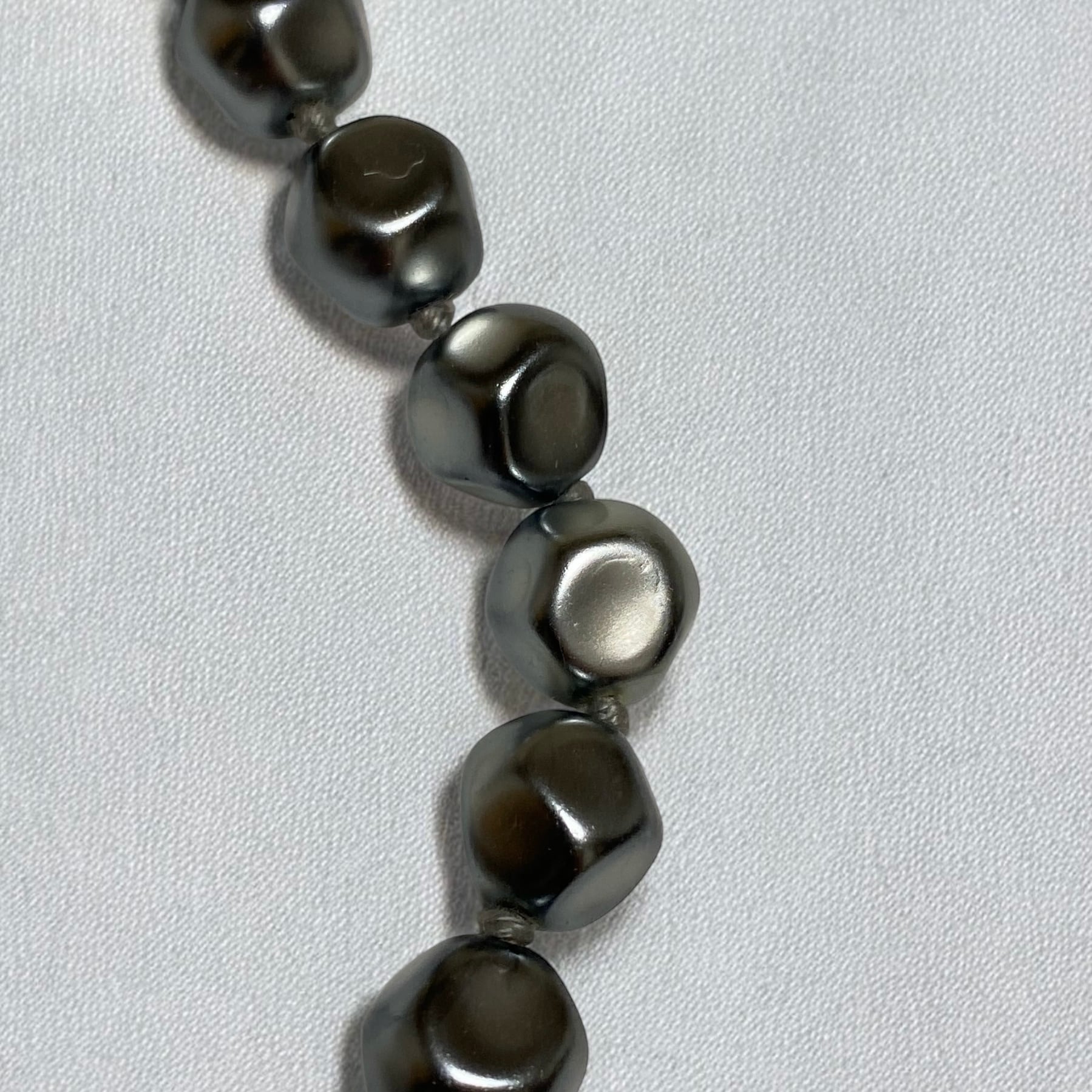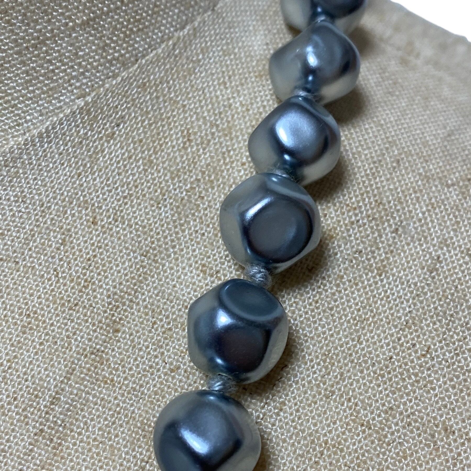 こちらはパールモチーフのネックレスで、石ころをパールにした様なインダストリアルな雰囲気が何とも素晴らしいアクセサリーです。