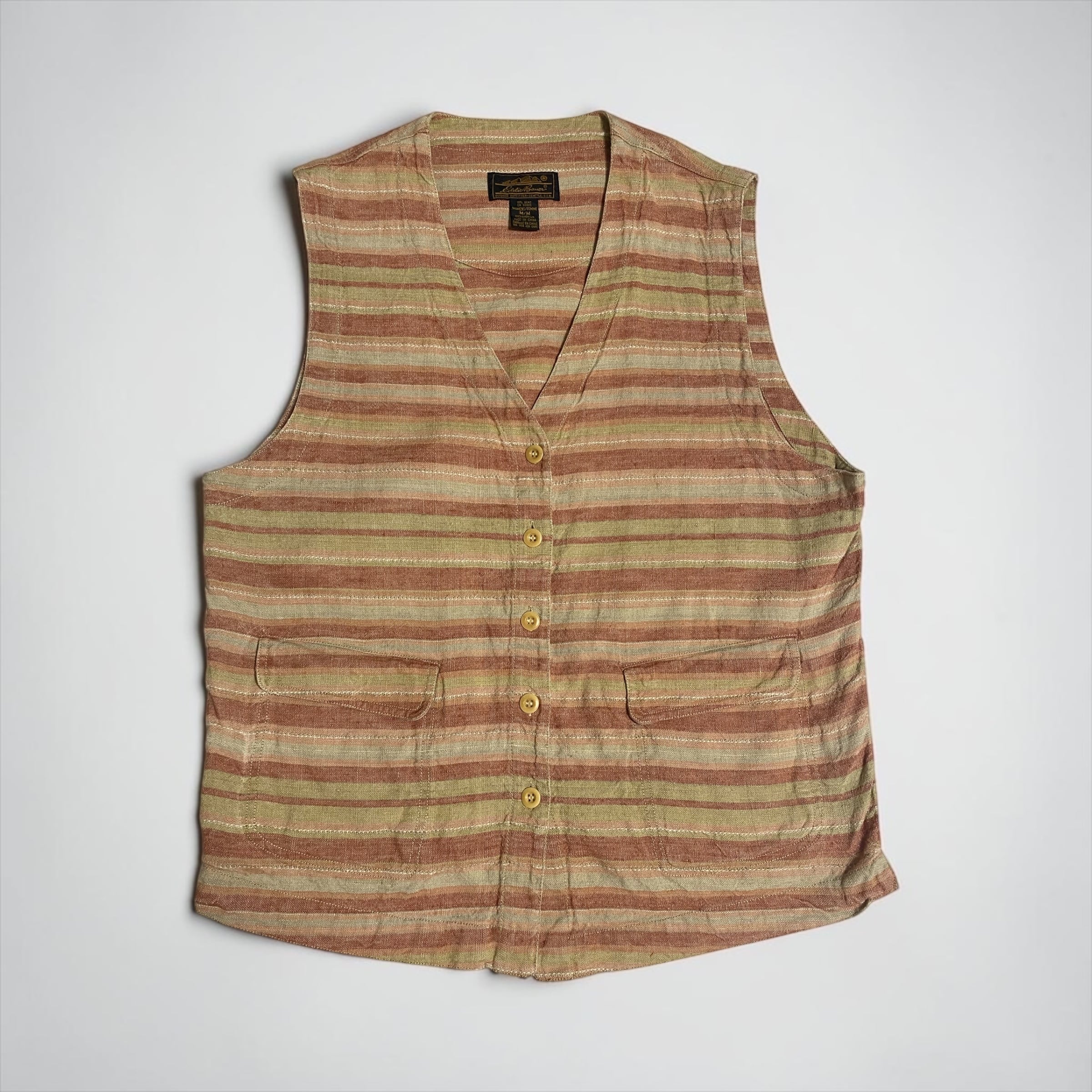 1980s〜90s "Eddie Bauer" Multi Border Linen Gilet
