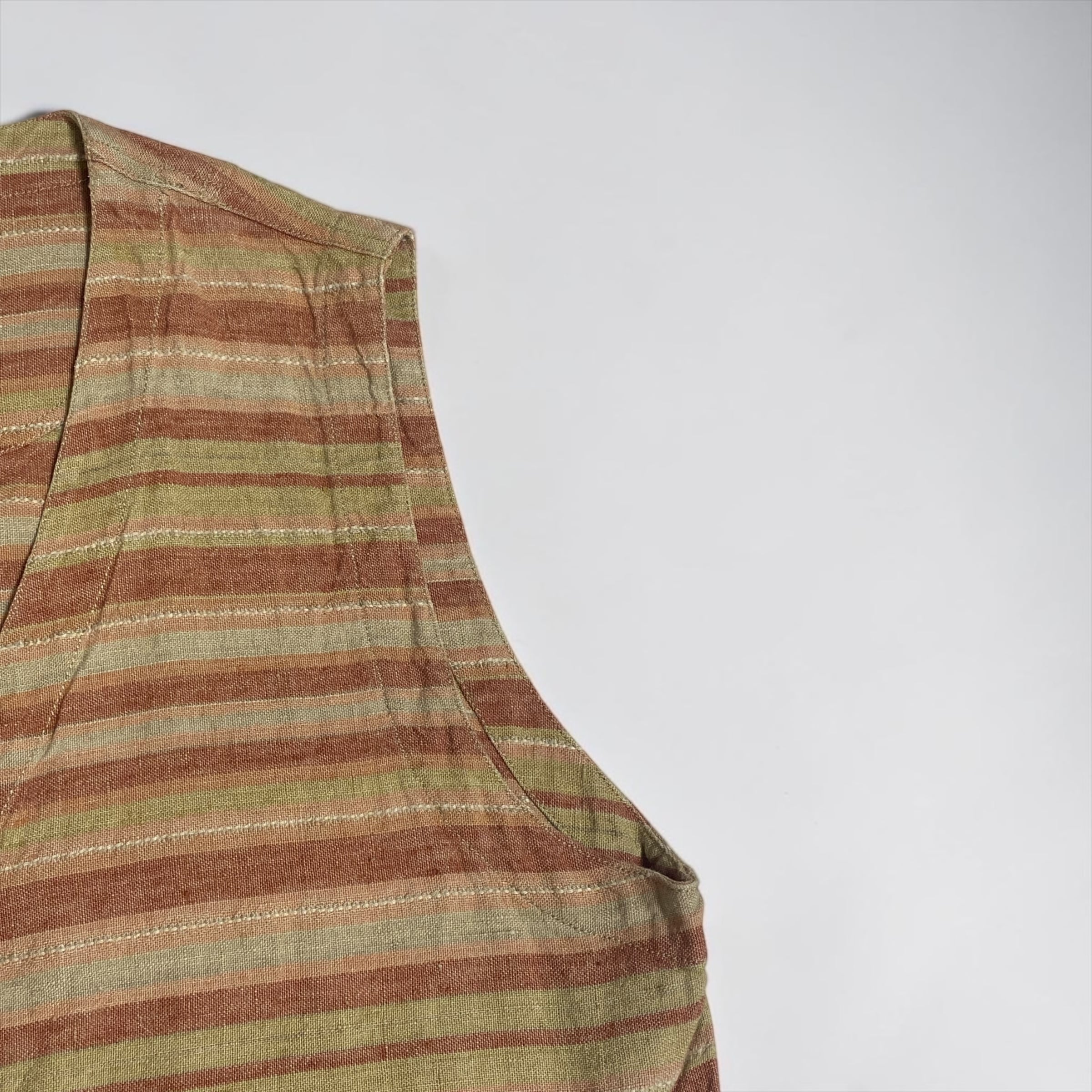 マルチボーダーのリネンベストです。