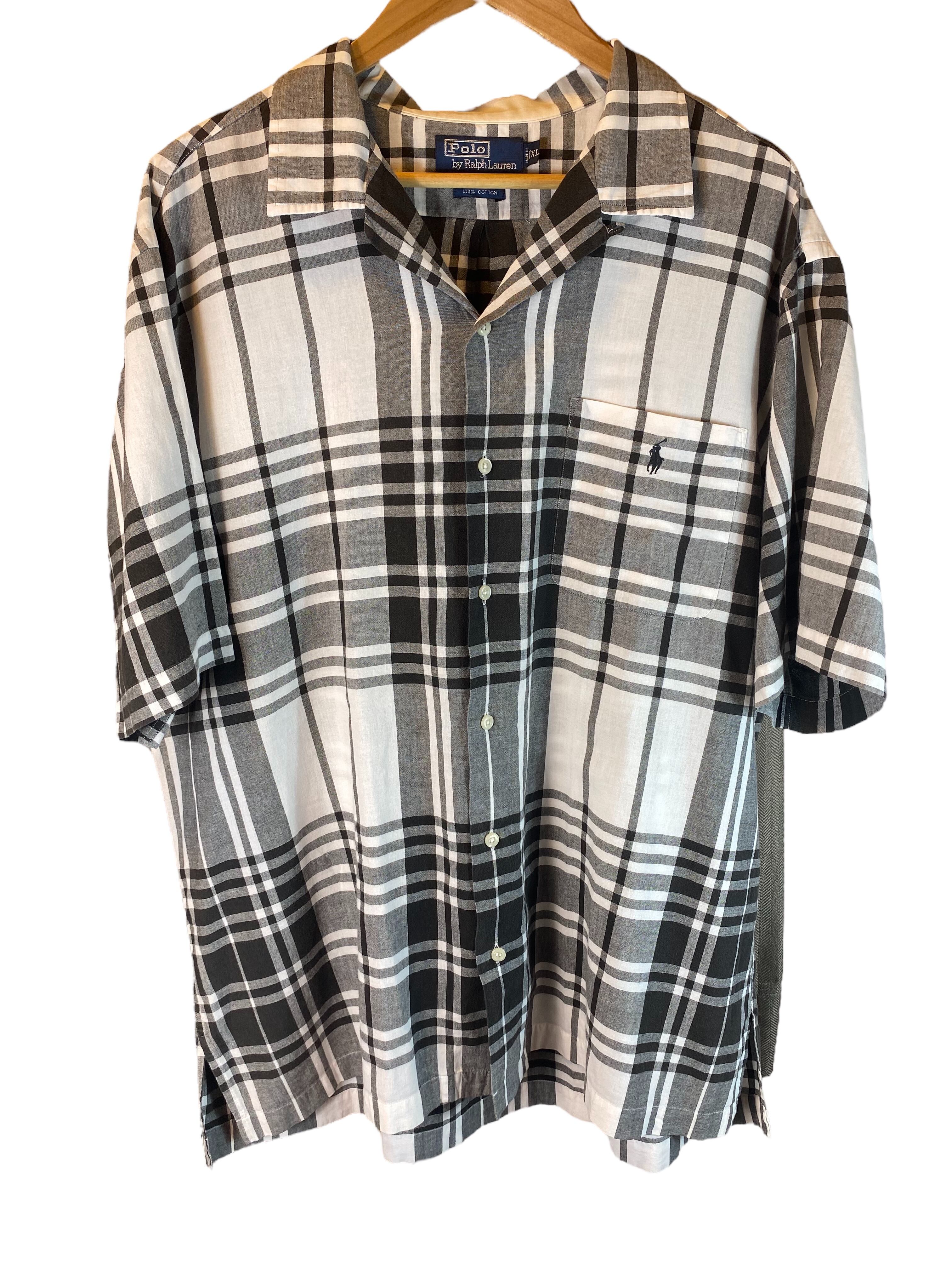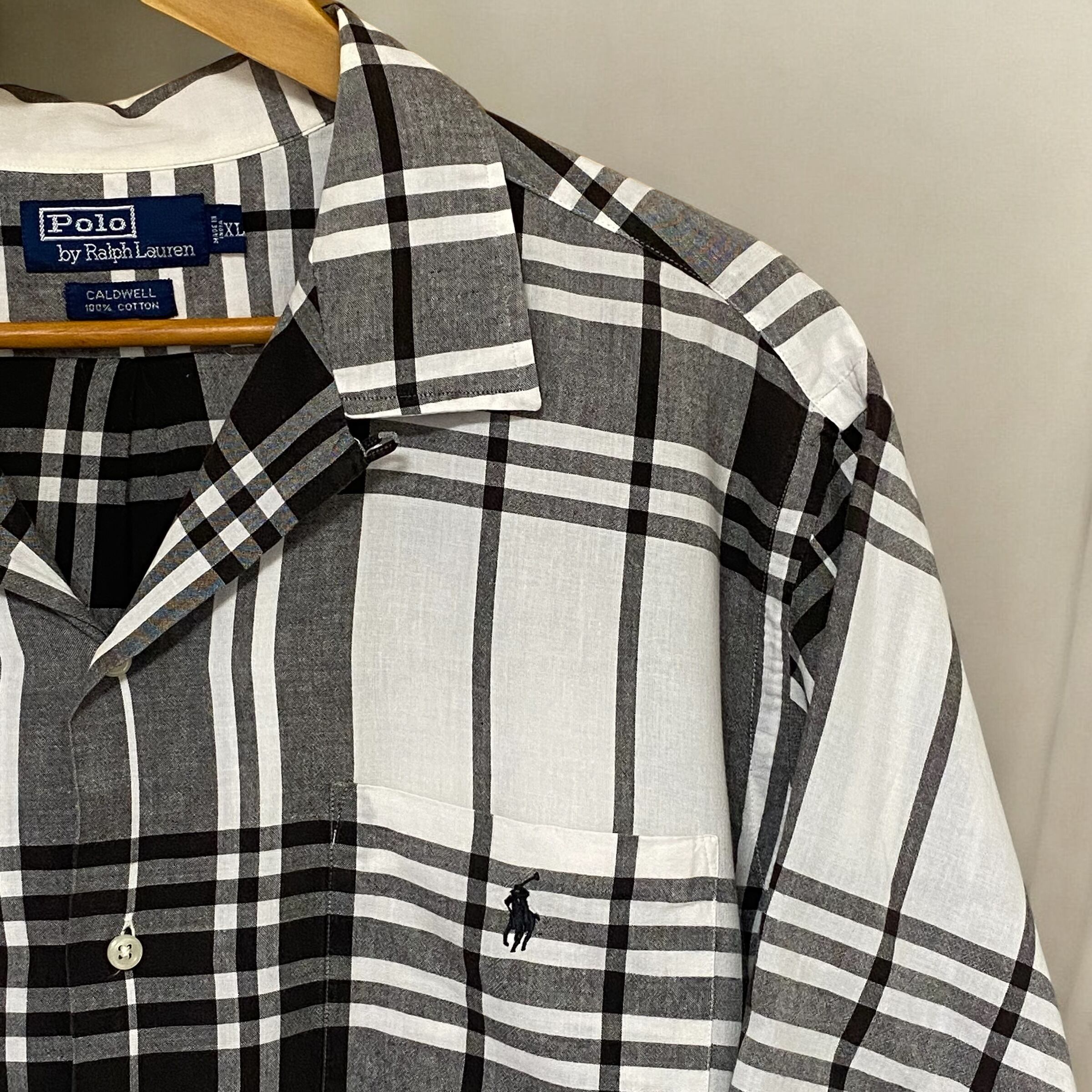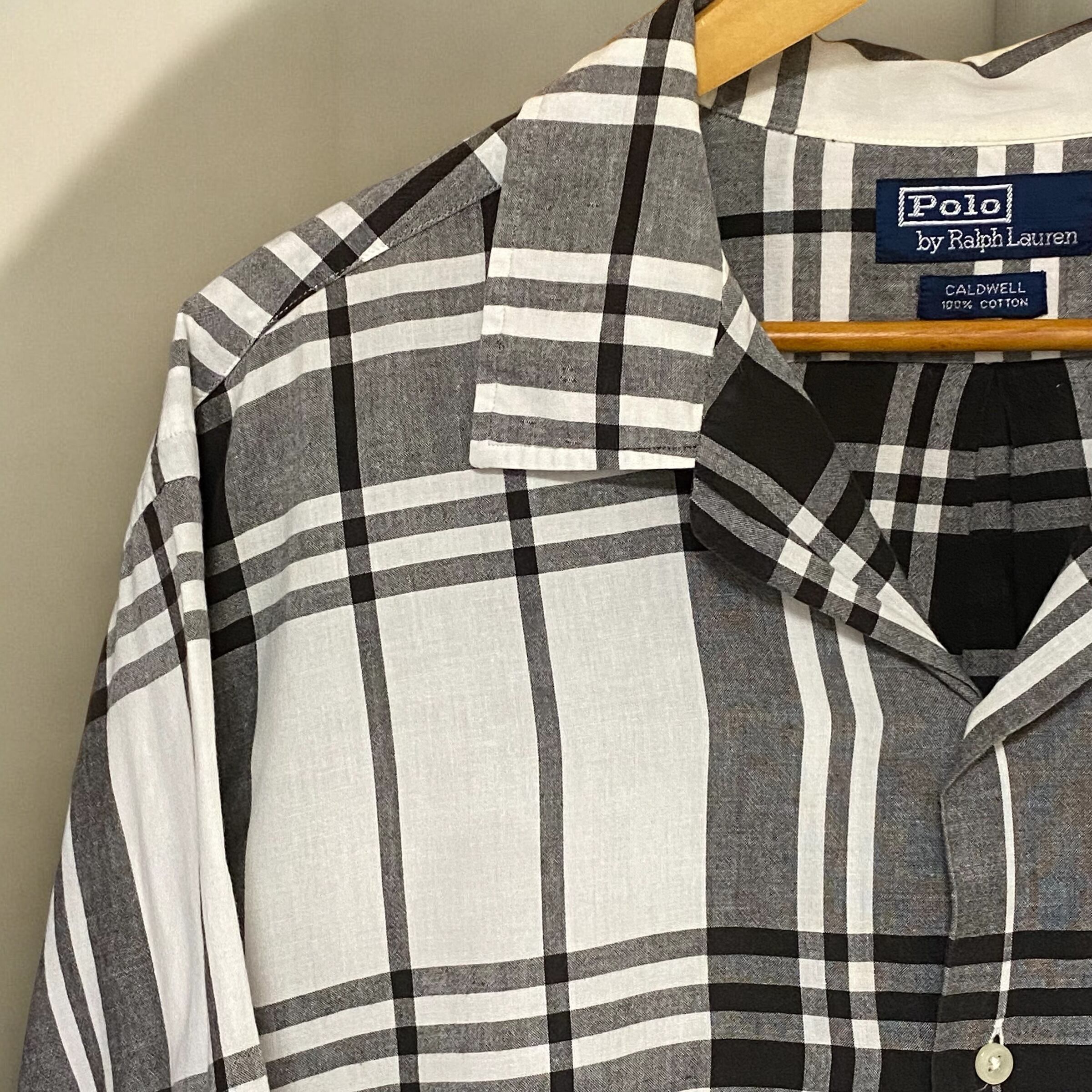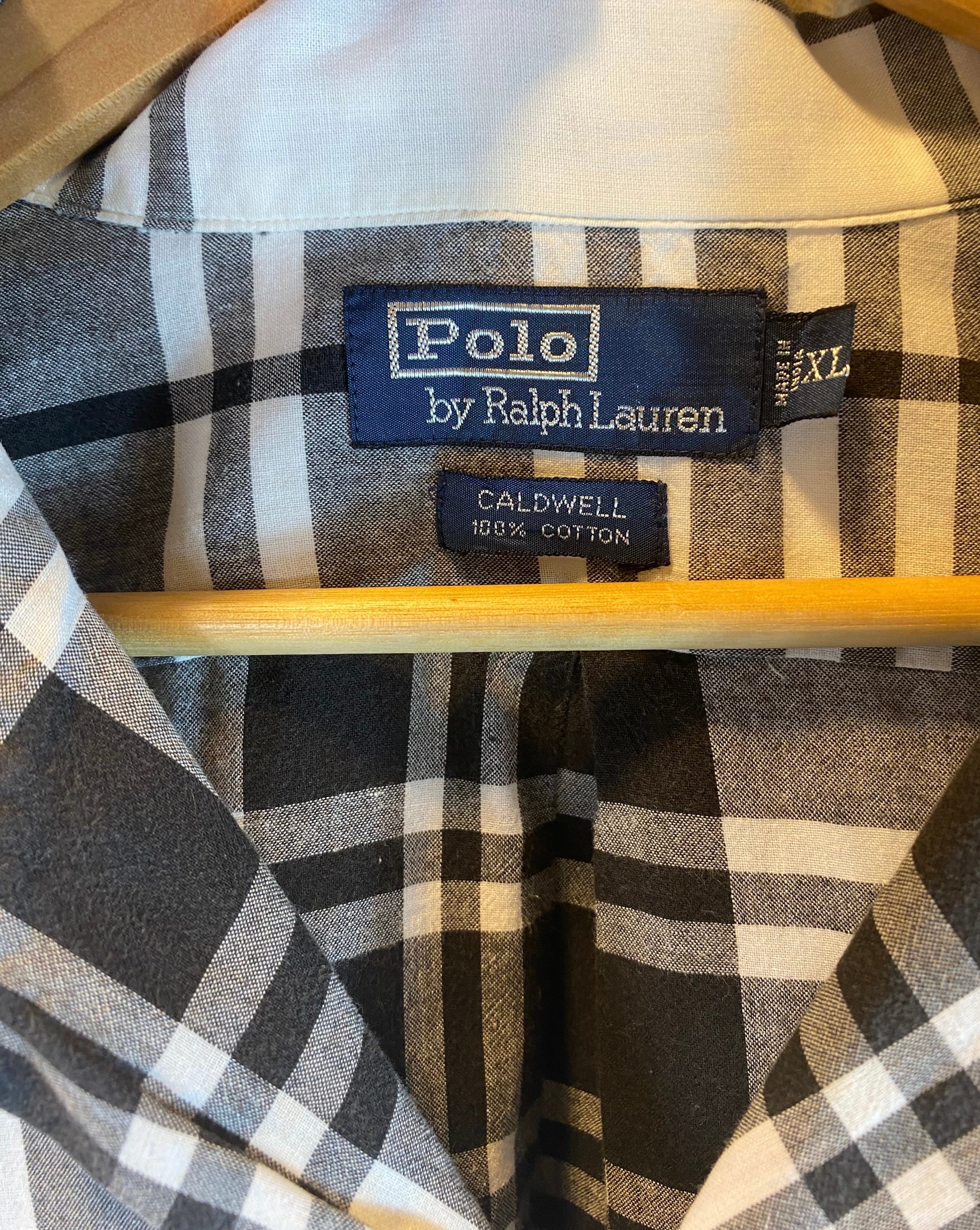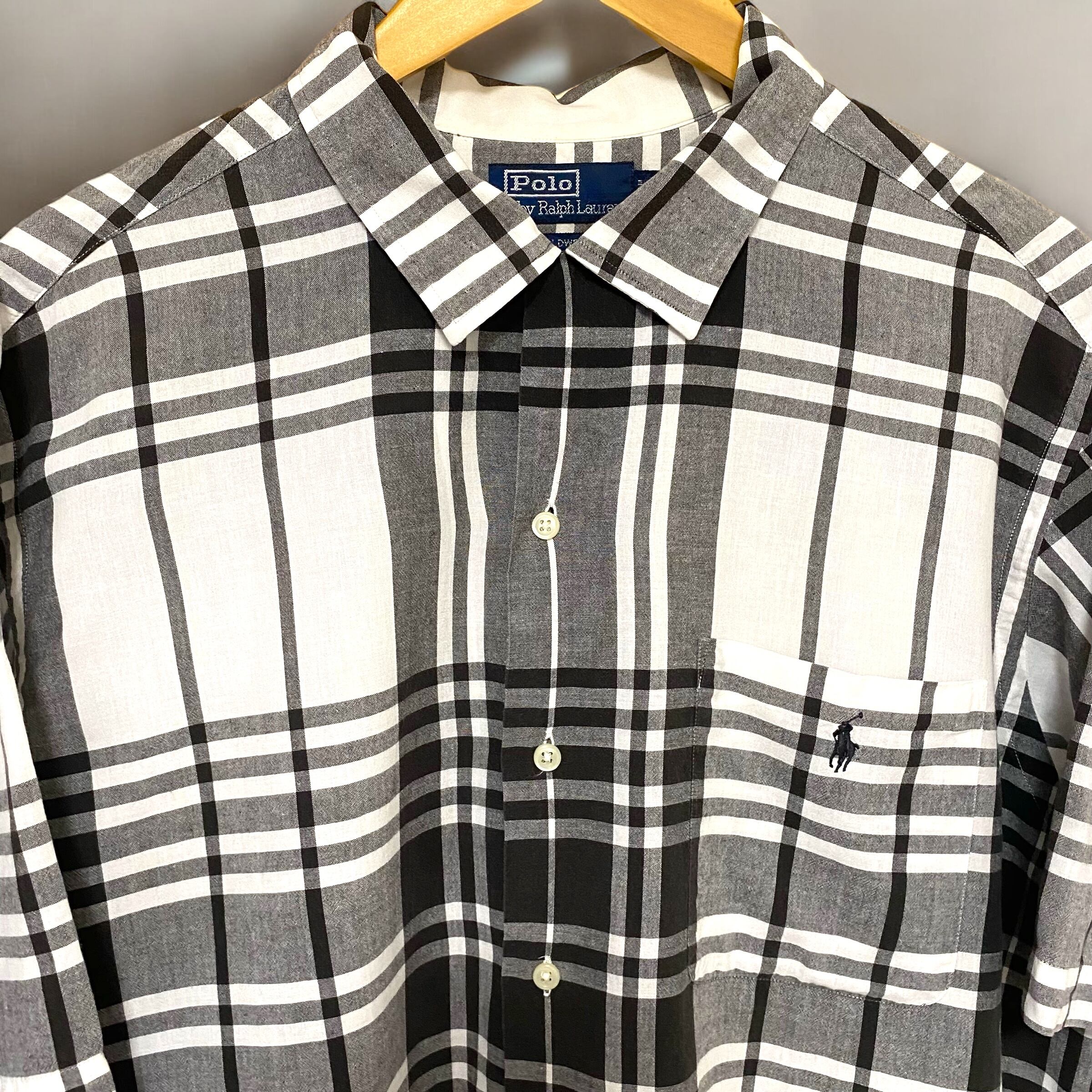1990's Polo Ralph Lauren Open Coller Shirts "CALDWELL" Black×White check