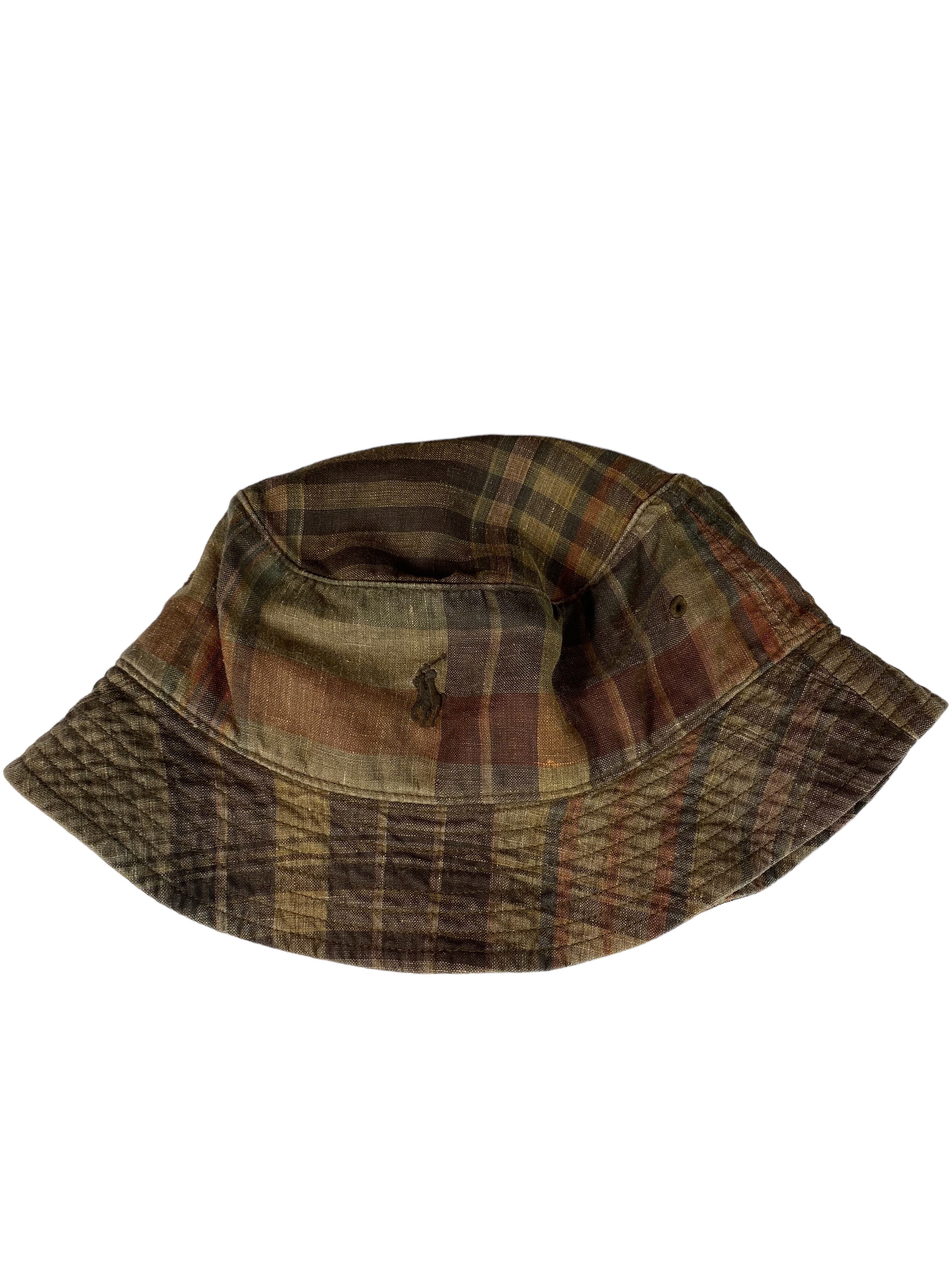 1990’s Polo Ralph Lauren Plaid Linen Bucket Hat Brown Based