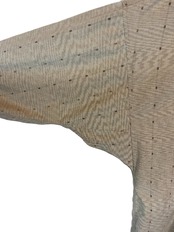 首周りはバンドカラー仕様でスッキリと、身幅はたっぷりのボックスシルエット、三宅一生氏と言えばなややドルマン気味のスリーブ、しっかり肩が落ちる作りながらもアームの幅や、短めに採られた袖丈で全体のバランスが絶妙に保たれた、後世に残したい“芸術品”的一枚です。