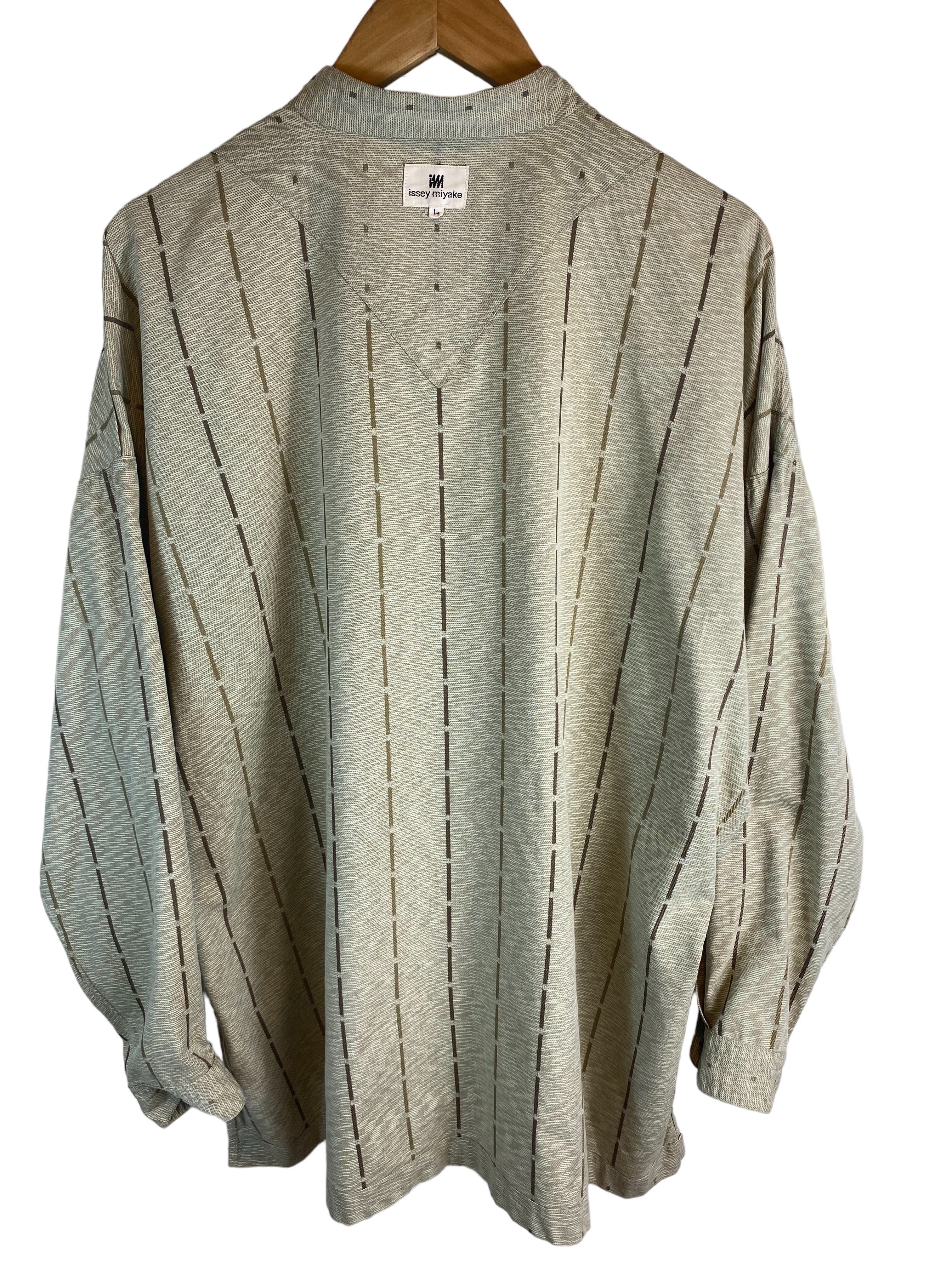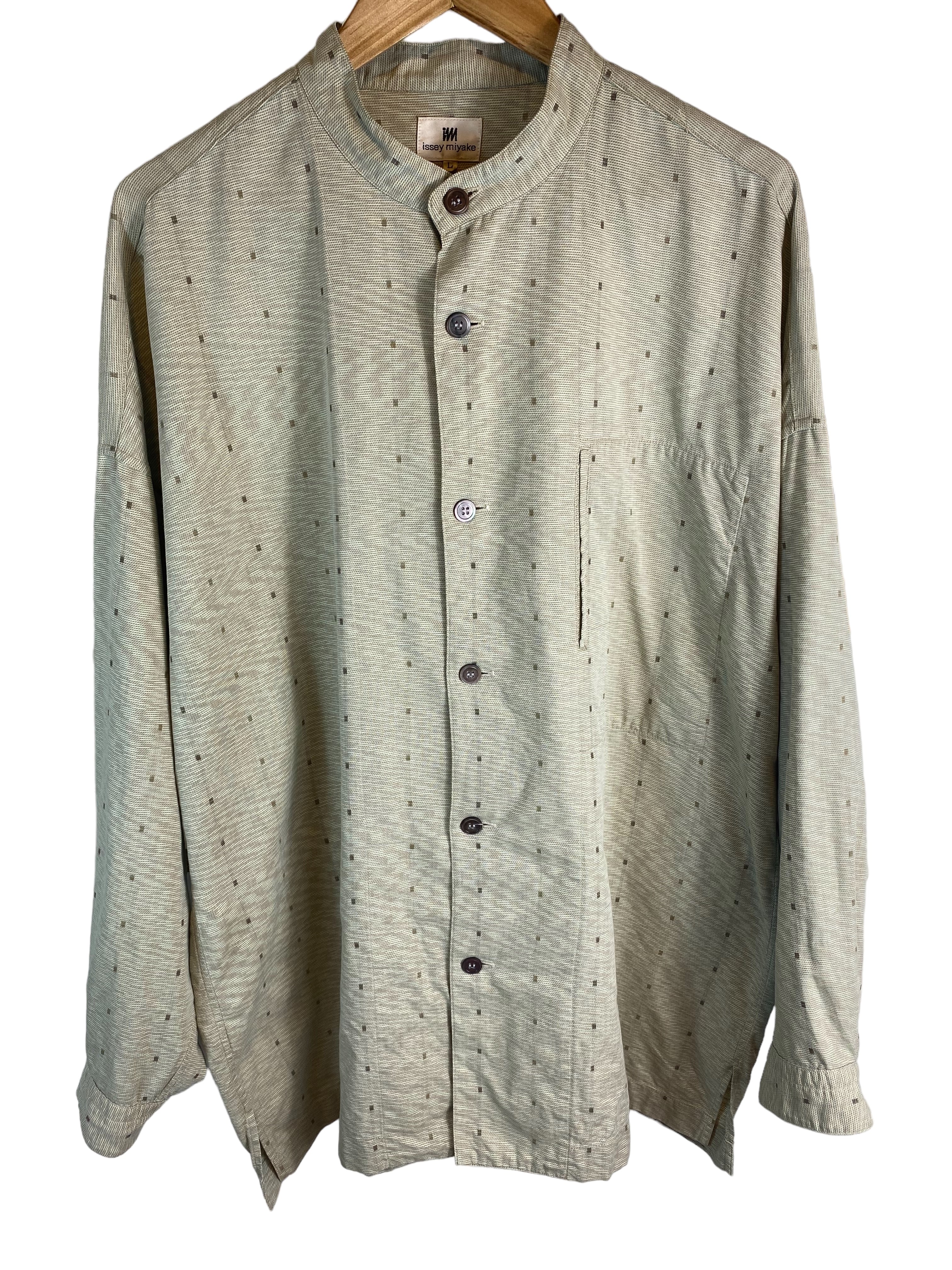 1980年代の"im issey miyake"のインサイドアウト的に生地を使用し作られたバンドカラーシャツです。