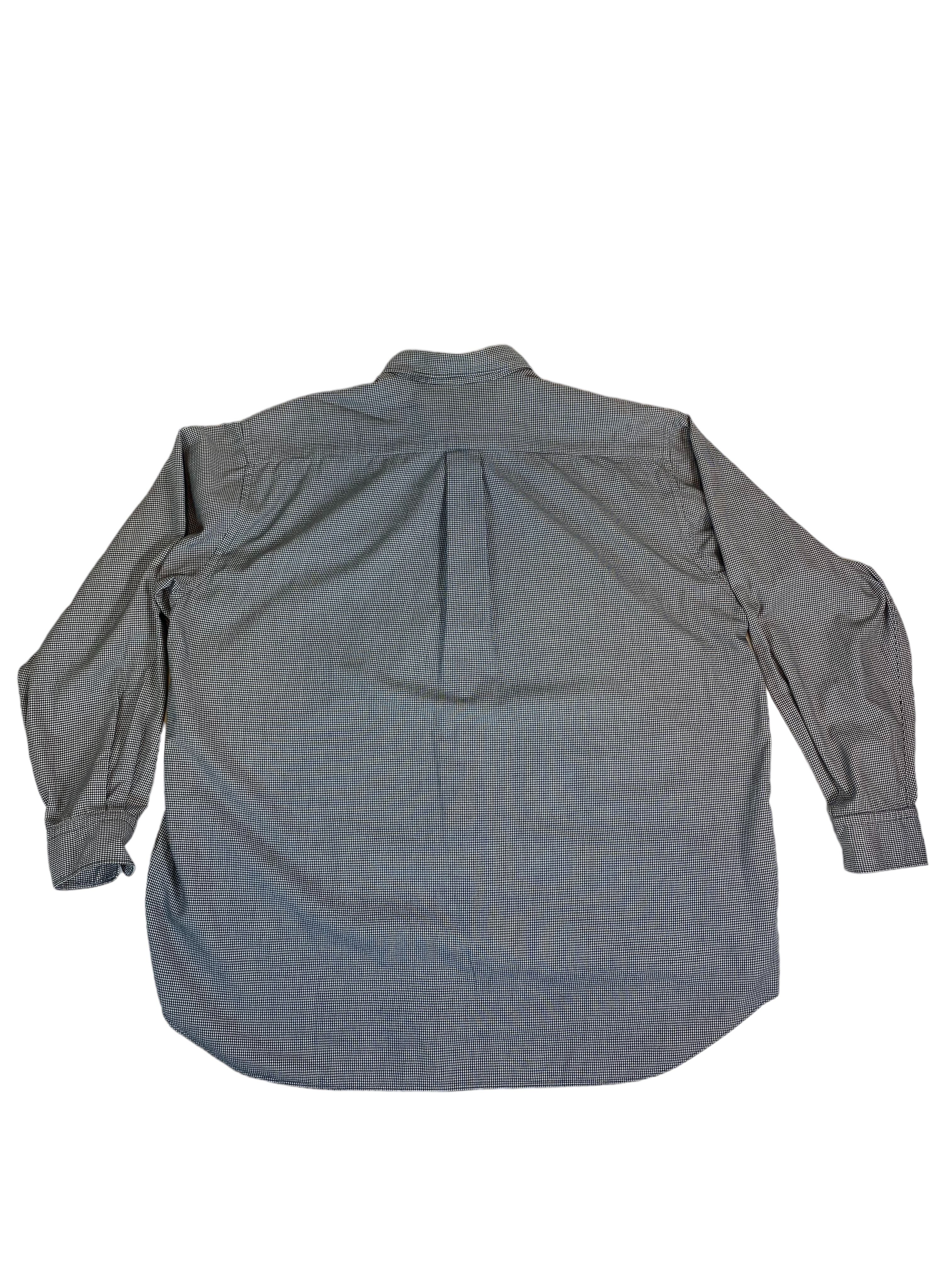 千鳥格子のチェックシャツのフロントに大胆にラインのペイントが入ったシャツです。