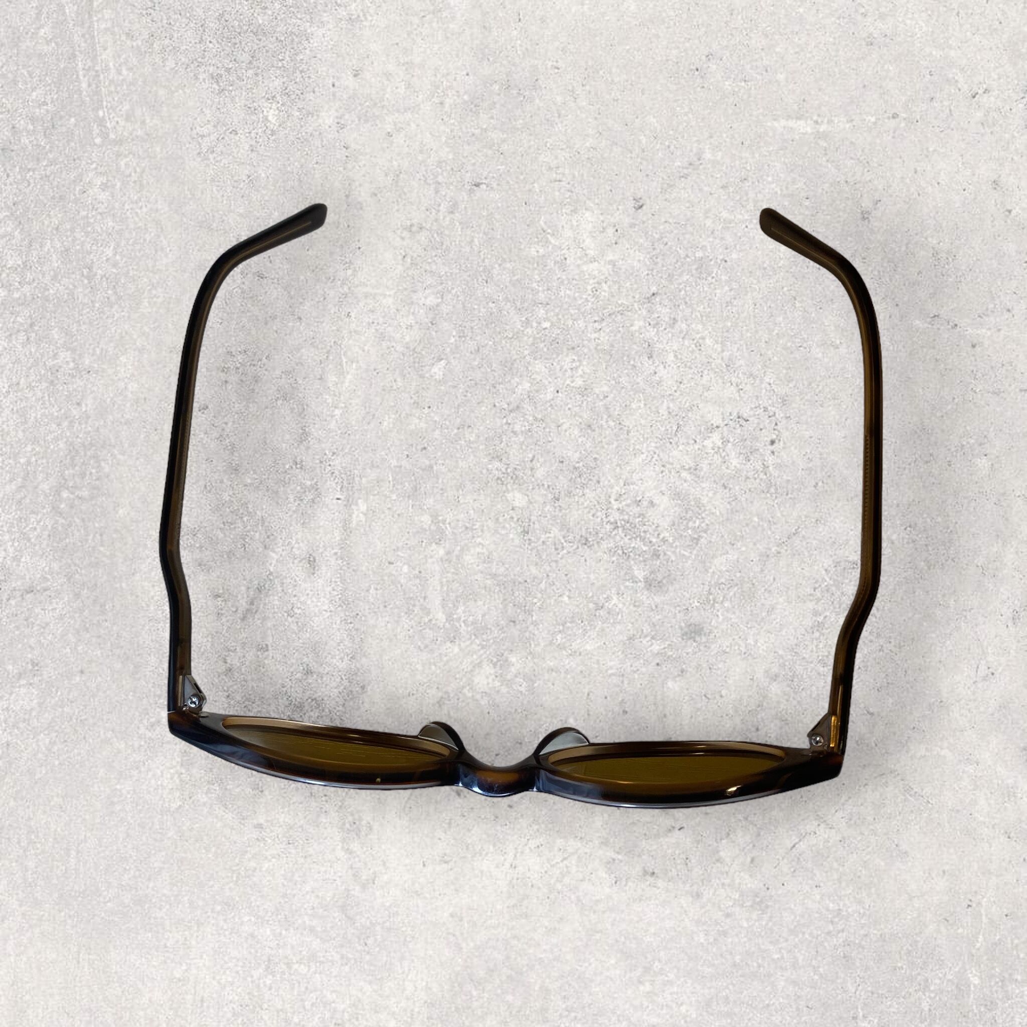 旬なキャットアイ型にオーバル型の丸みを少し足した様な形で、非常にシャープな印象のサングラスです。