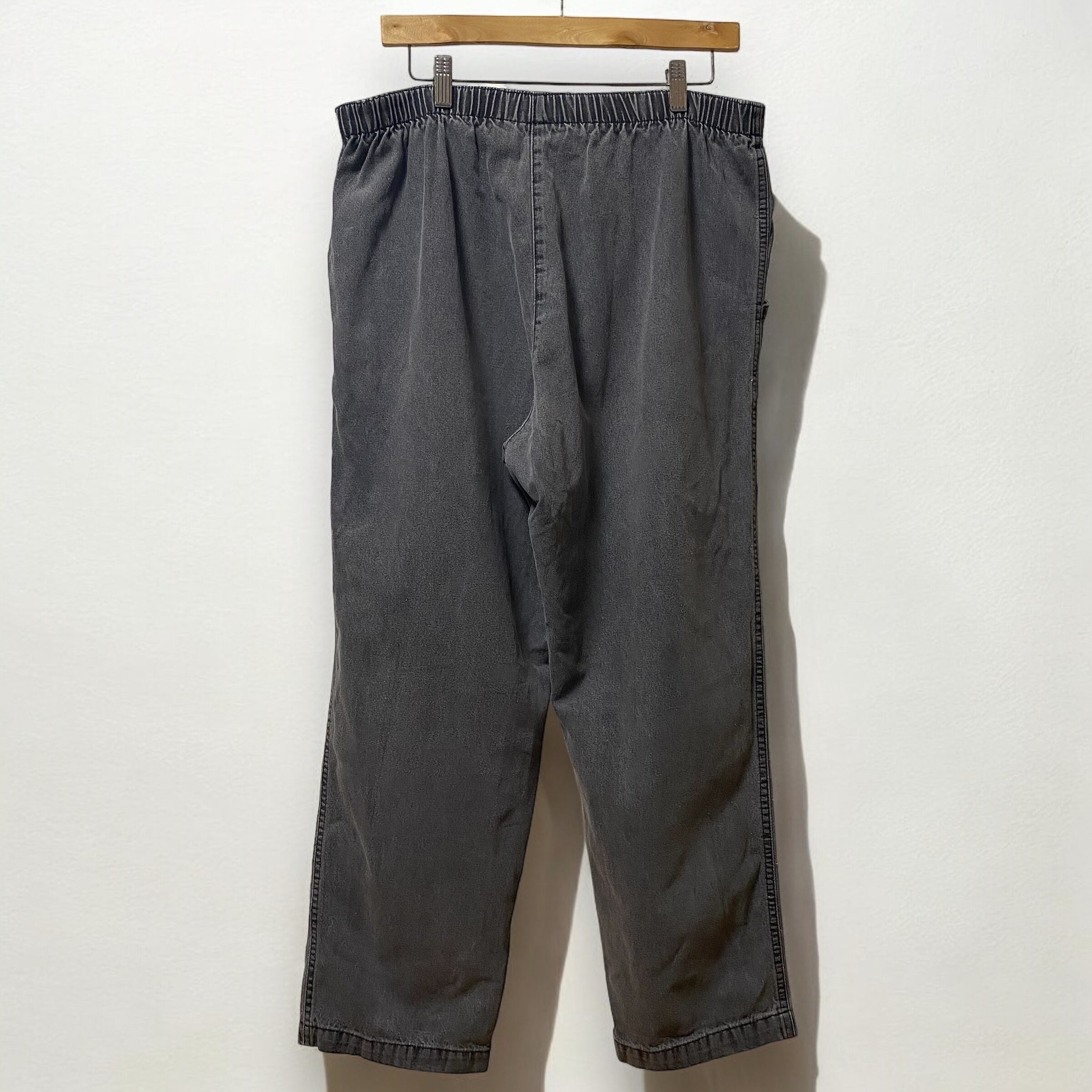 ブラックシャンブレーぽい生地感で、サラッと履けてイージーパンツの為、ウエストゴム使用で非常に楽ちんです◎