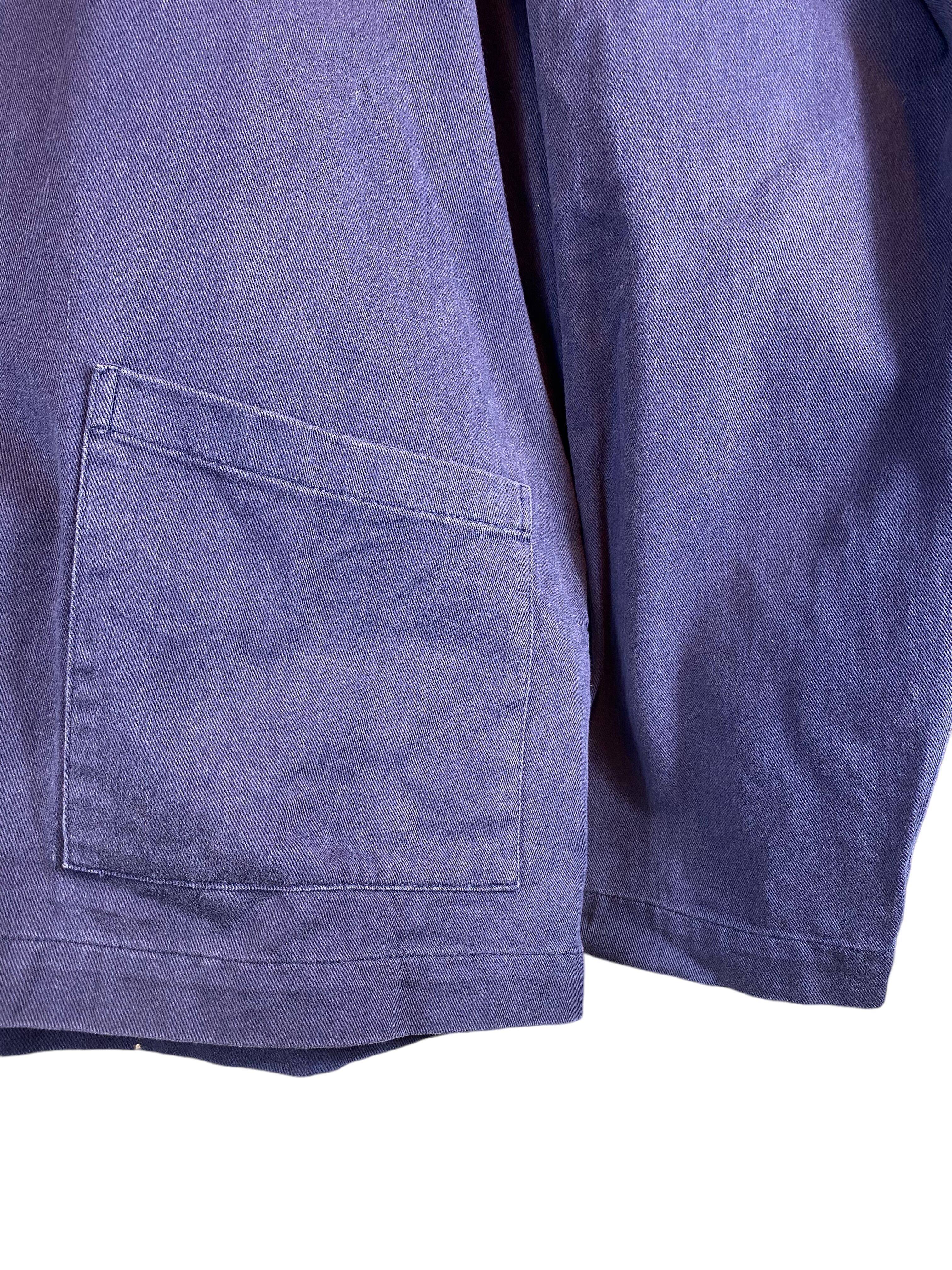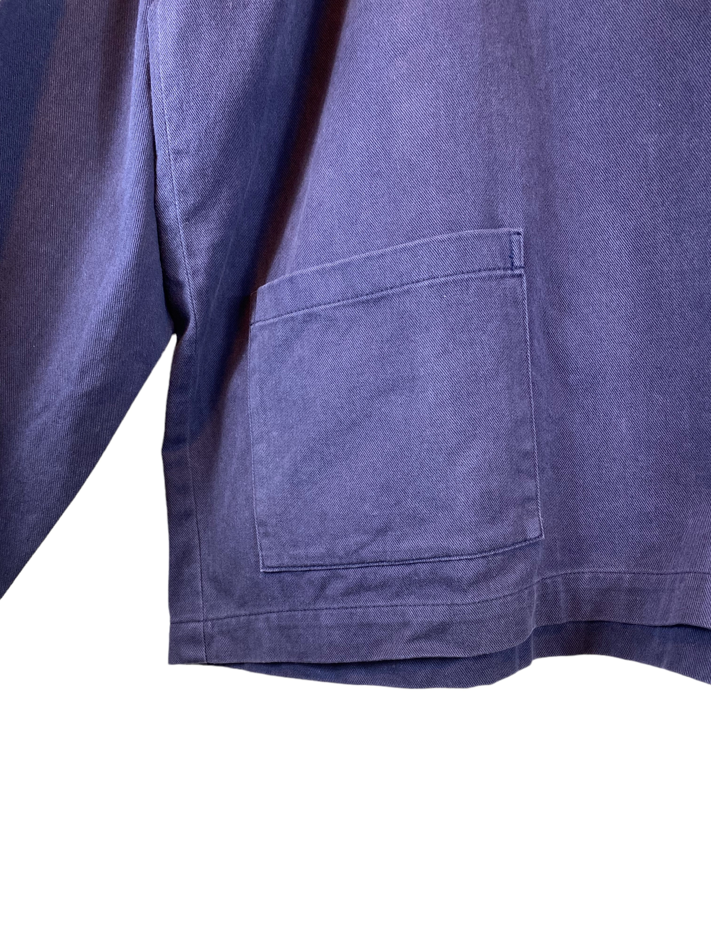 やや紫がかった濃いめのネイビーのコットンツイル生地のプルオーバーシャツです。