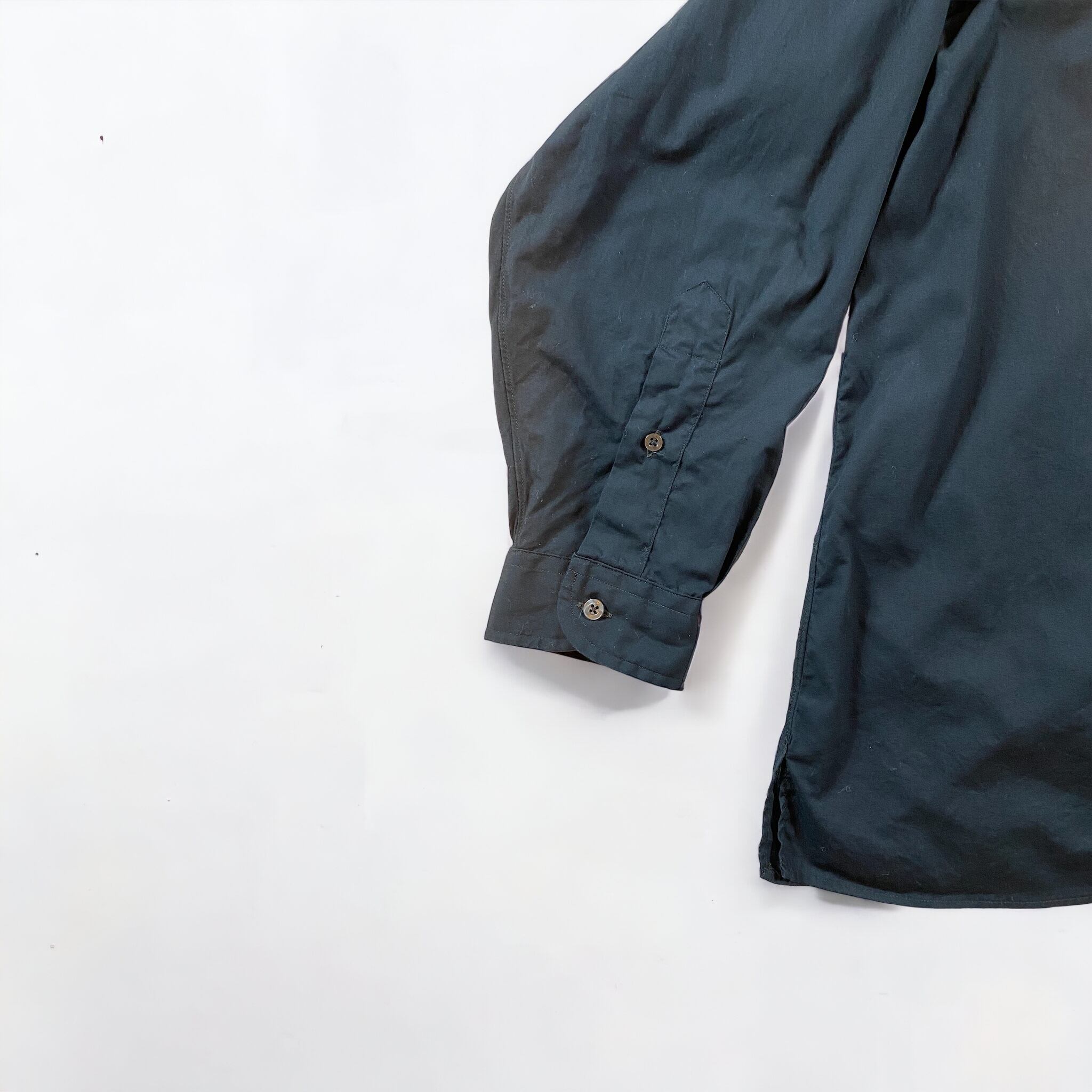 ボックスシルエットに小ぶりな襟とカフス、ポケ無、フレンチスタイルのフロント、そして深いブラックカラーと言う事無しな一枚です。