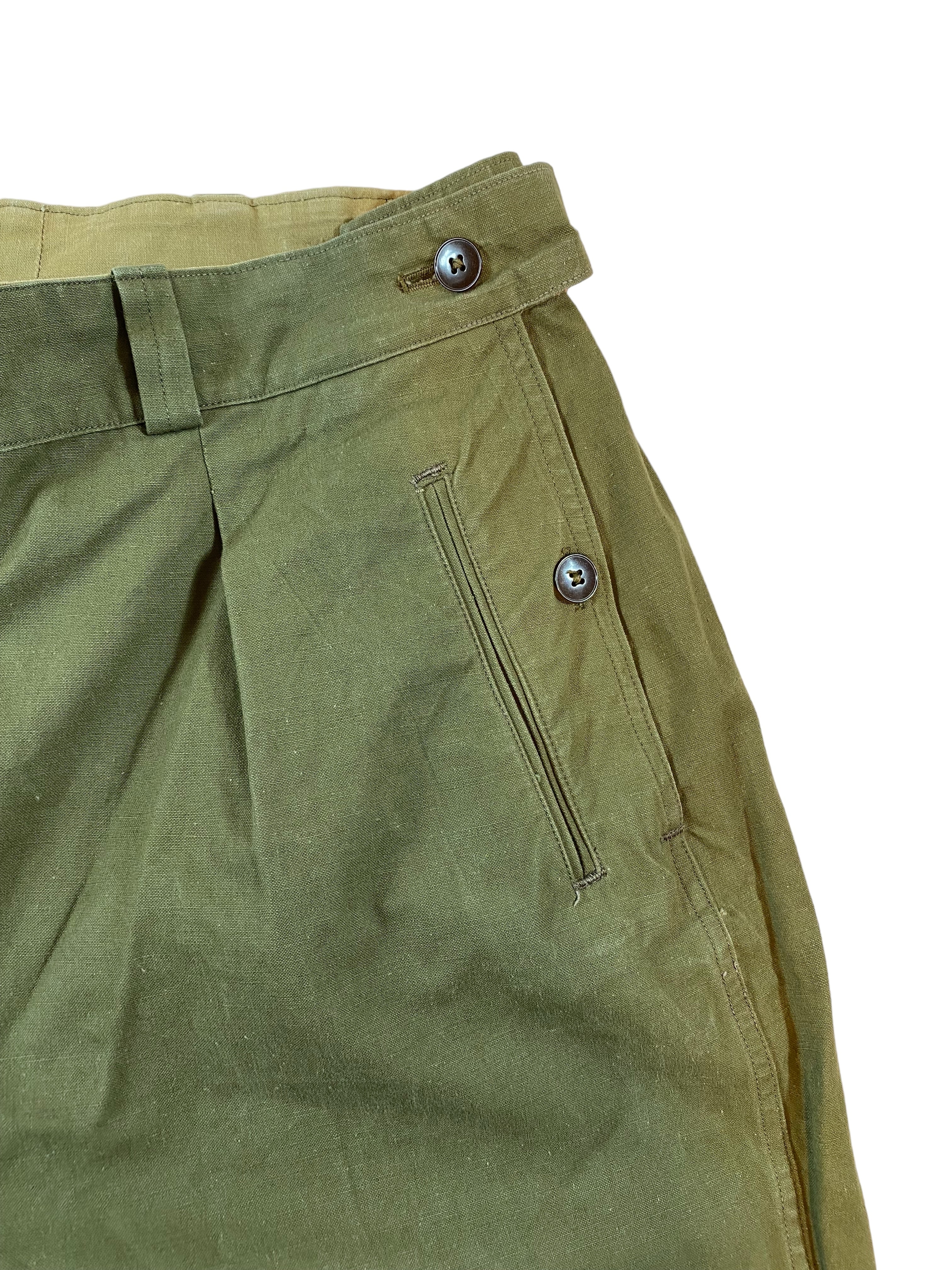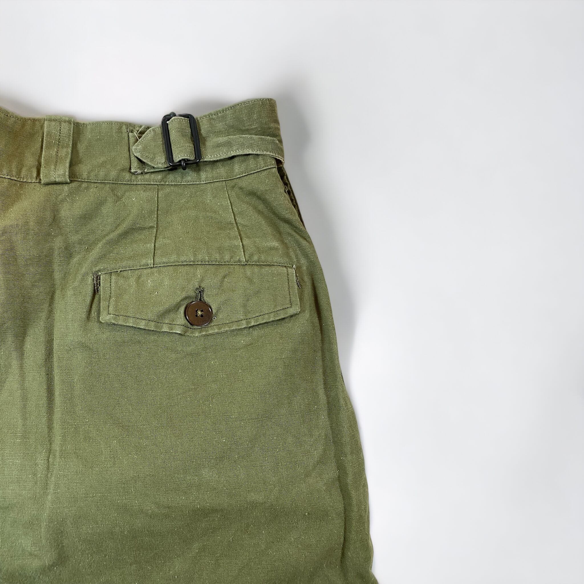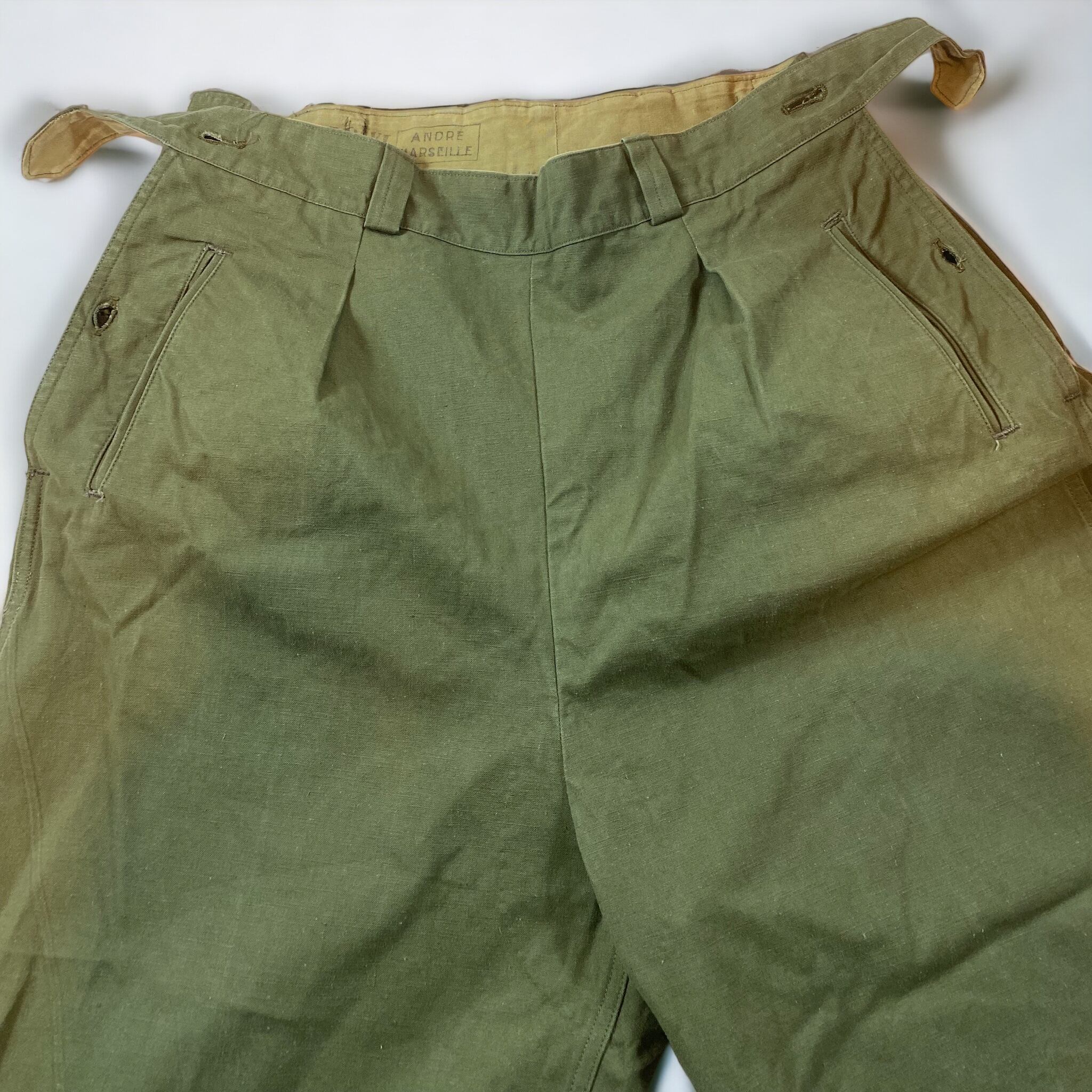 イギリス軍のグルカパンツに近い作りですが、コットンリネンでオリーブカラー、個人的にはフランス軍らしいディテール過多気味な感じが最高です◎