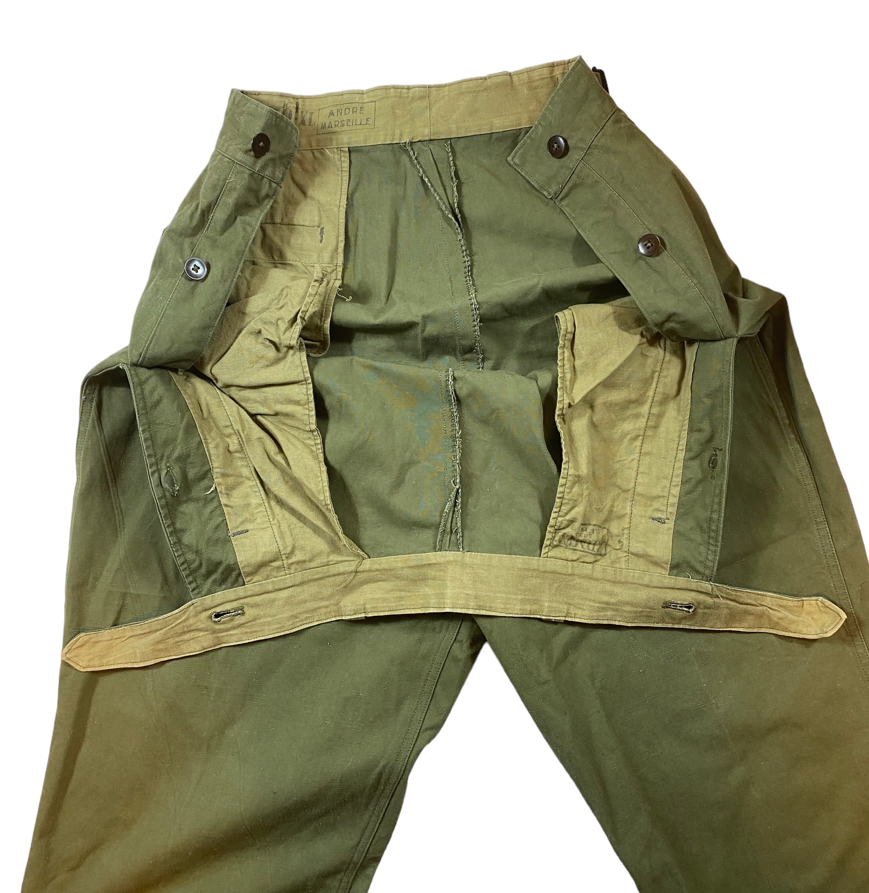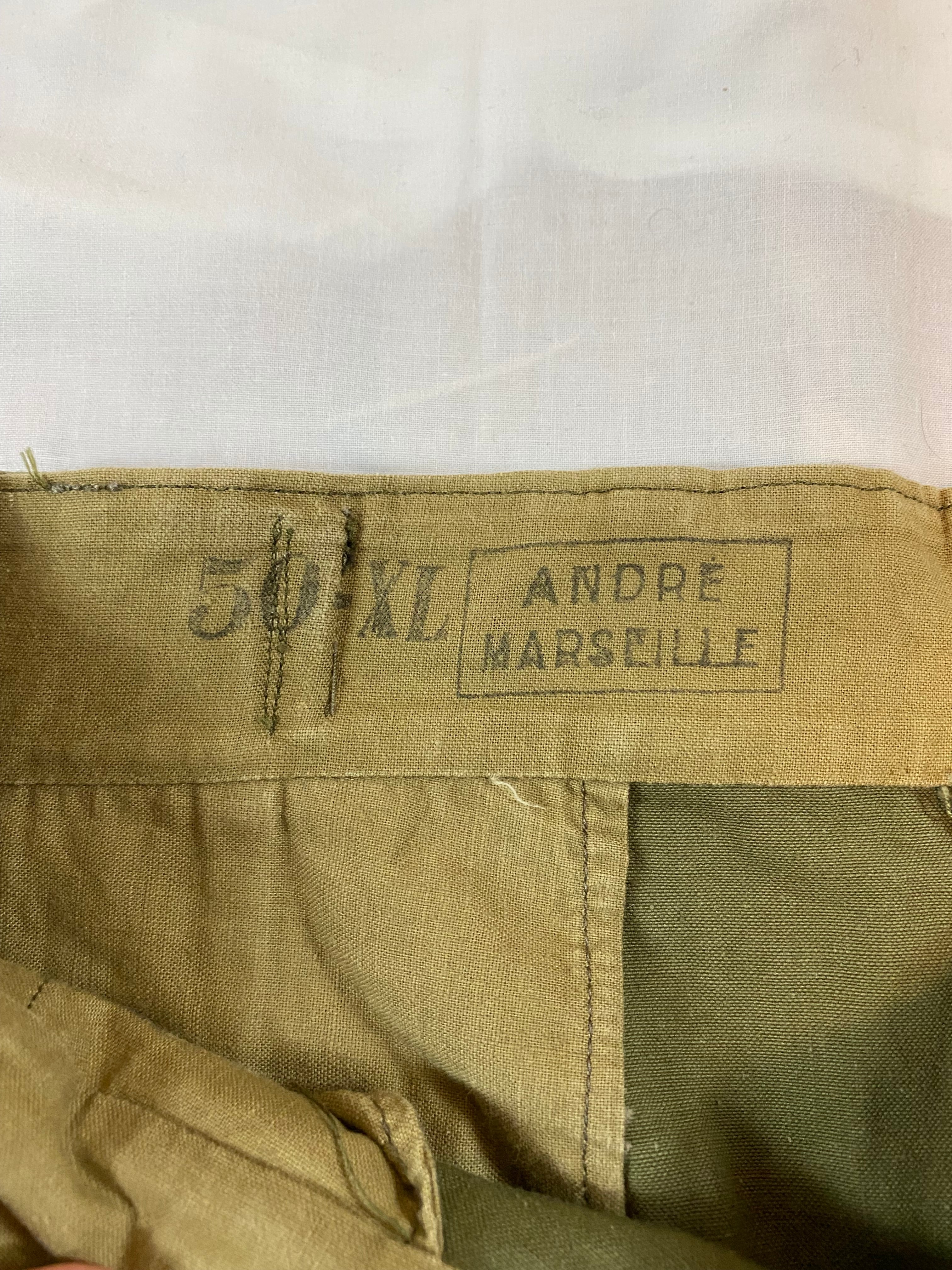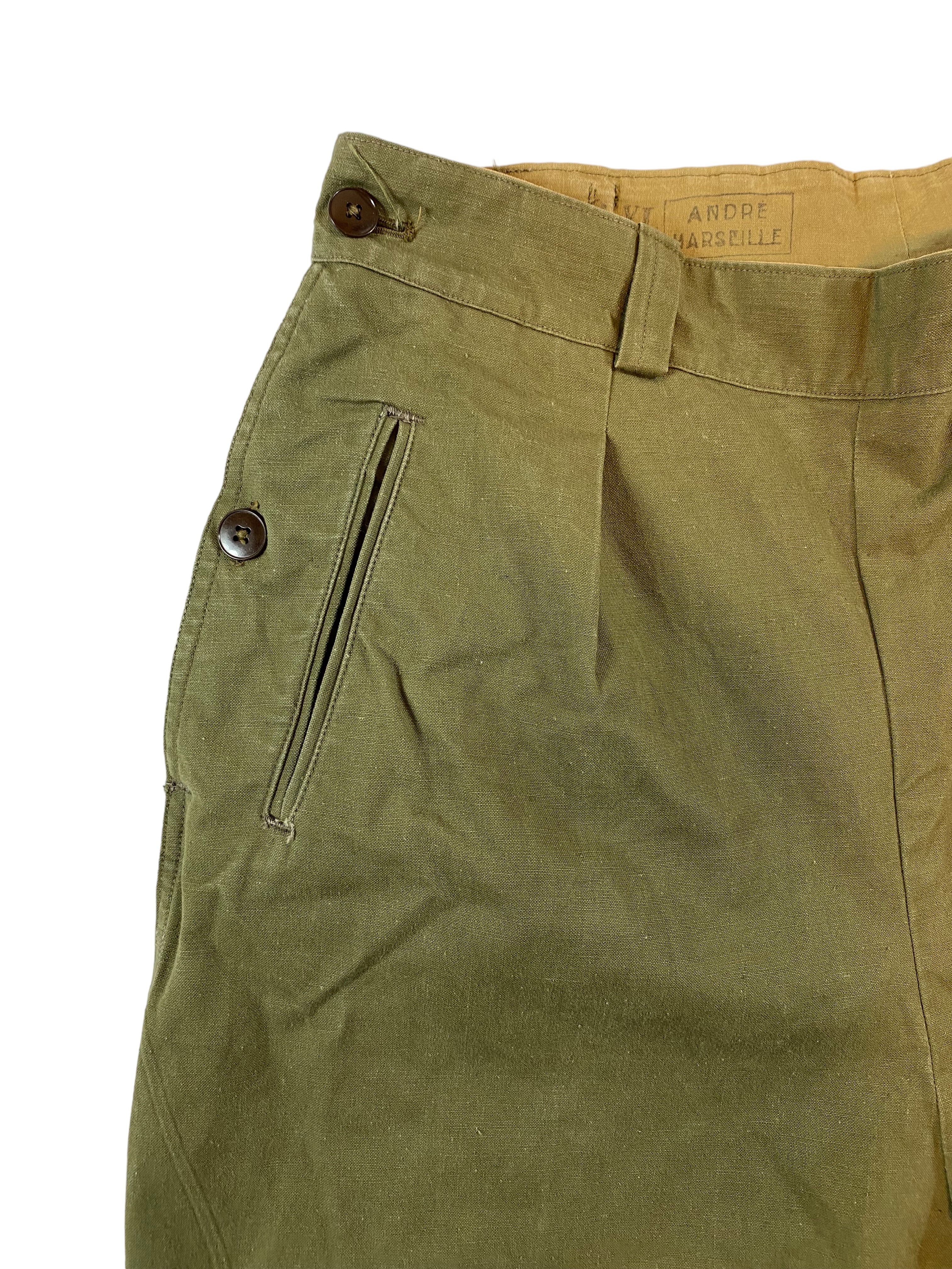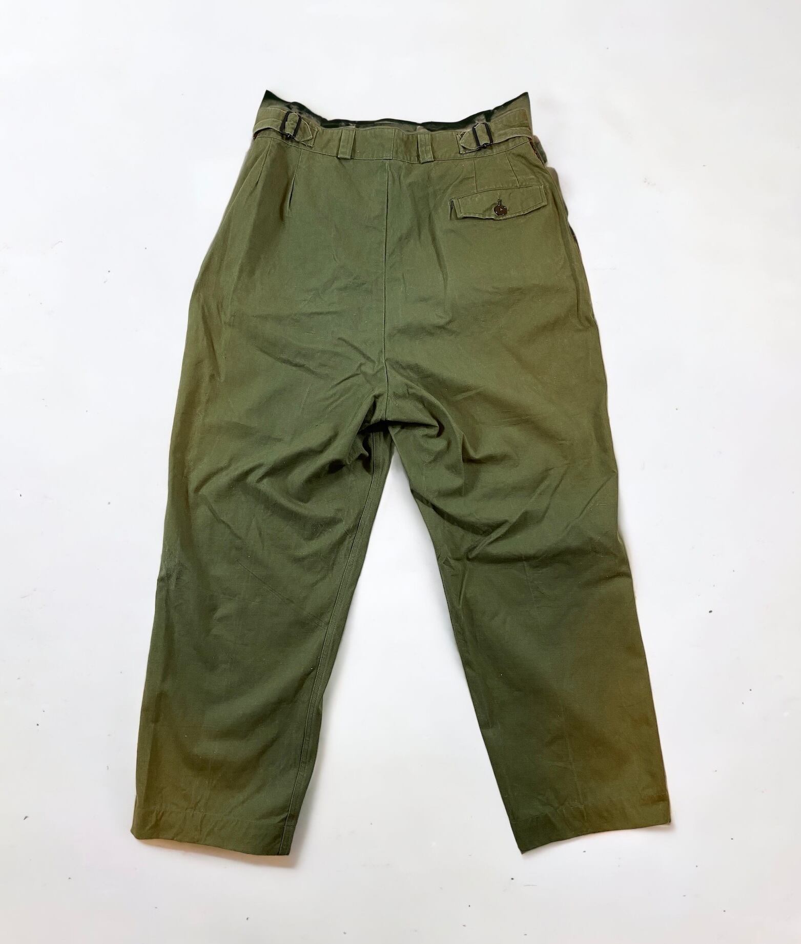 イギリス軍のグルカパンツに近い作りですが、コットンリネンでオリーブカラー、個人的にはフランス軍らしいディテール過多気味な感じが最高です◎