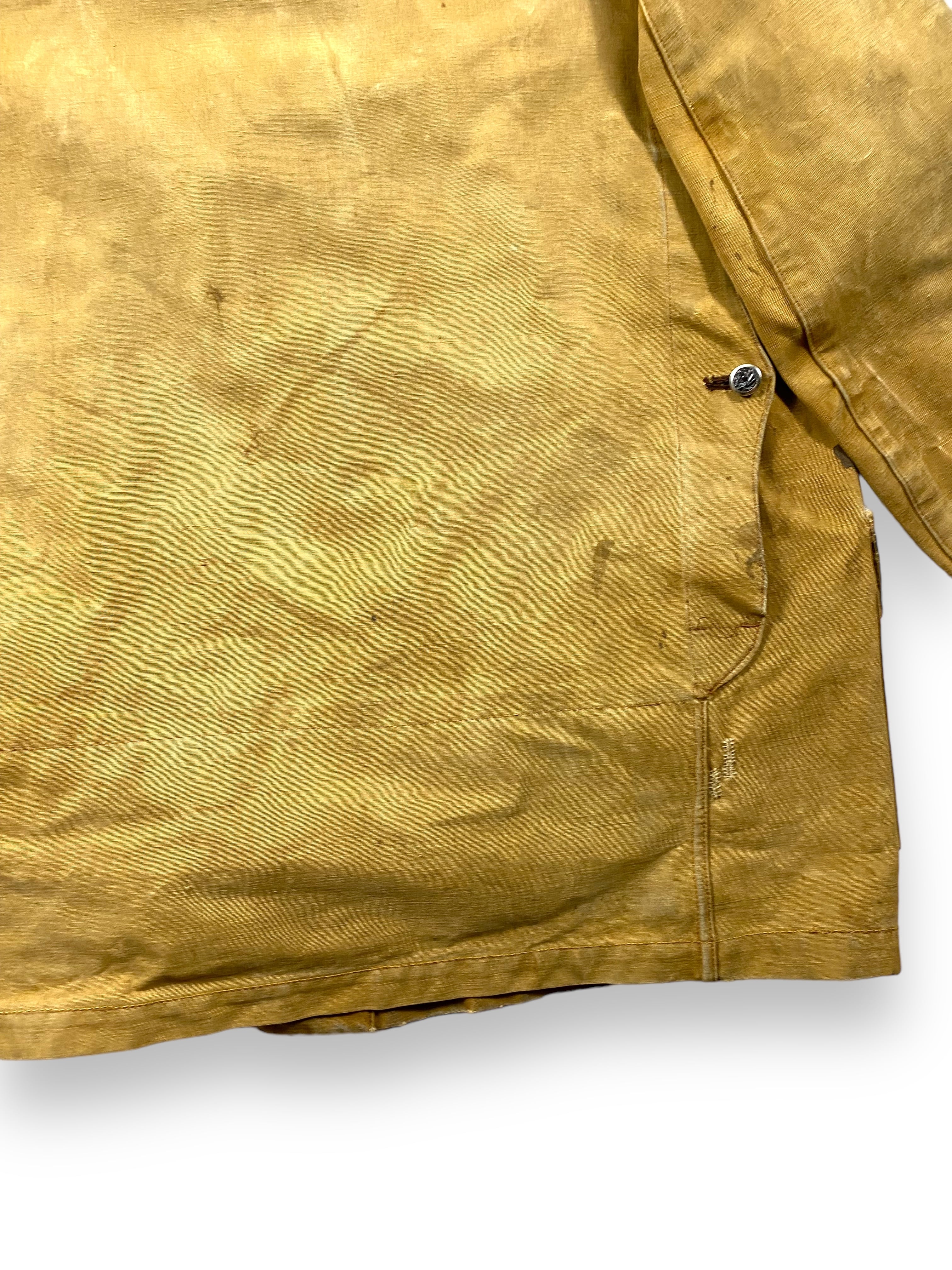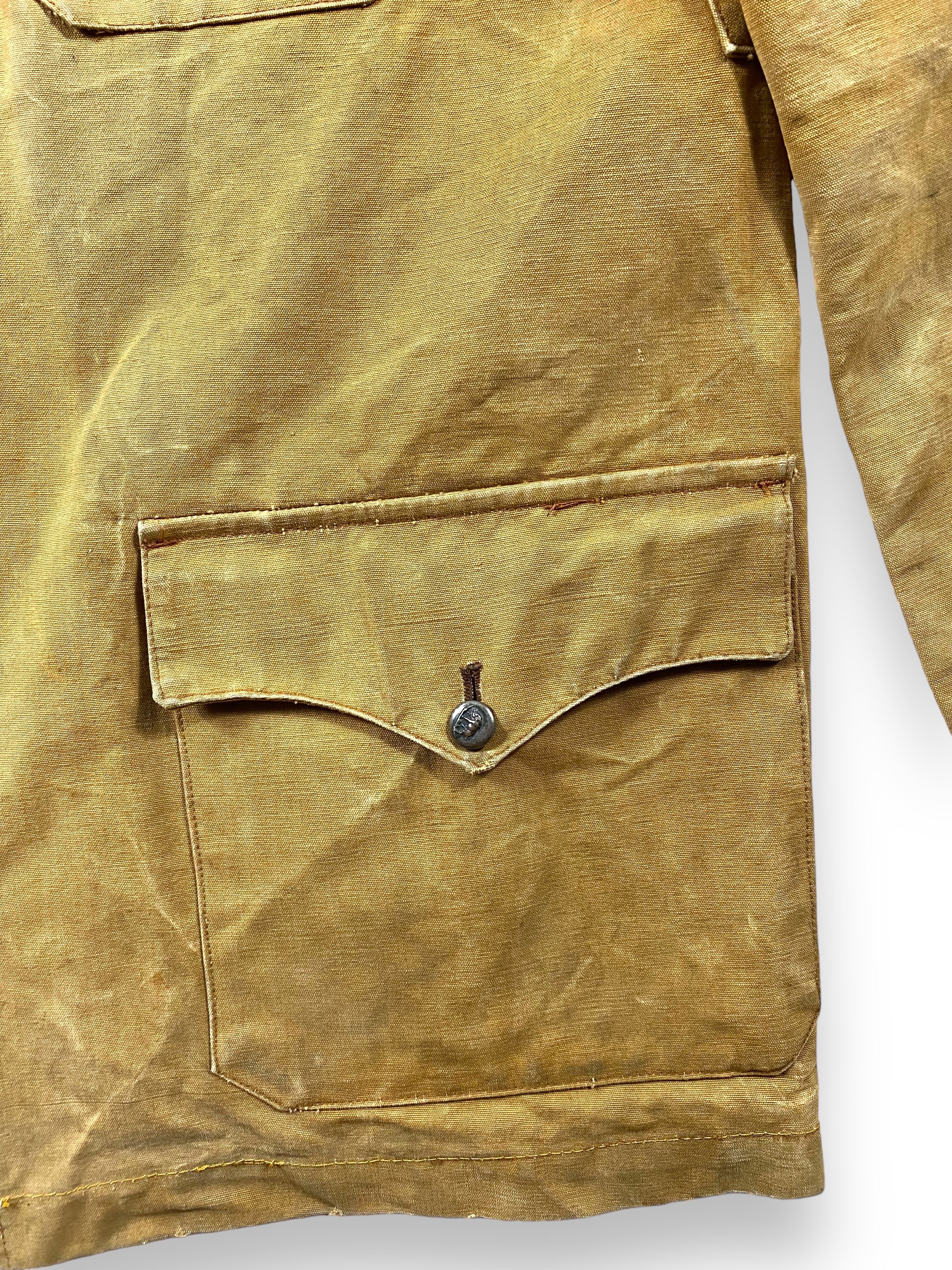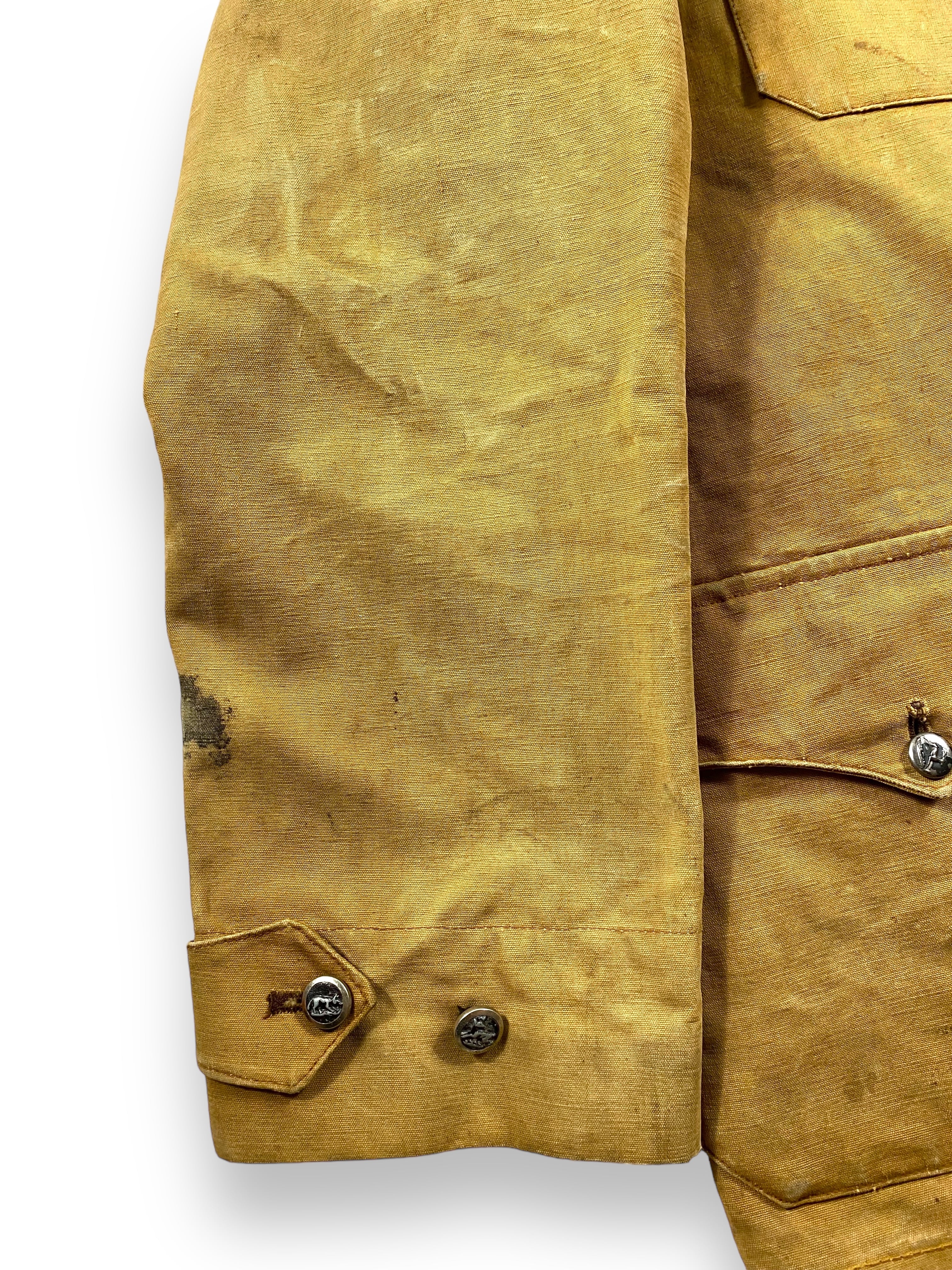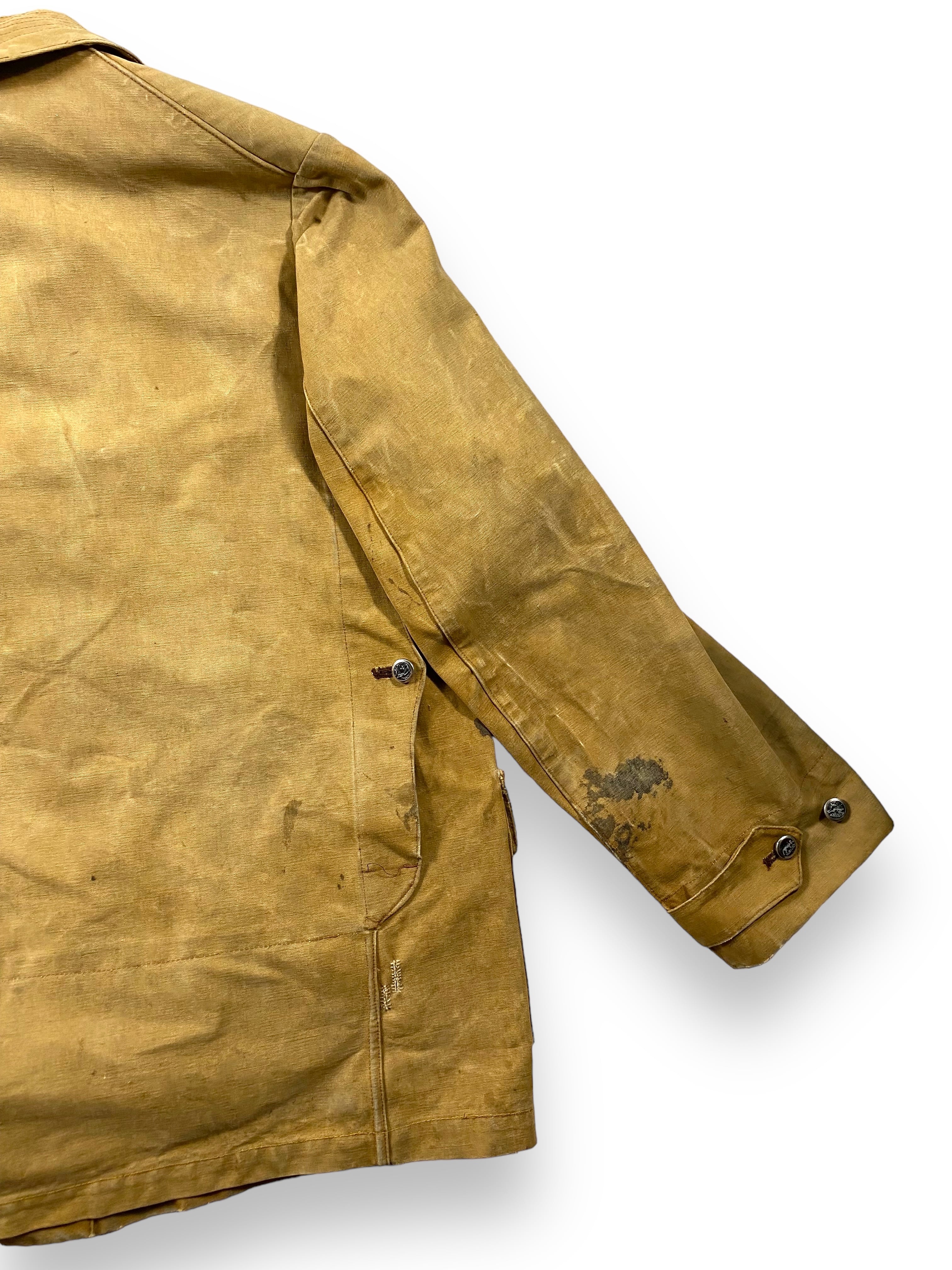 ハンティングジャケットではお馴染みの背面には獲物を入れる為のゲームポケット、独特のパターンの襟のステッチや、あまり見ないウィートカラー、歴史が織りなす美しい褪色とリアルな汚れ。
