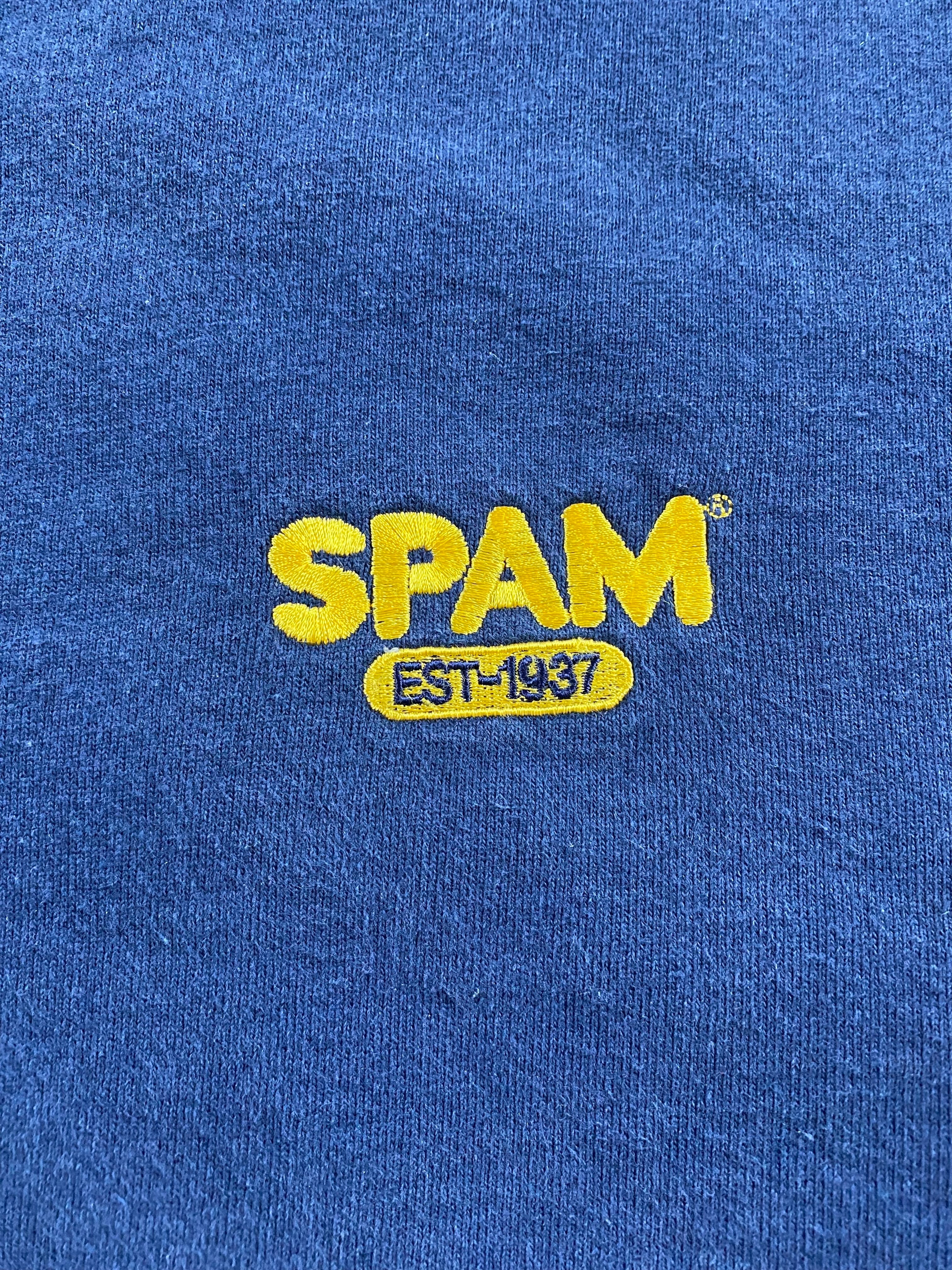 90年代後半〜2000年代前半頃のフルーツオブザルームボディを採用したアメリカの食肉加工商品"SPAM'の刺繍が入ったスウェットです。