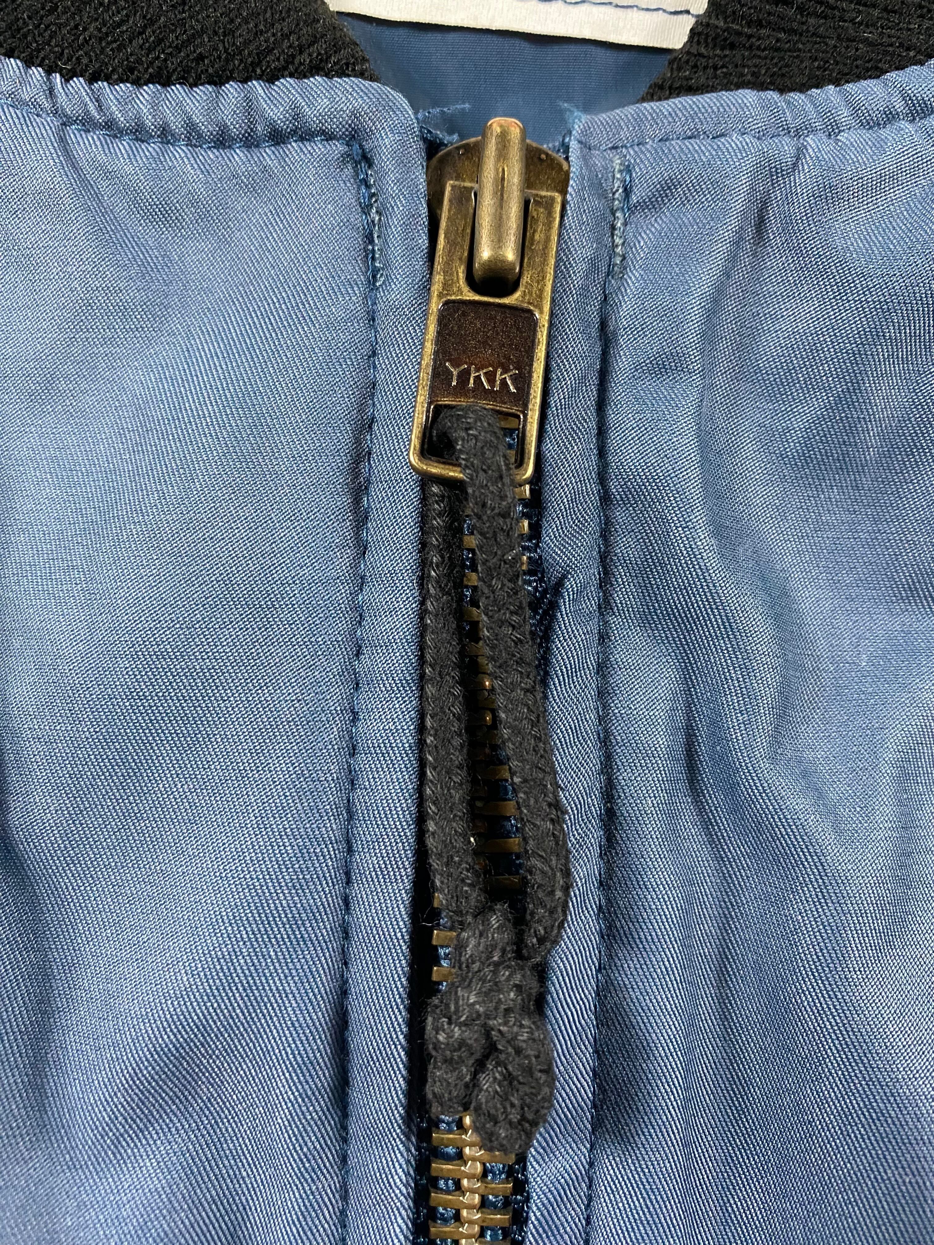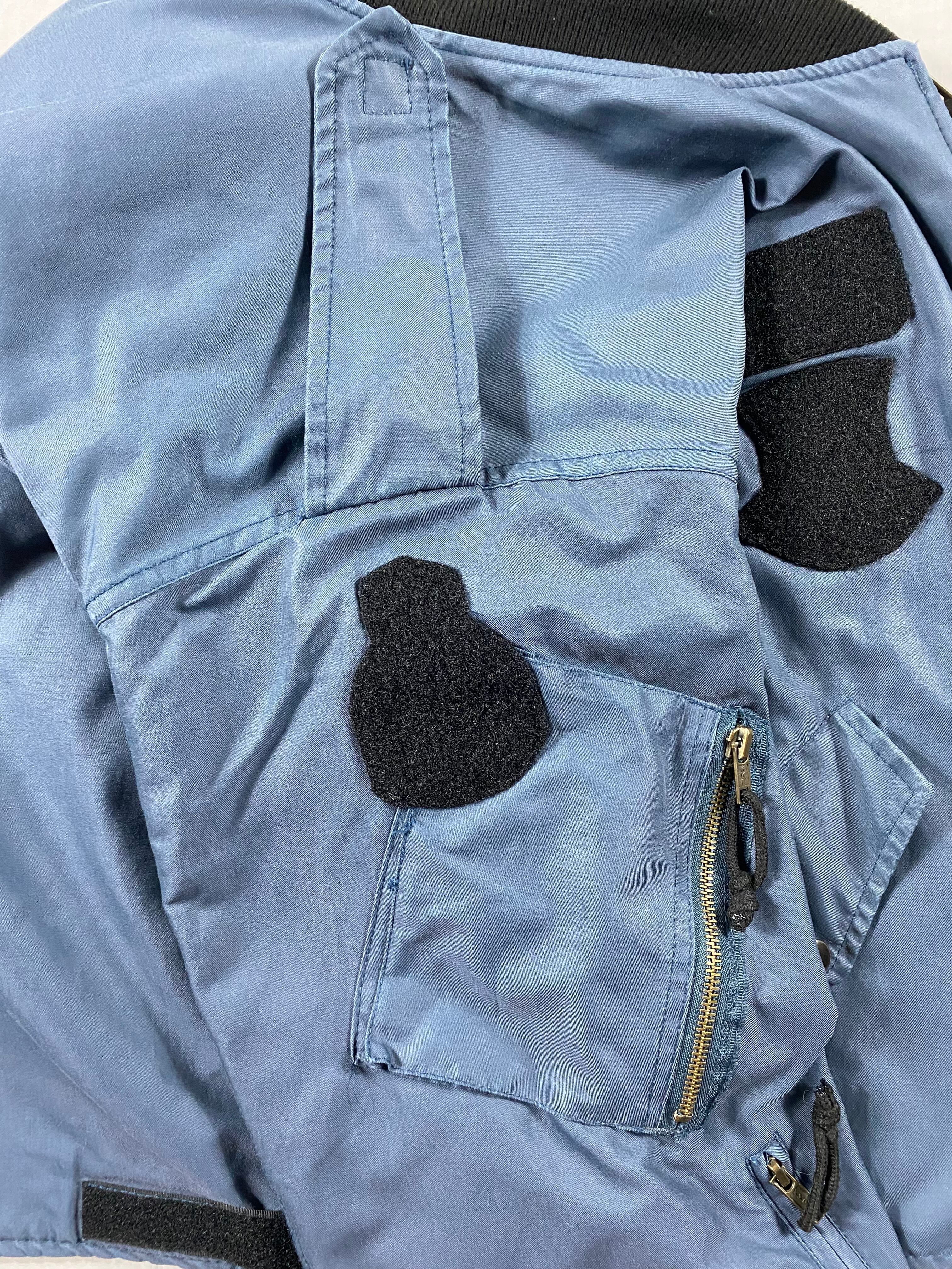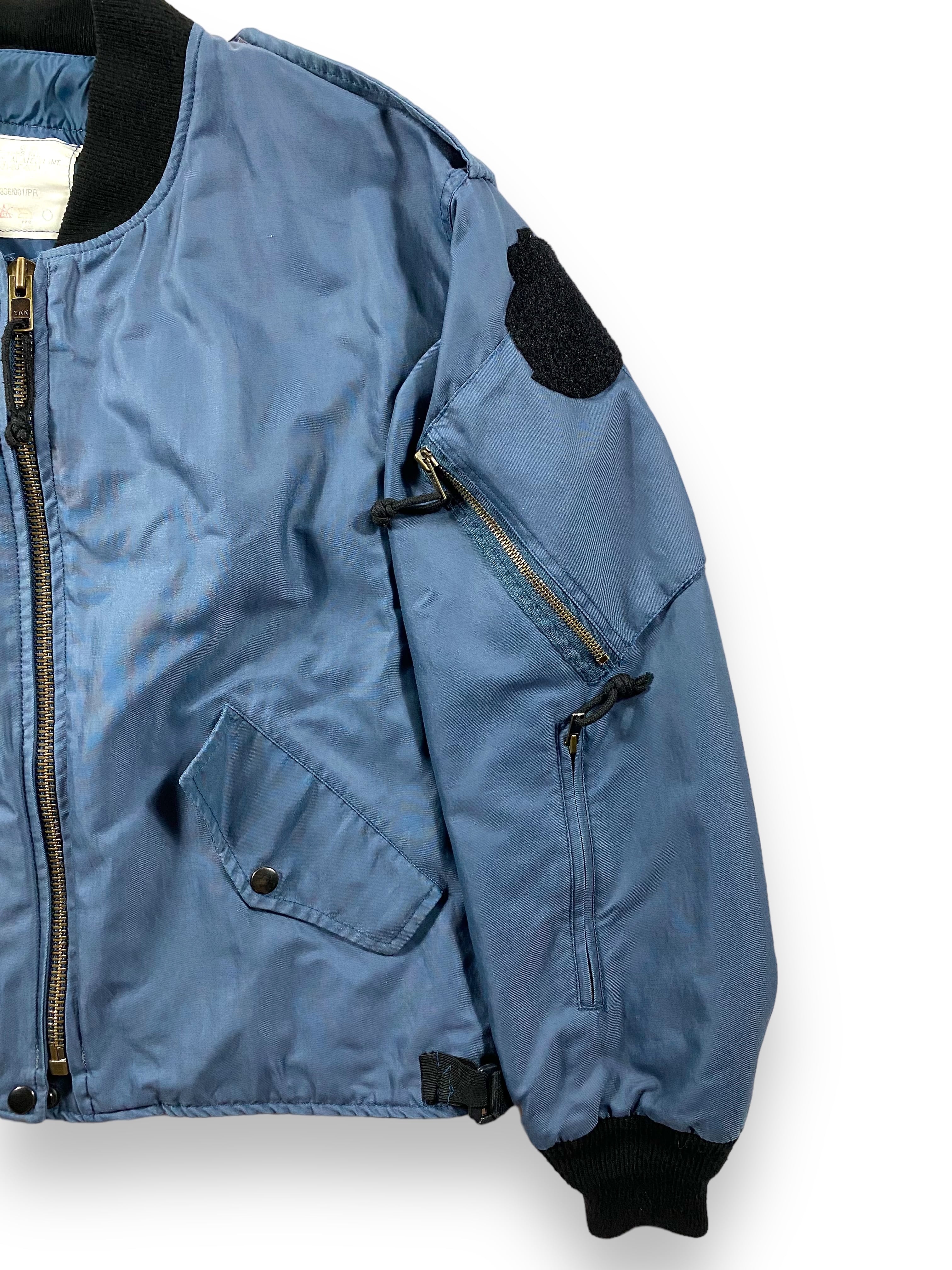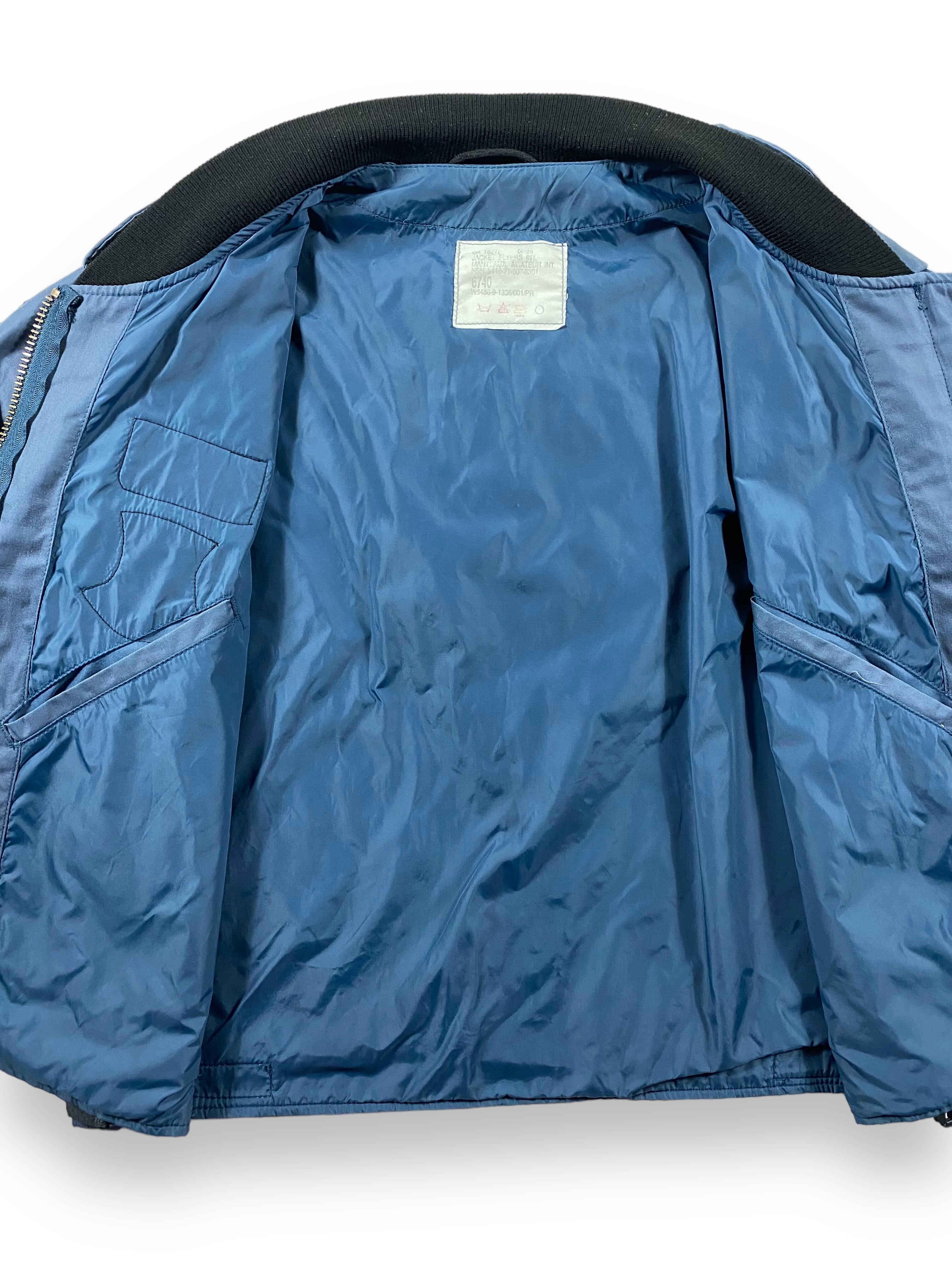 "カナディアンエアフォースブルー"と呼ばれるカナダ空軍特有のグレーブルーの色味が美しく最高の一枚で、他にはないフライトJKTだと思います。