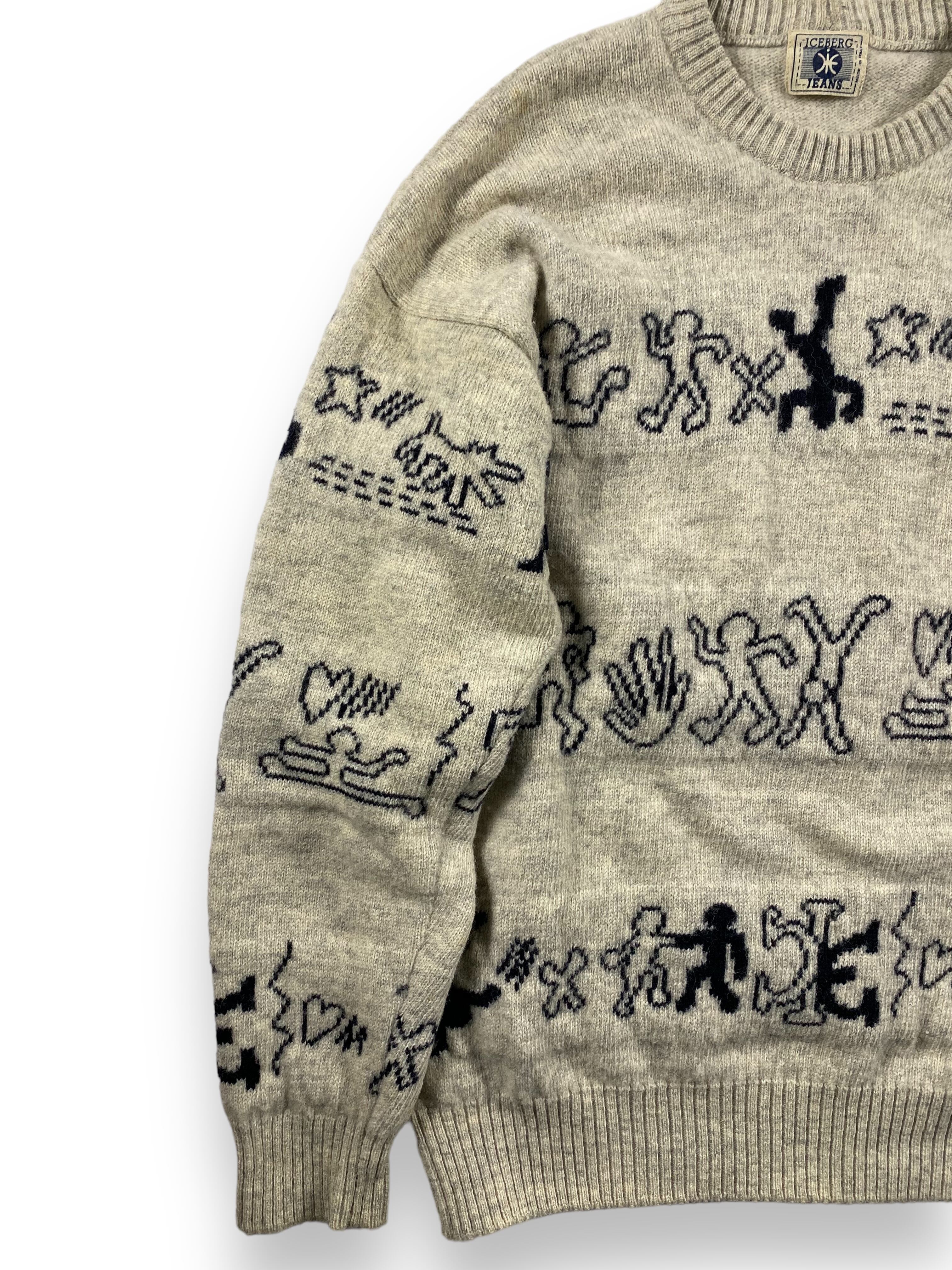 1993's "ICE BERG Jeans" Kieth Haring Graffiti Wool Knit