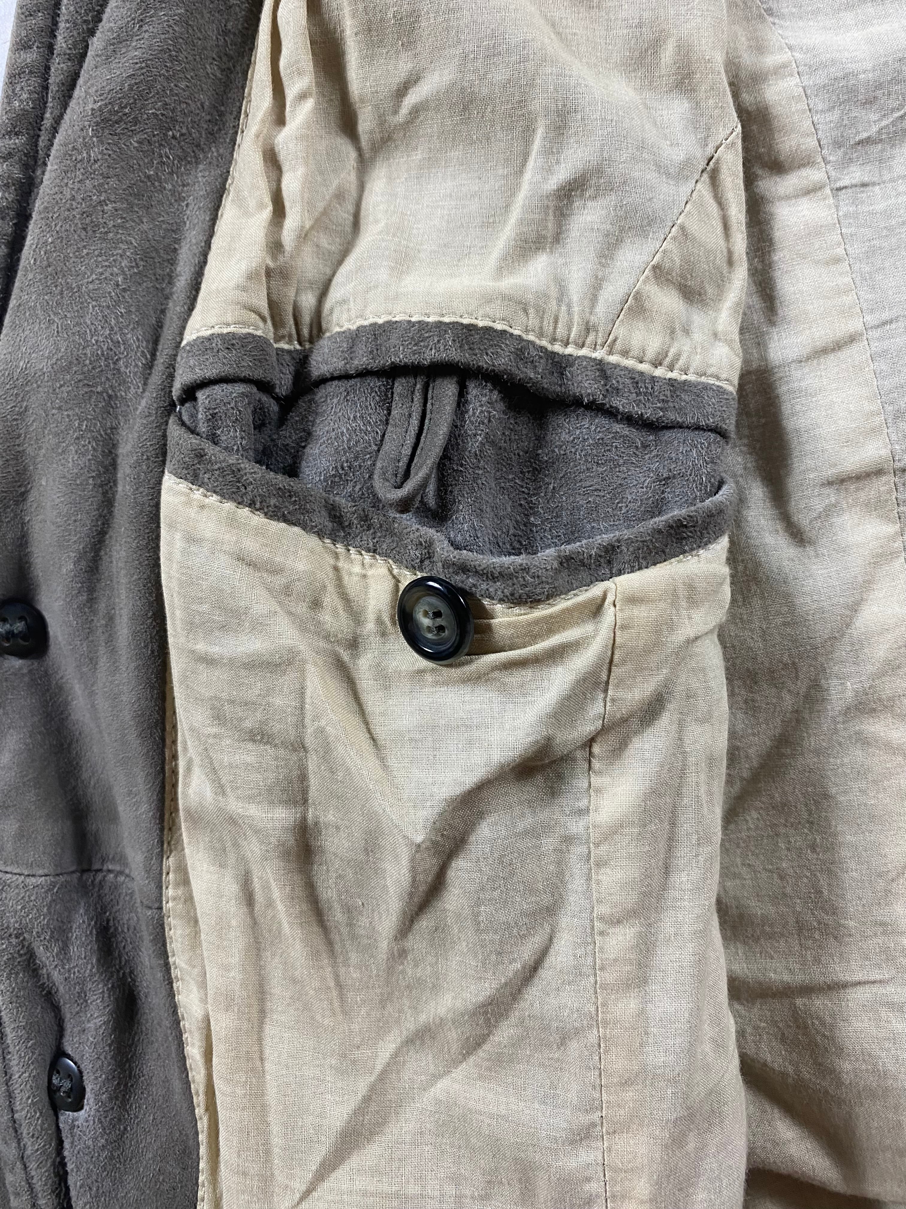 非常に柔らかい上質なカウレザースウェードの生地に背面には羊毛ファーが貼り付けられた一枚。
