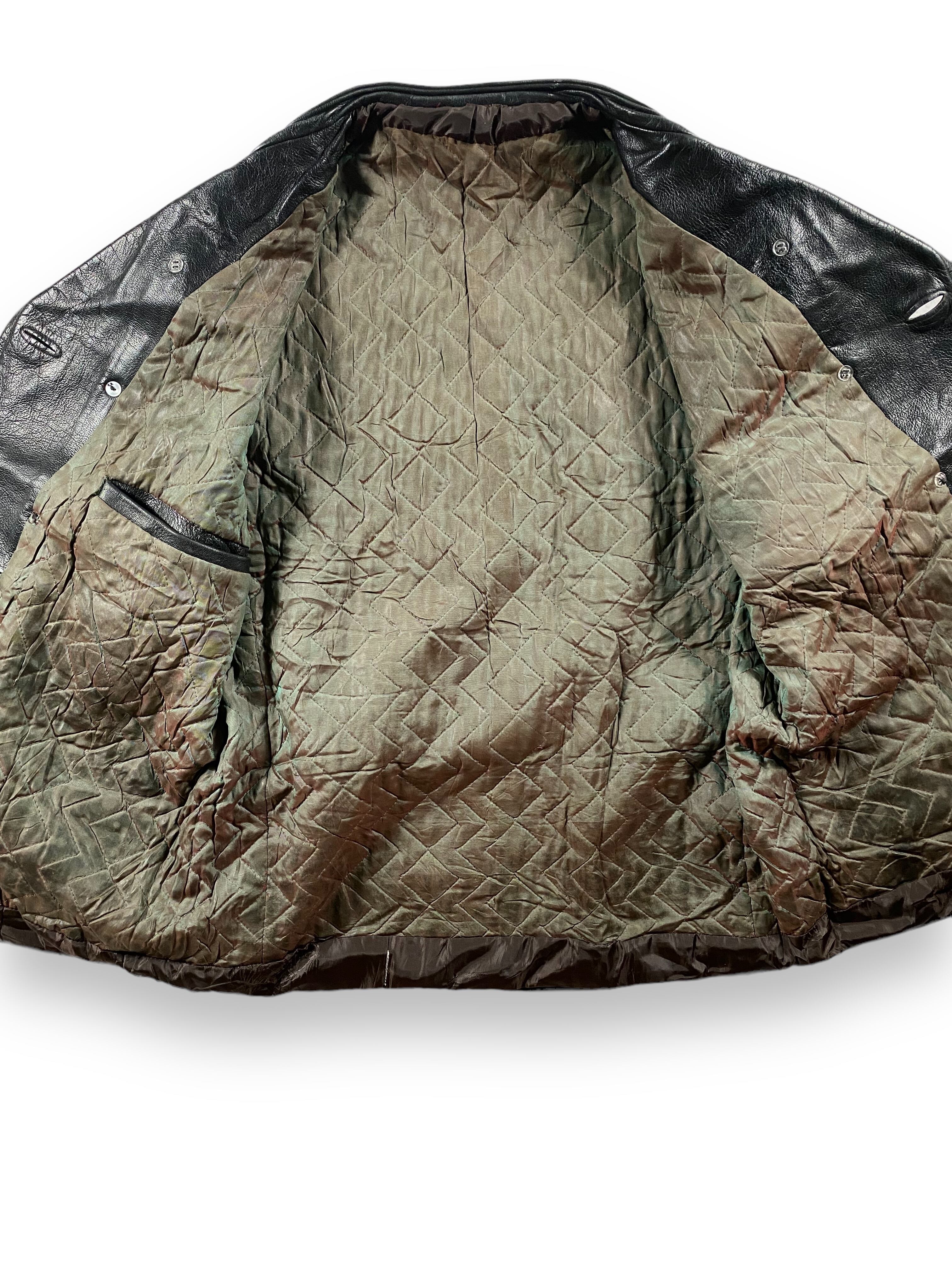 20世紀最大の建築家の1人と言われる"ル・コルュビジェ"が愛用していた事でも有名なダブルブレストのレザーJKTですが、本家はフランスの国営機関で使用されていたユニフォームなのに対し、こちらはスウェーデン軍の物で、スタンドカラーにもなる所謂"コルビジェJKT"の中でも更に珍しく、他人と被りにくい一枚かと思います。