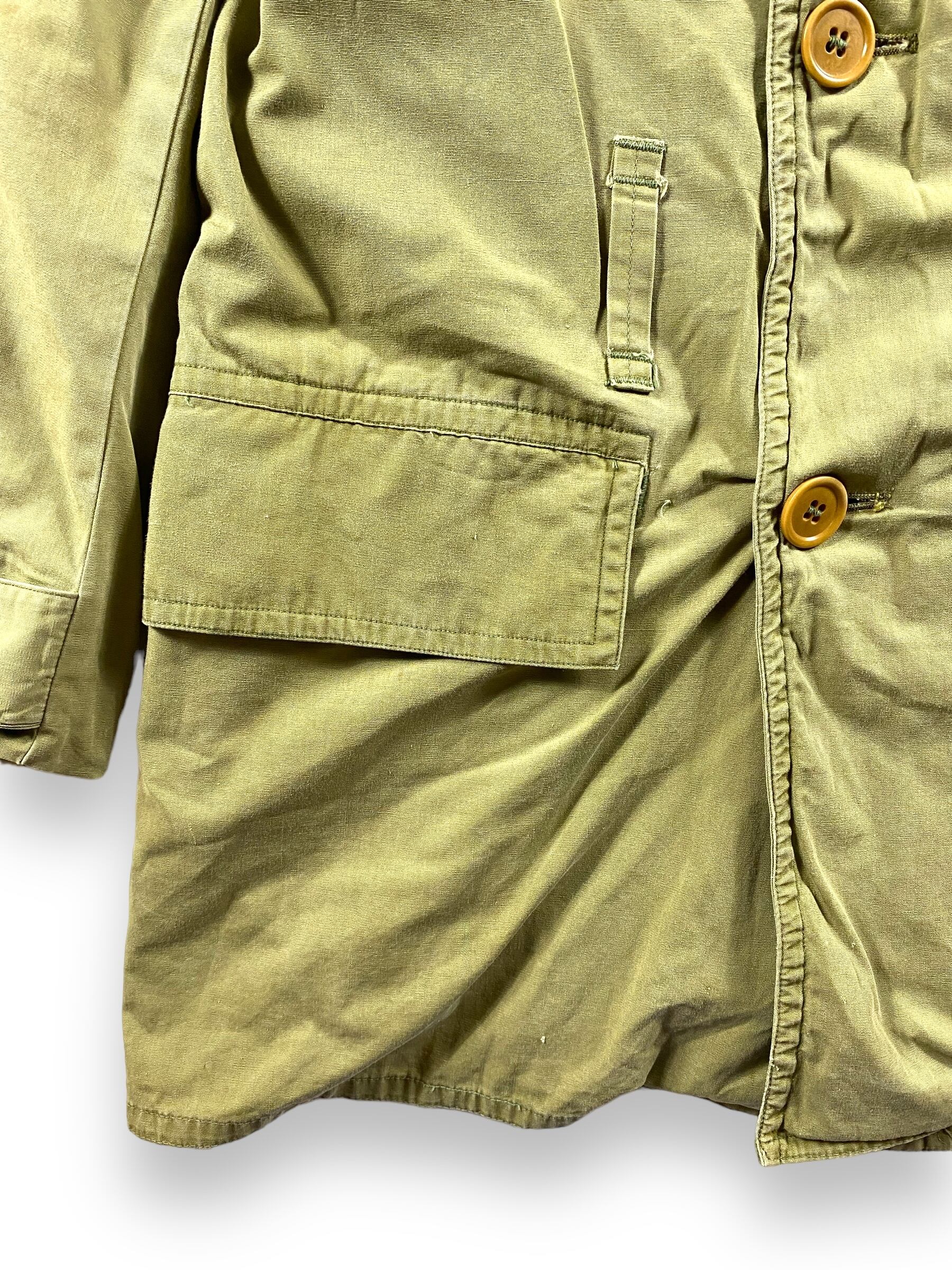 タフなコットンポプリンのシェルにウール張りのボディ。そしてこの年代特有の明るめのオリーブドラブが雰囲気抜群です◎