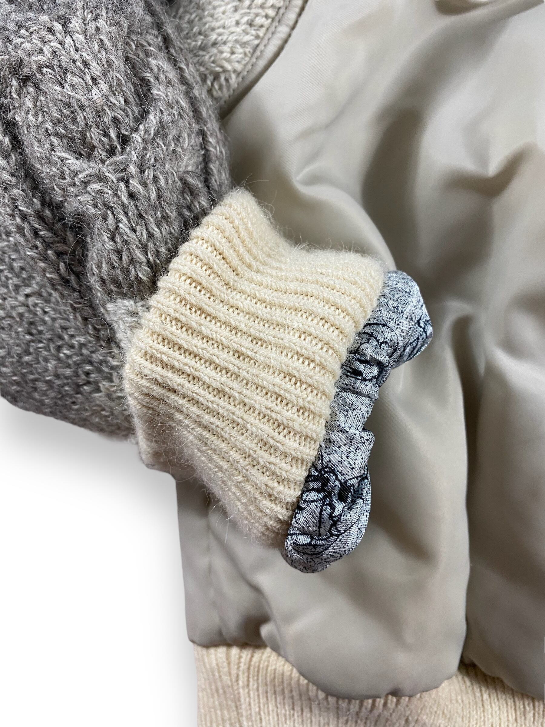 袖口とリブ部分はニットを使用。