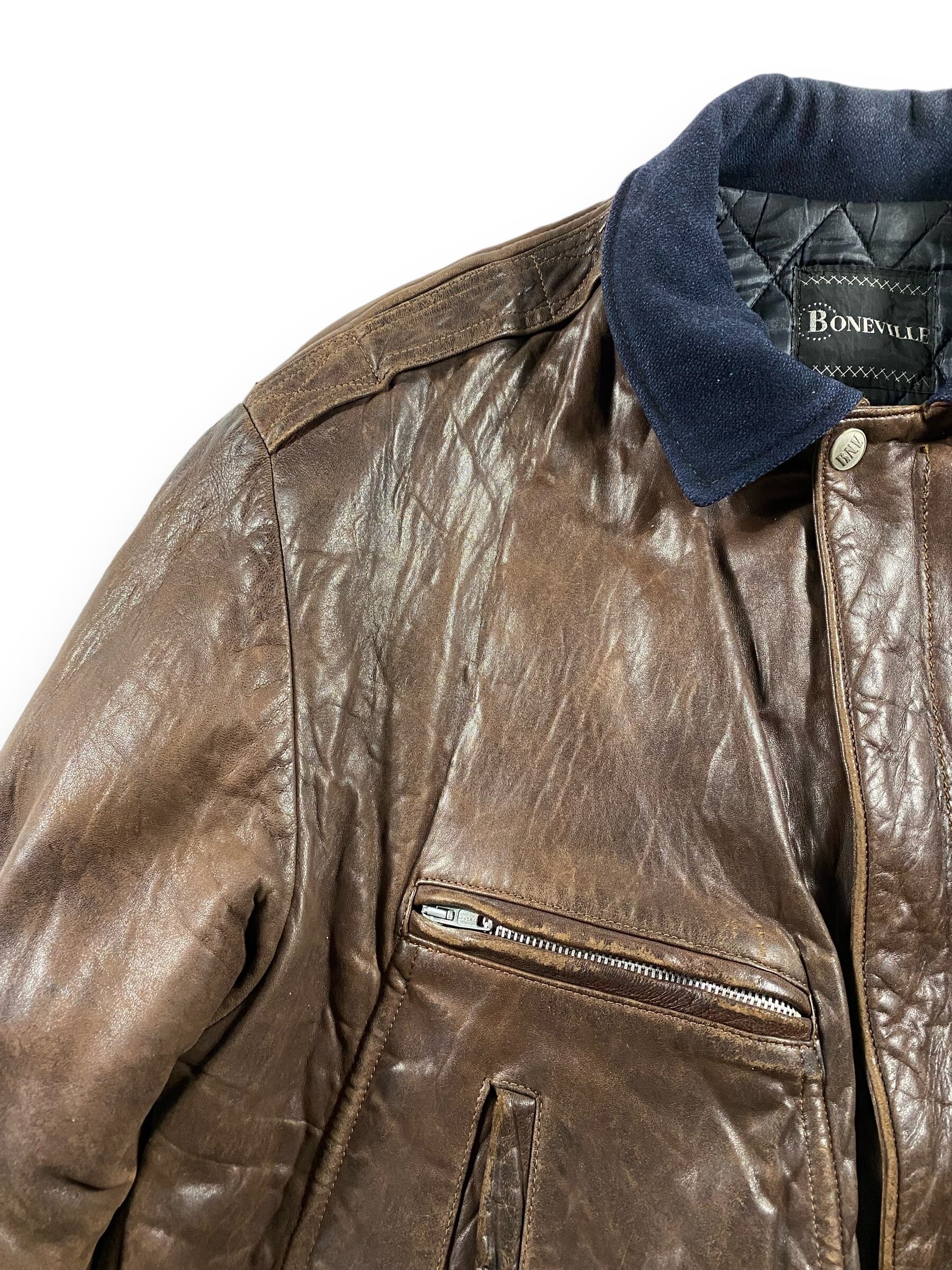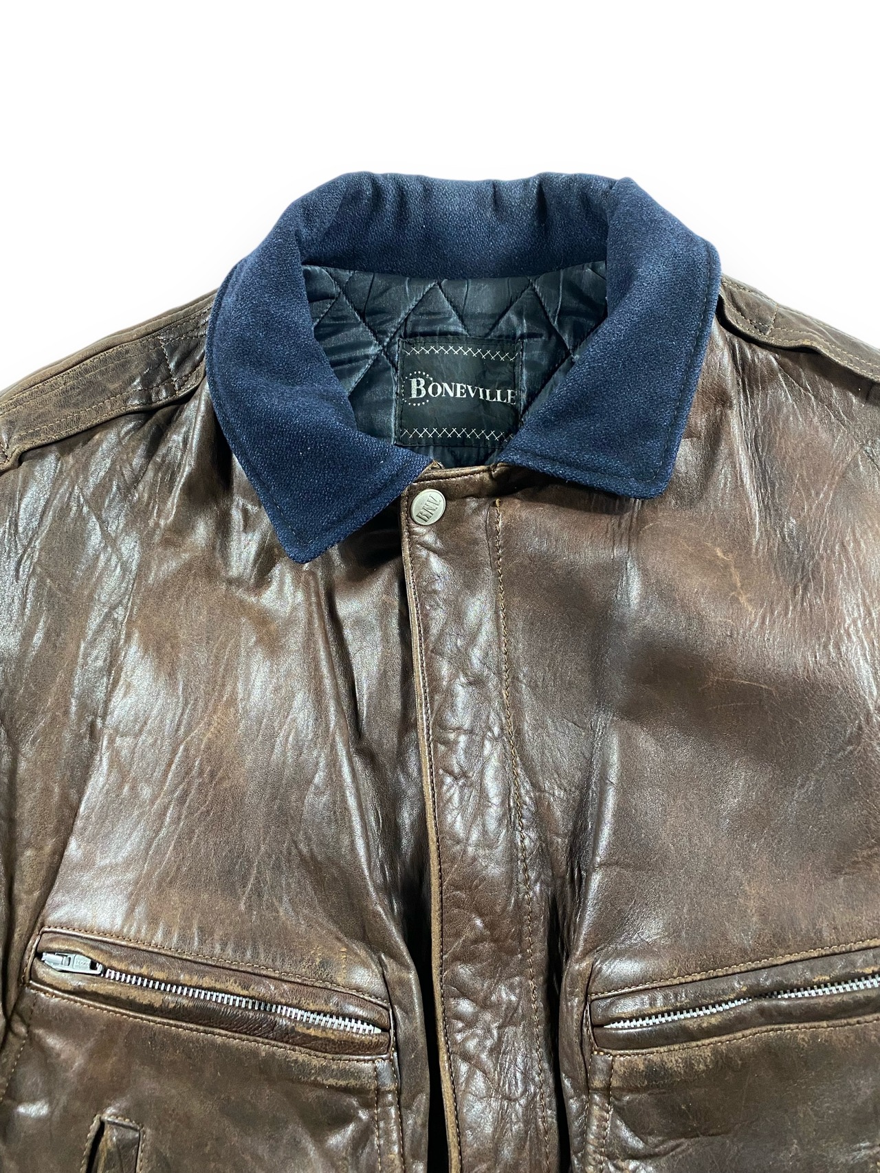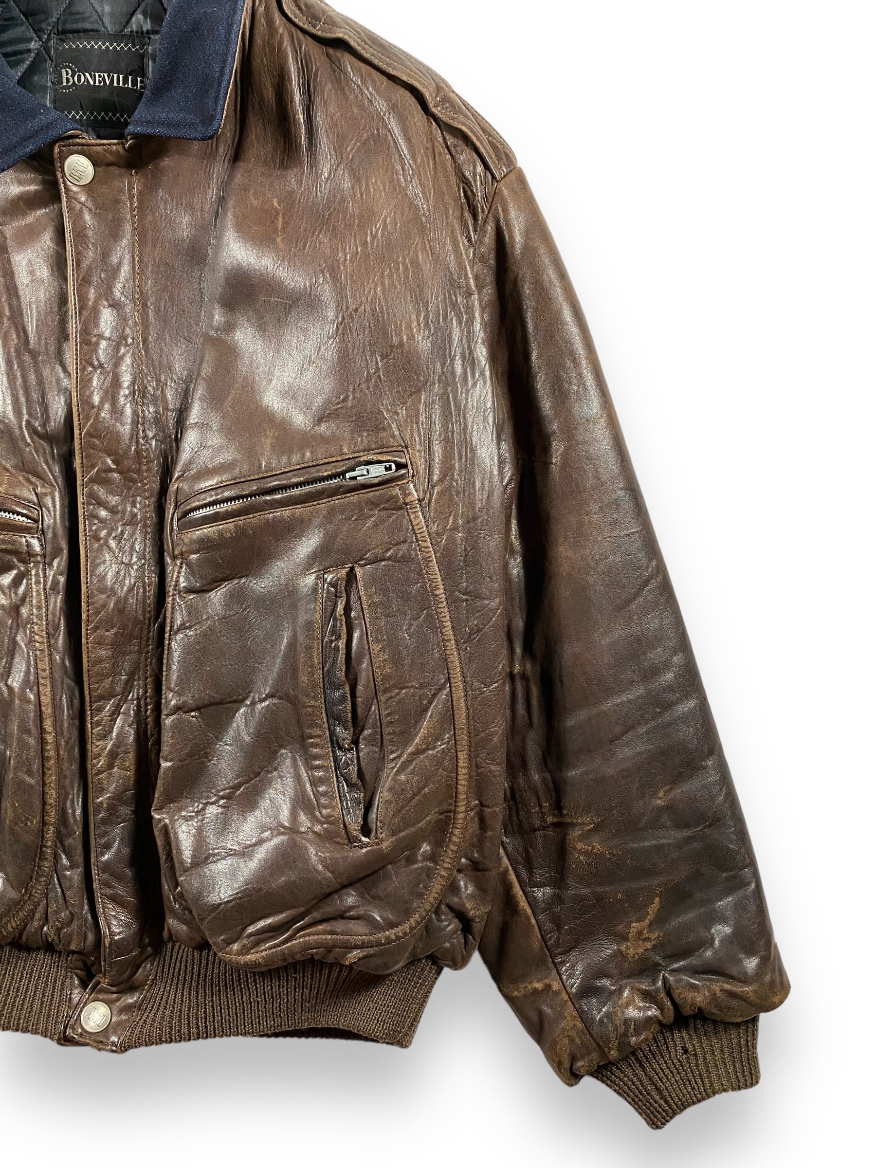 1980's "BONEVILLE NAVY ARCTIC" Lether Filght JKT Brown