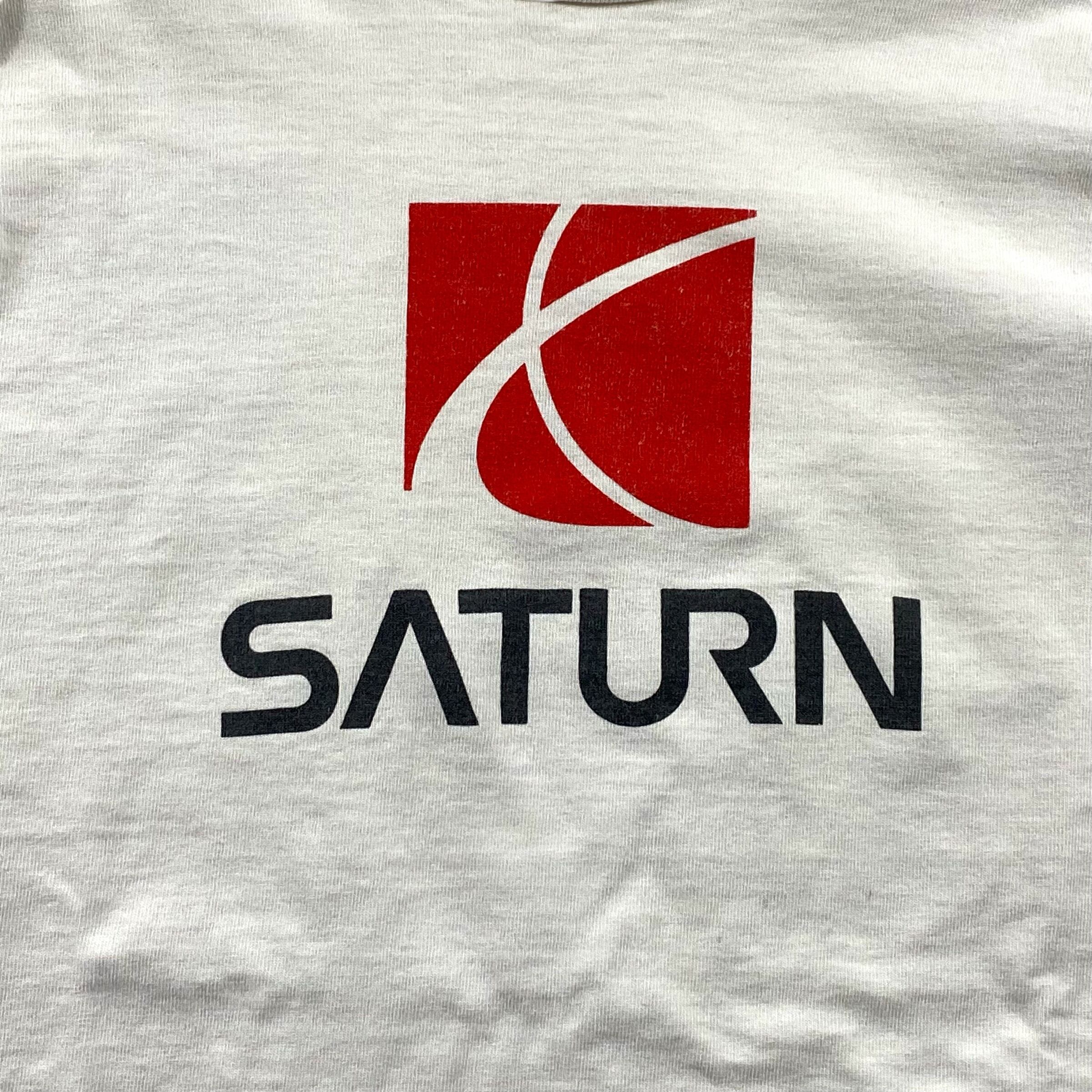 90年代のアメリカの自動車メーカーGM社の子会社である"SATURN"社のロゴ入りロンTです。