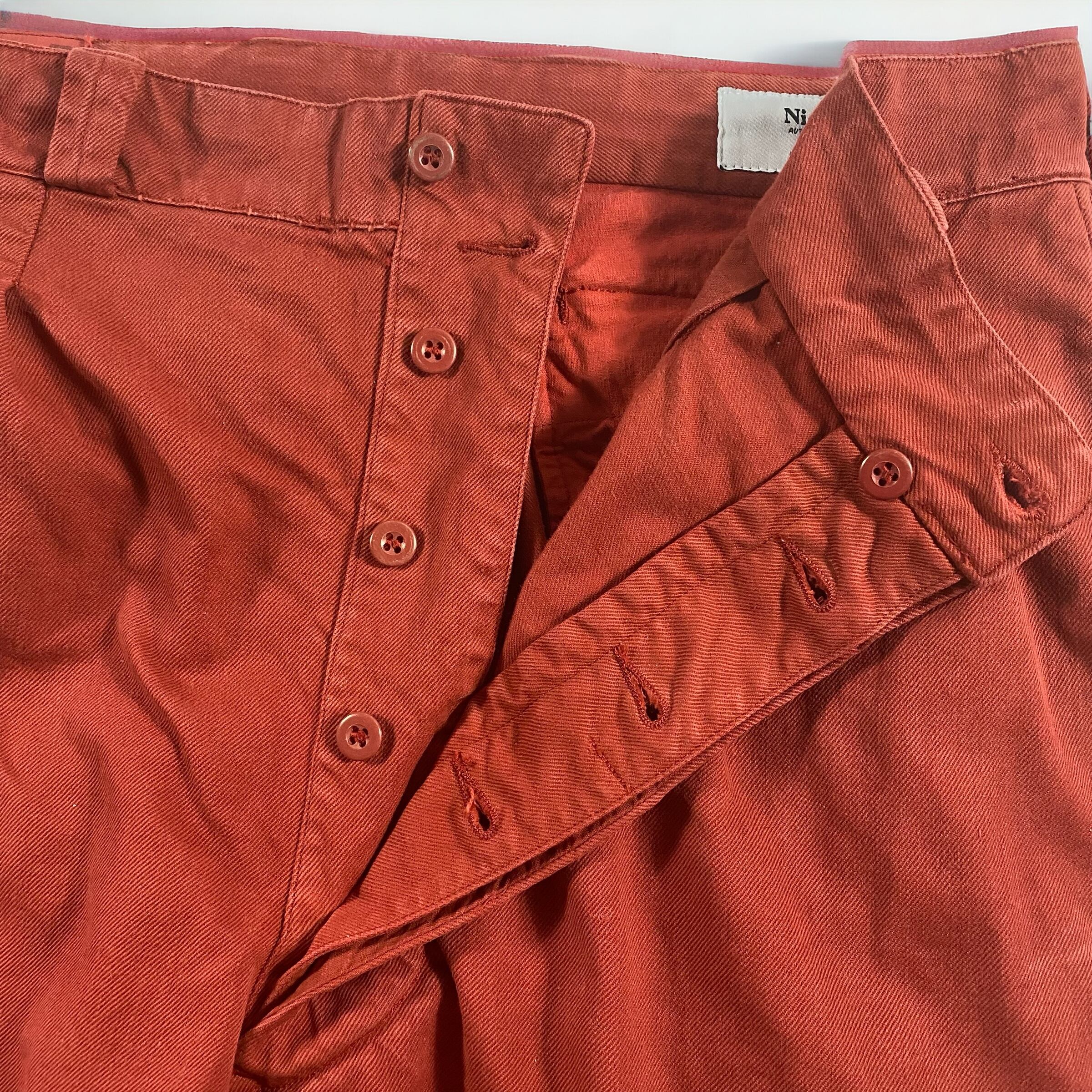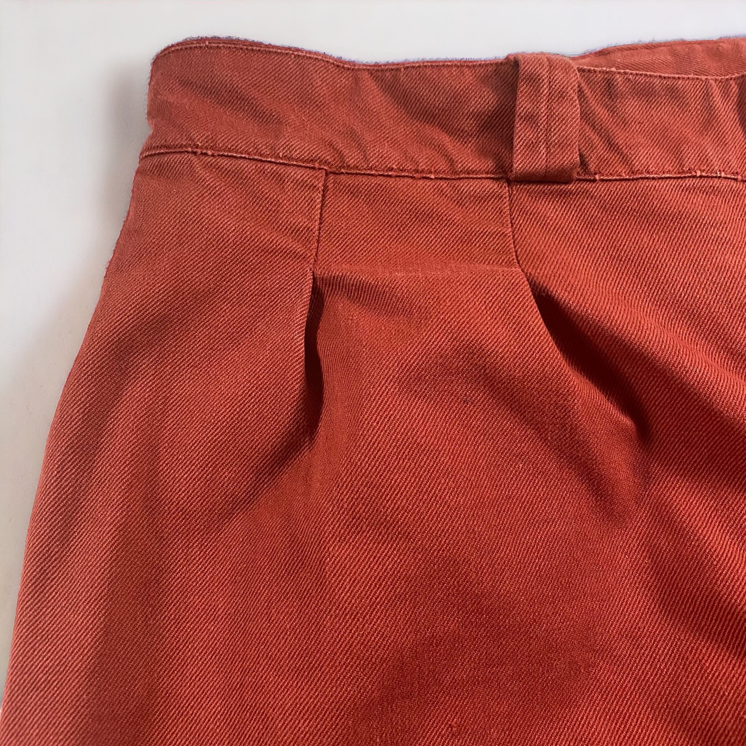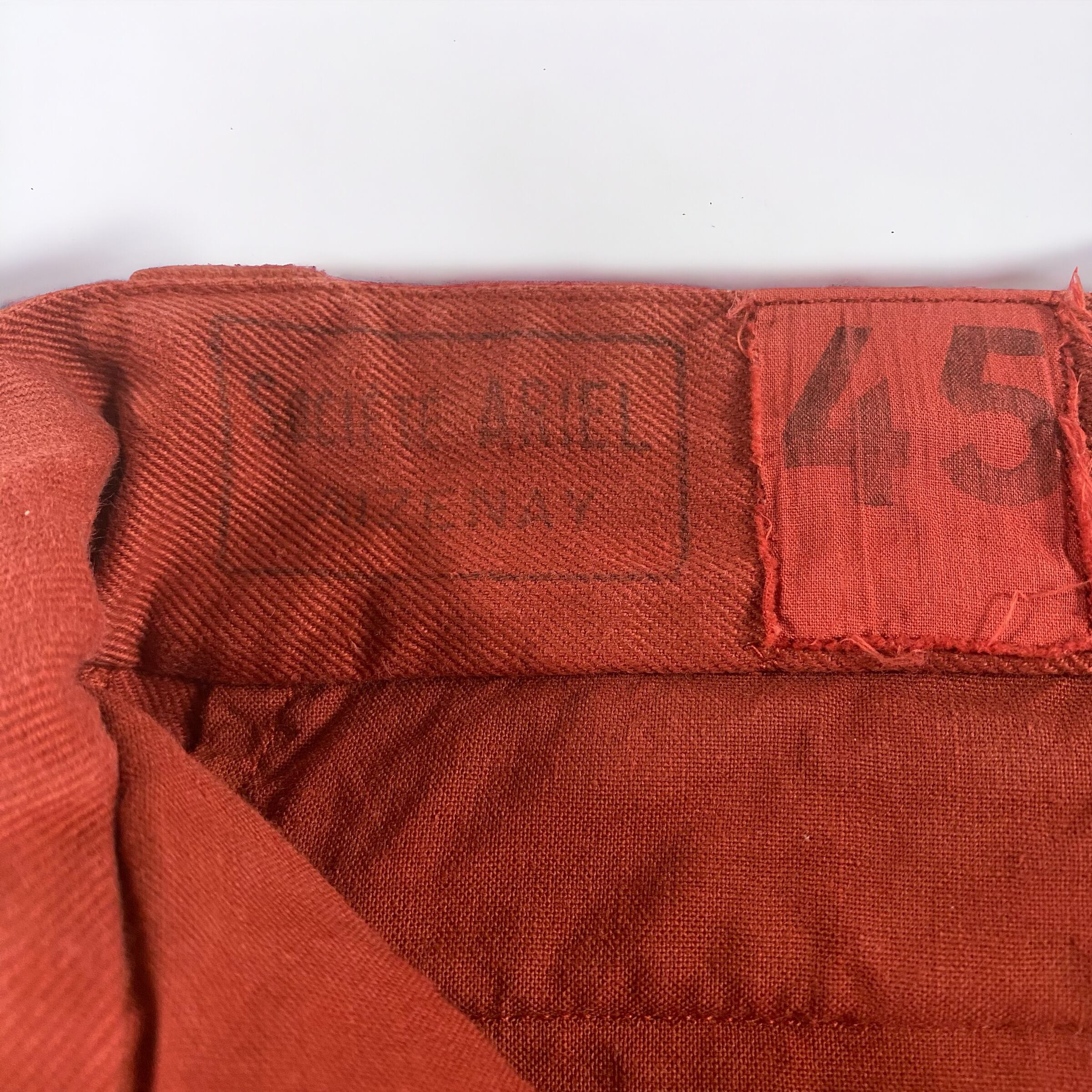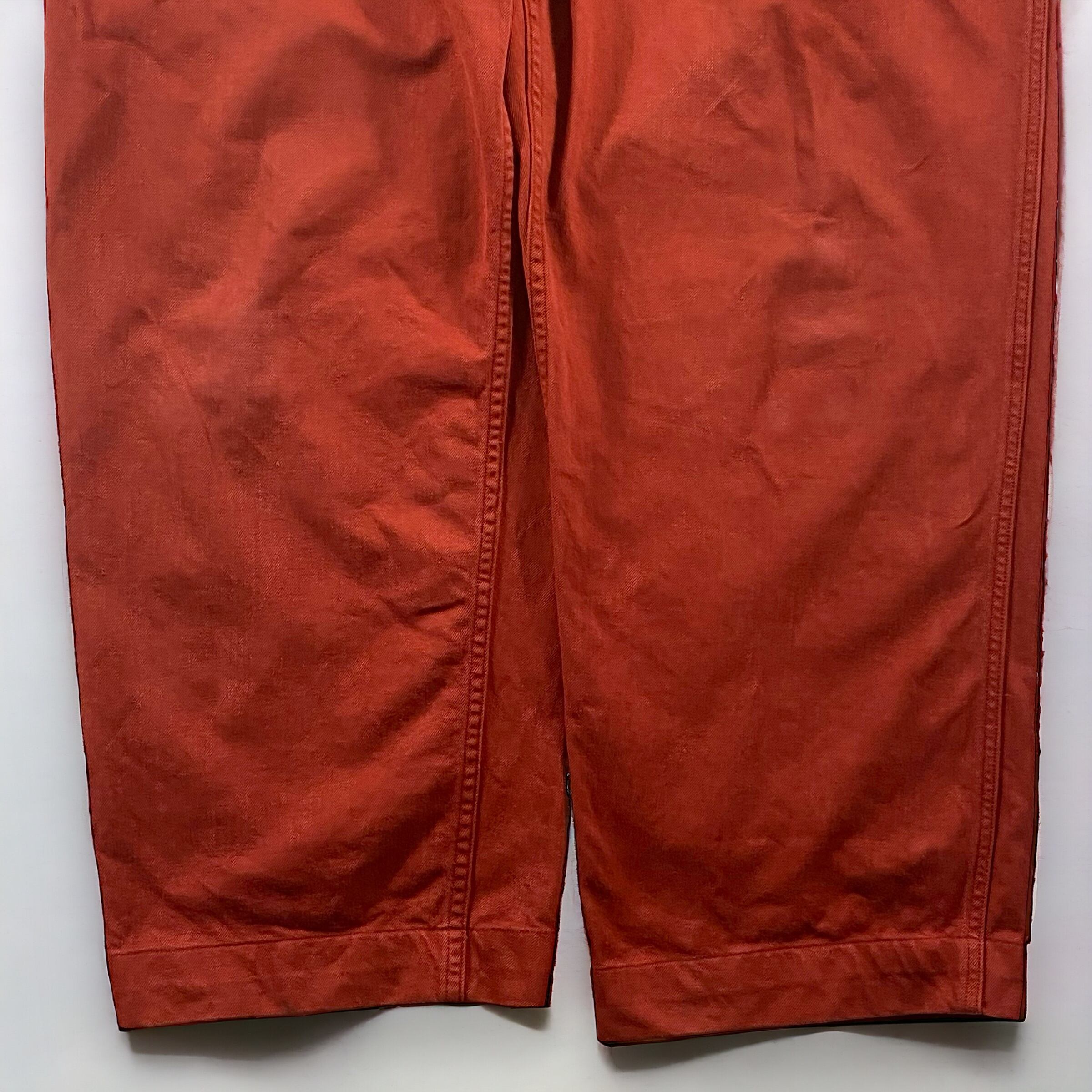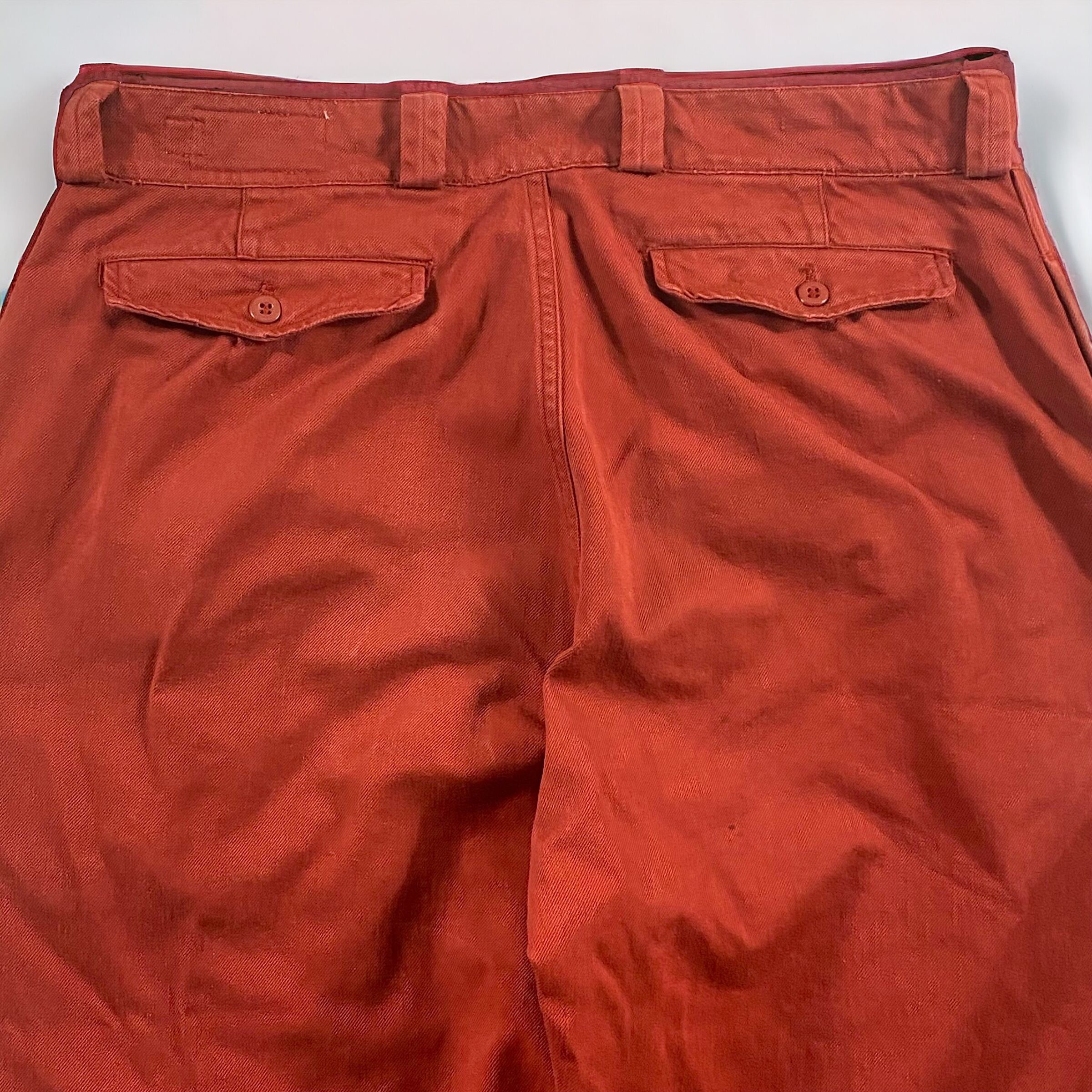 テラコッタの様な、ワインレッドの様な何色にも形容しにくいかなり独特な色味で、元々のM-52のコットンツイル生地と相まってかなり良い雰囲気のパンツに仕上がっています。