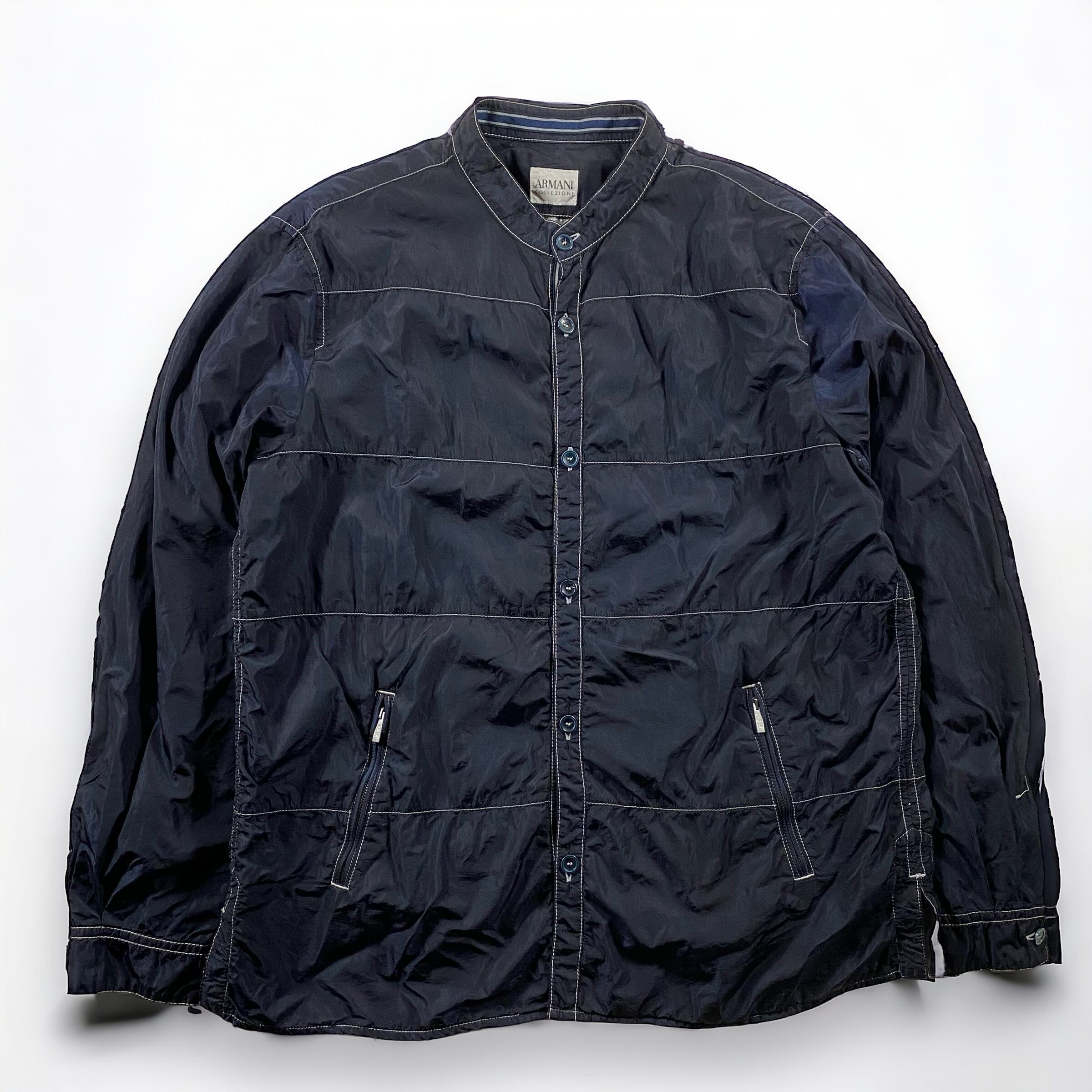 90年代〜00年代頃のアルマーニ・コレッツィオーニよりナイロン生地のバンドカラーシャツJKTです。