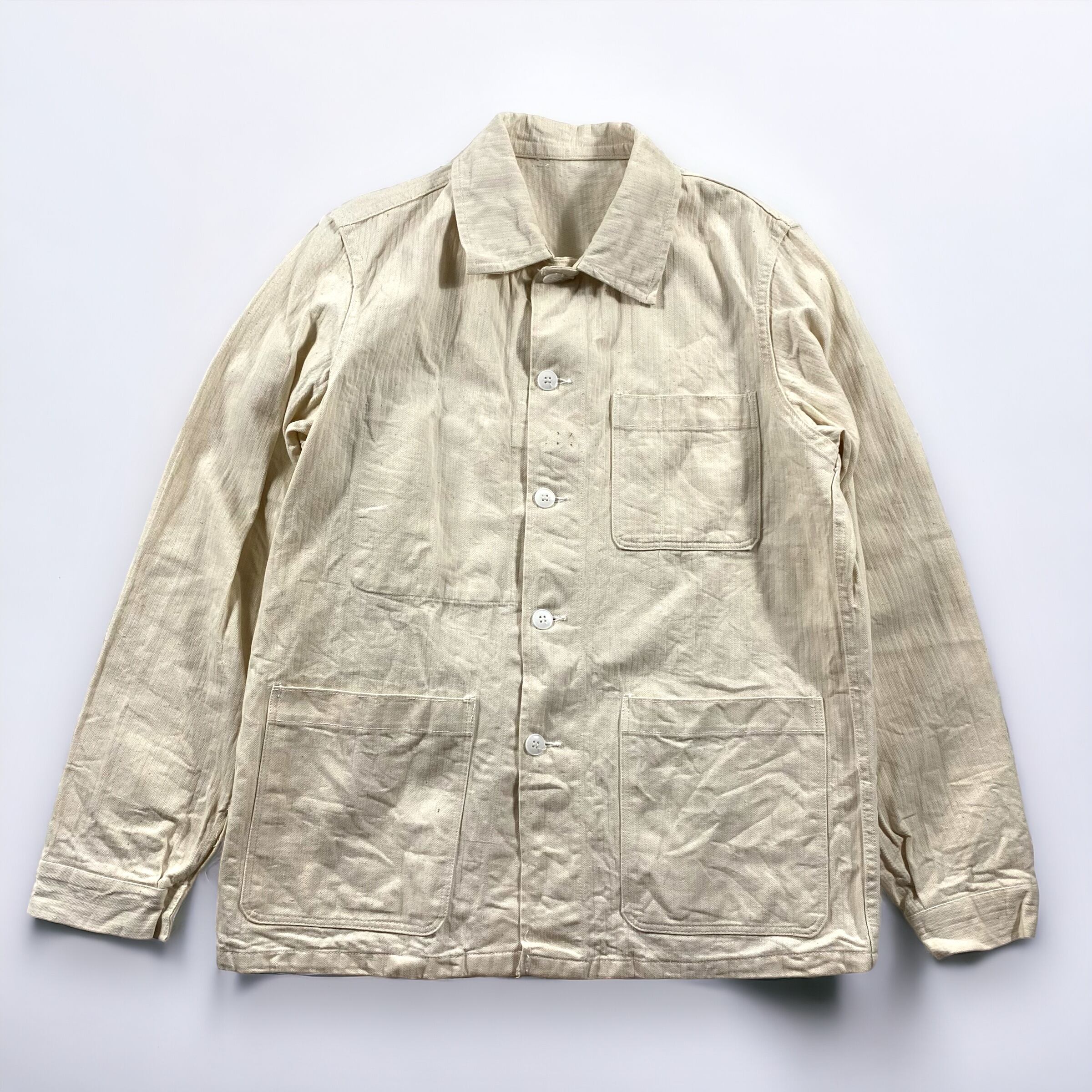 状態はデッドに近いミントコンディションで、春夏になると、着たくなるナチュラル(生成り)カラーが最高で、これから着込む事により、ヘリンボーンの目が詰まり、凹凸感のある雰囲気が出てくるのが、楽しみになる様な個体です◎