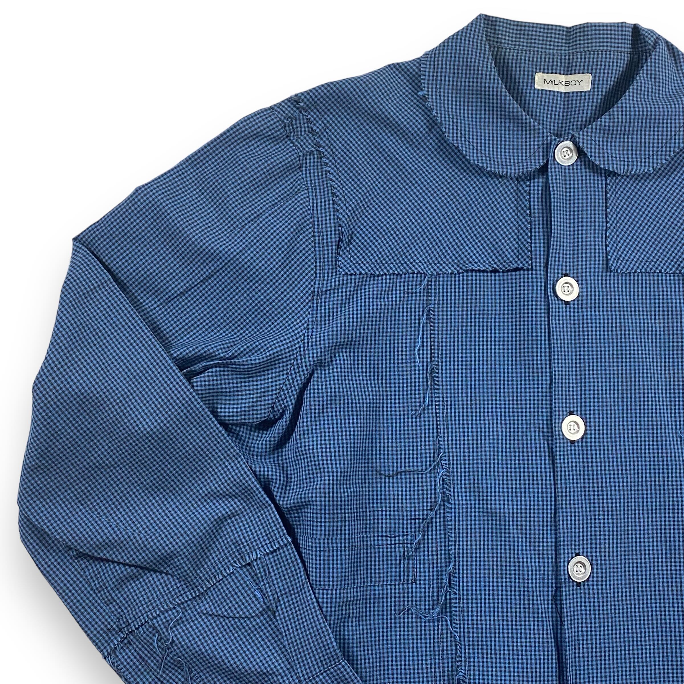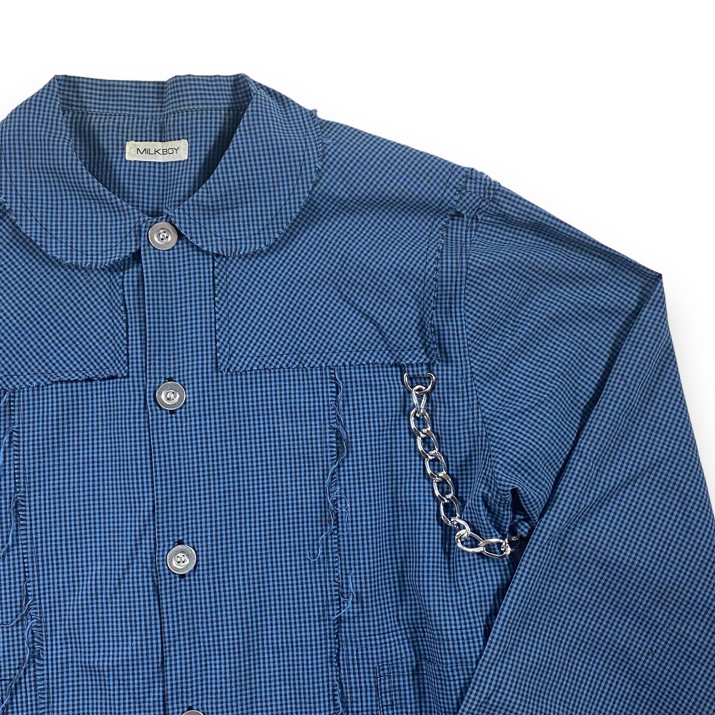 1990's "MILKBOY" Gingham check Destroy Processing Chain Shirt