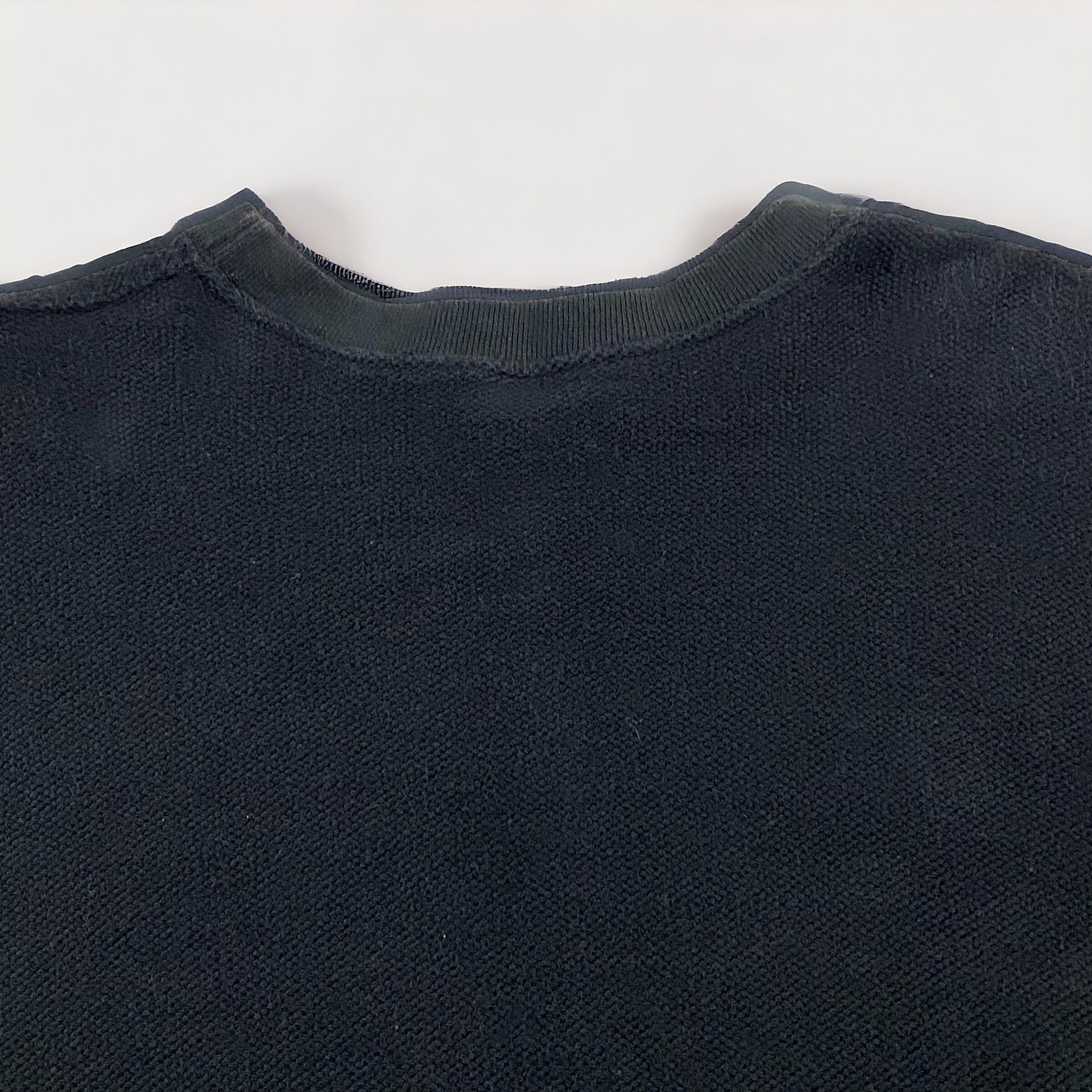 サイズはXLでかなりゆとりのある身幅と肩幅に対して、バランスの良い着丈、更に裾がリブ仕様となっている為、自然とタックインをしてオーバーサイズのスウェットTシャツを着ている様な雰囲気になります◎