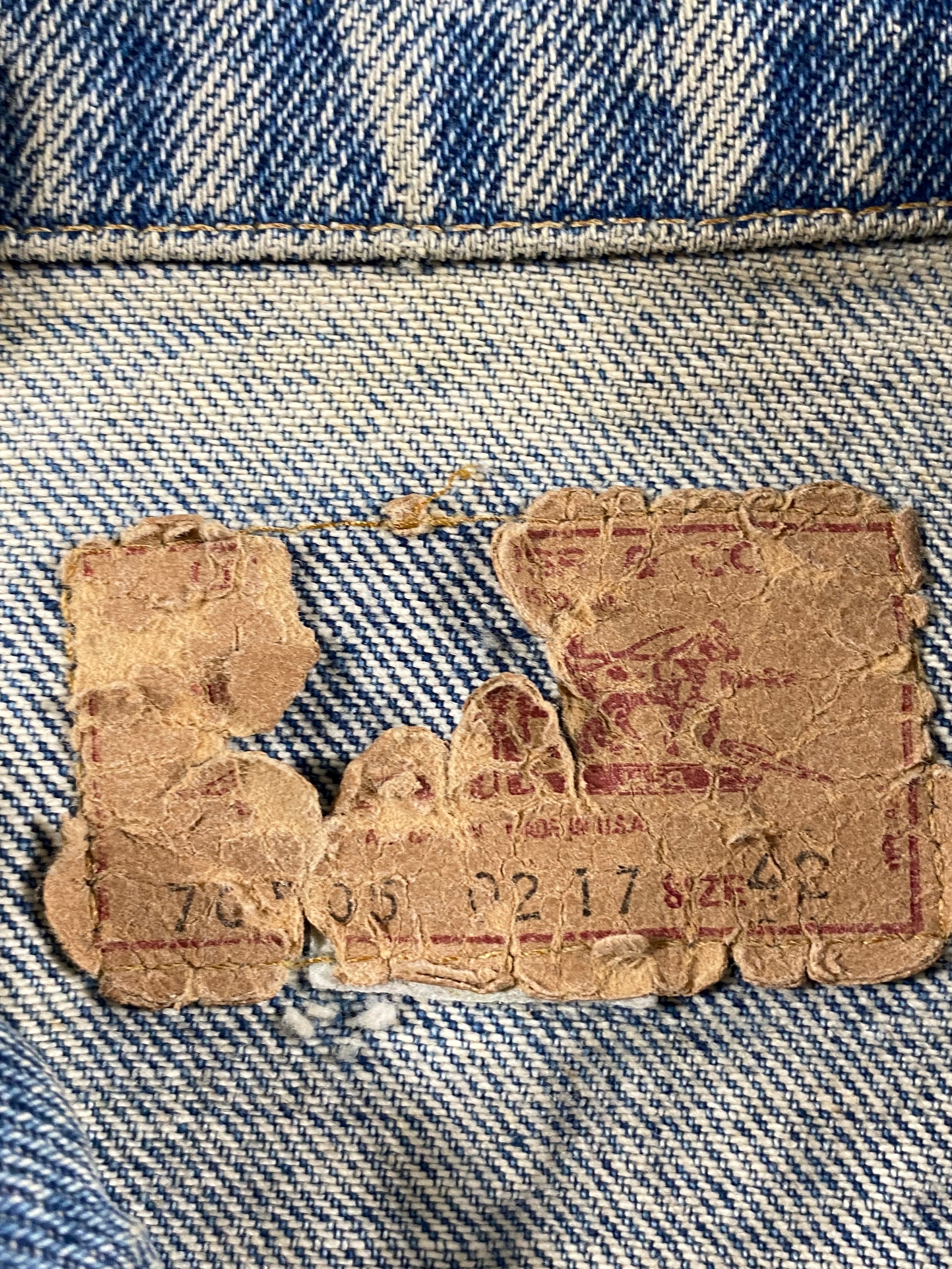 紙パッチに欠損が見られますが、サークルRタグに、ボタン裏のI刻印(70年代のバレンシア工場製)から、ビッグEからスモールe変更直後の70年代初頭のアイテムと思われます。