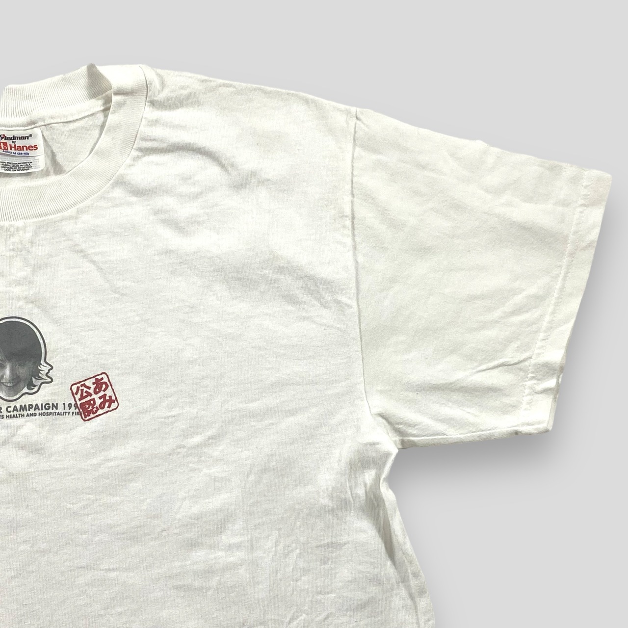 近年、感度を高い方々を中心にジワジワと盛り上がりを見せている90年代のジャパニーズタレントやアーティストのアパレルですが、こちらは謎にStedman表記のアメリカ製ヘインズボディーを採用している点もネクストヴィンテージ的な観点から見ても面白い一枚かと思います。