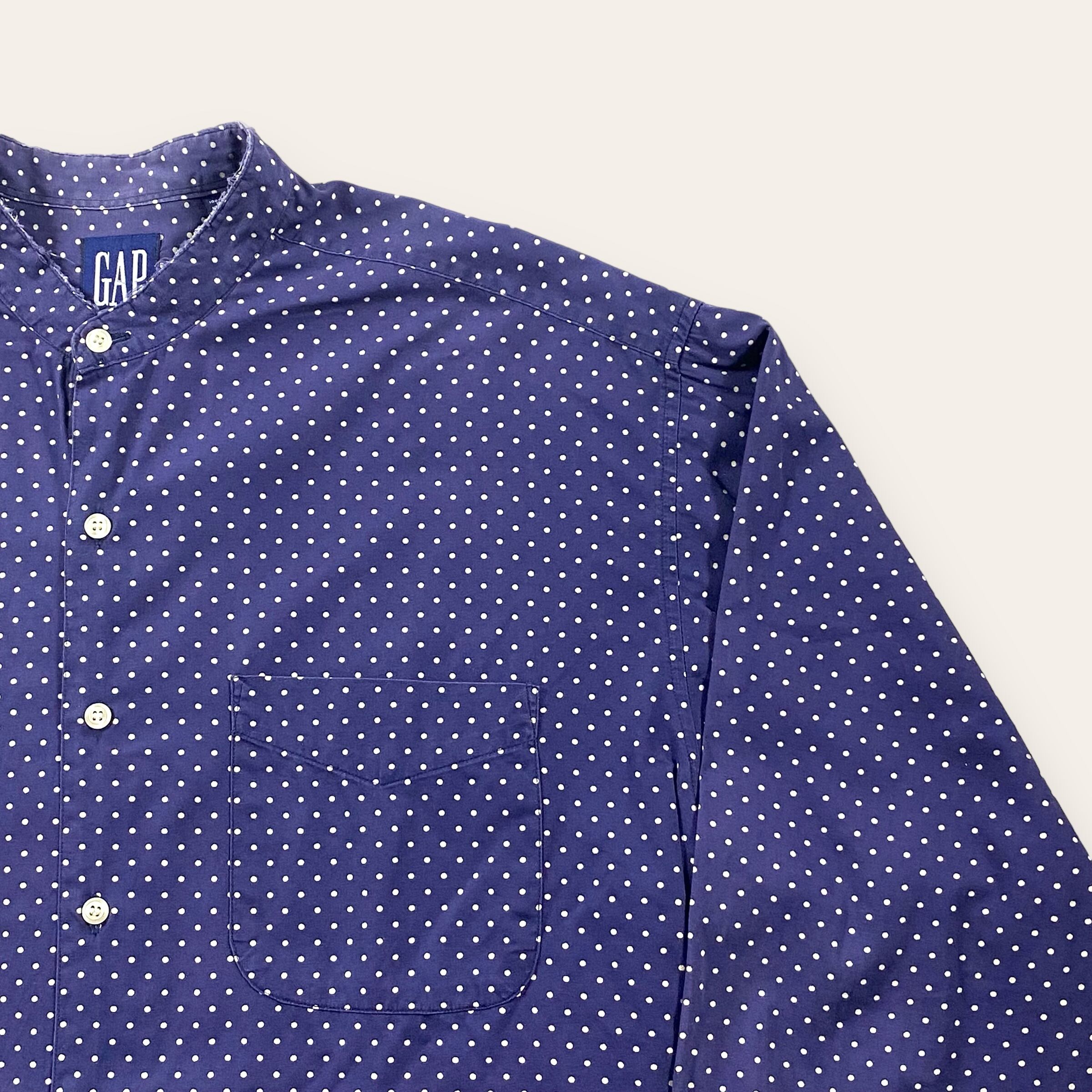 1990's OLD"GAP" Polka dot Cotton Shirts "Band Coller Remake" Size:L