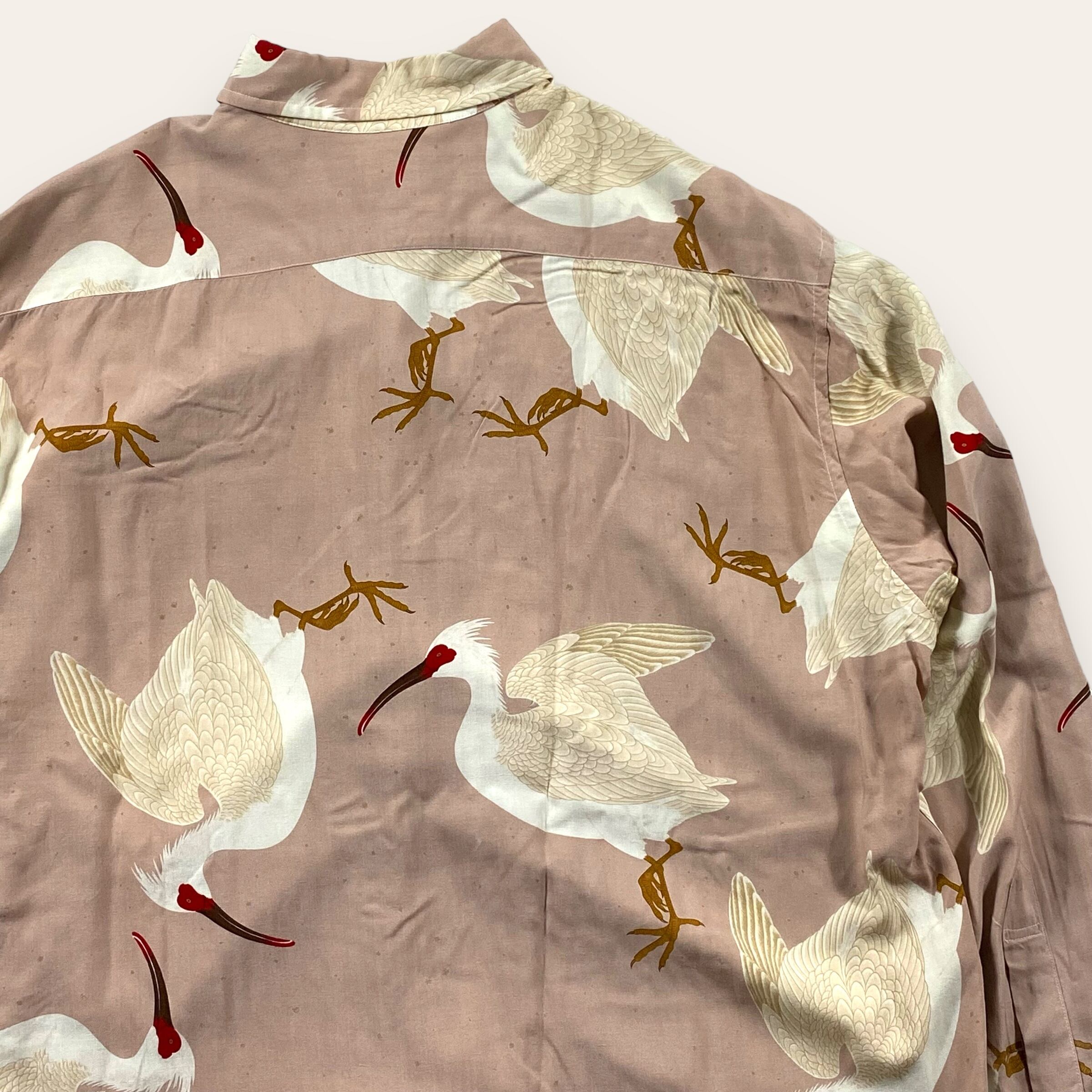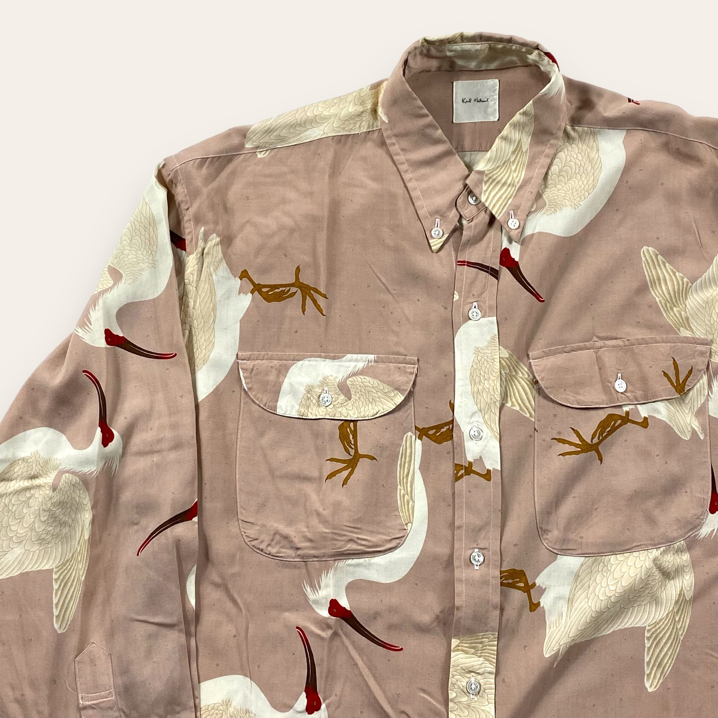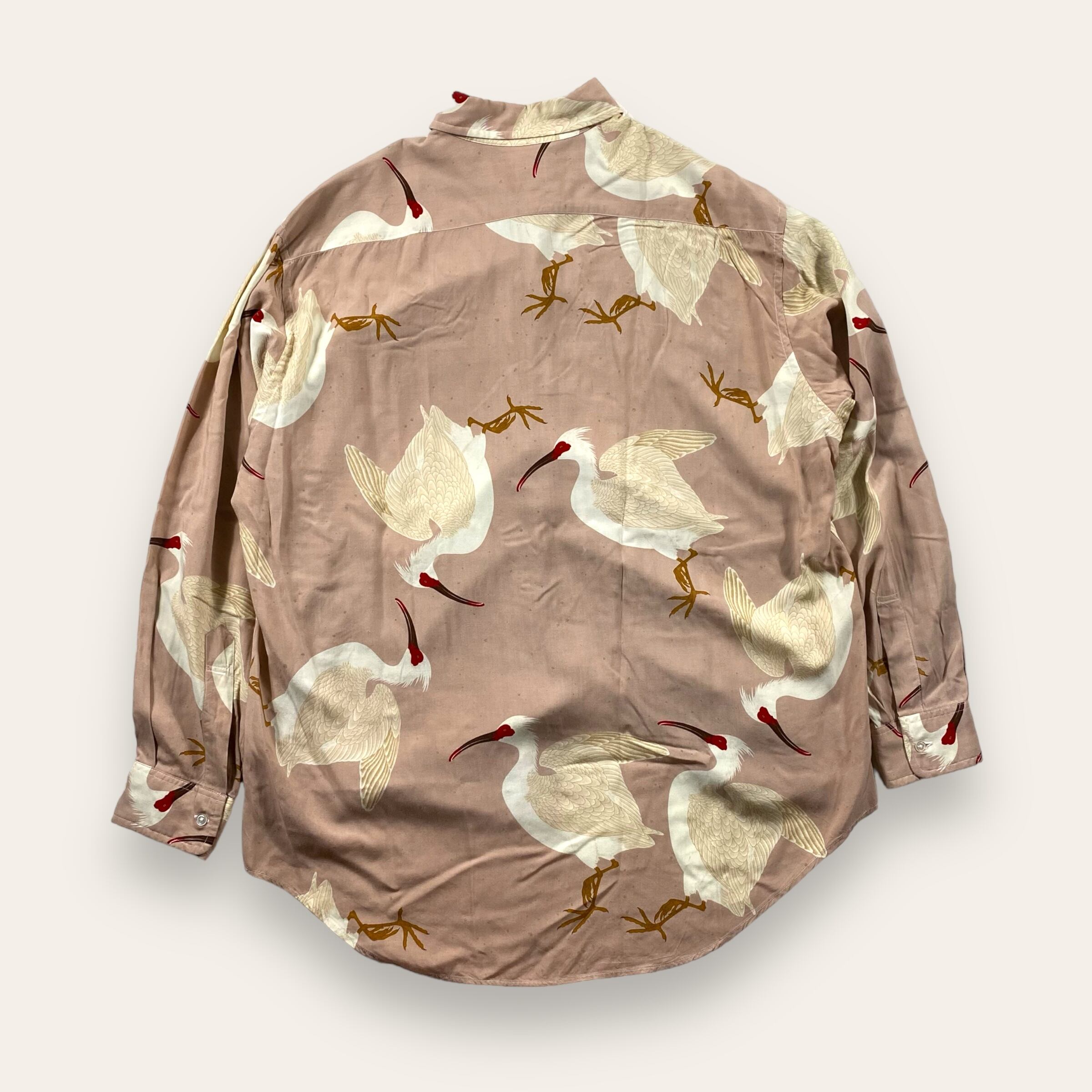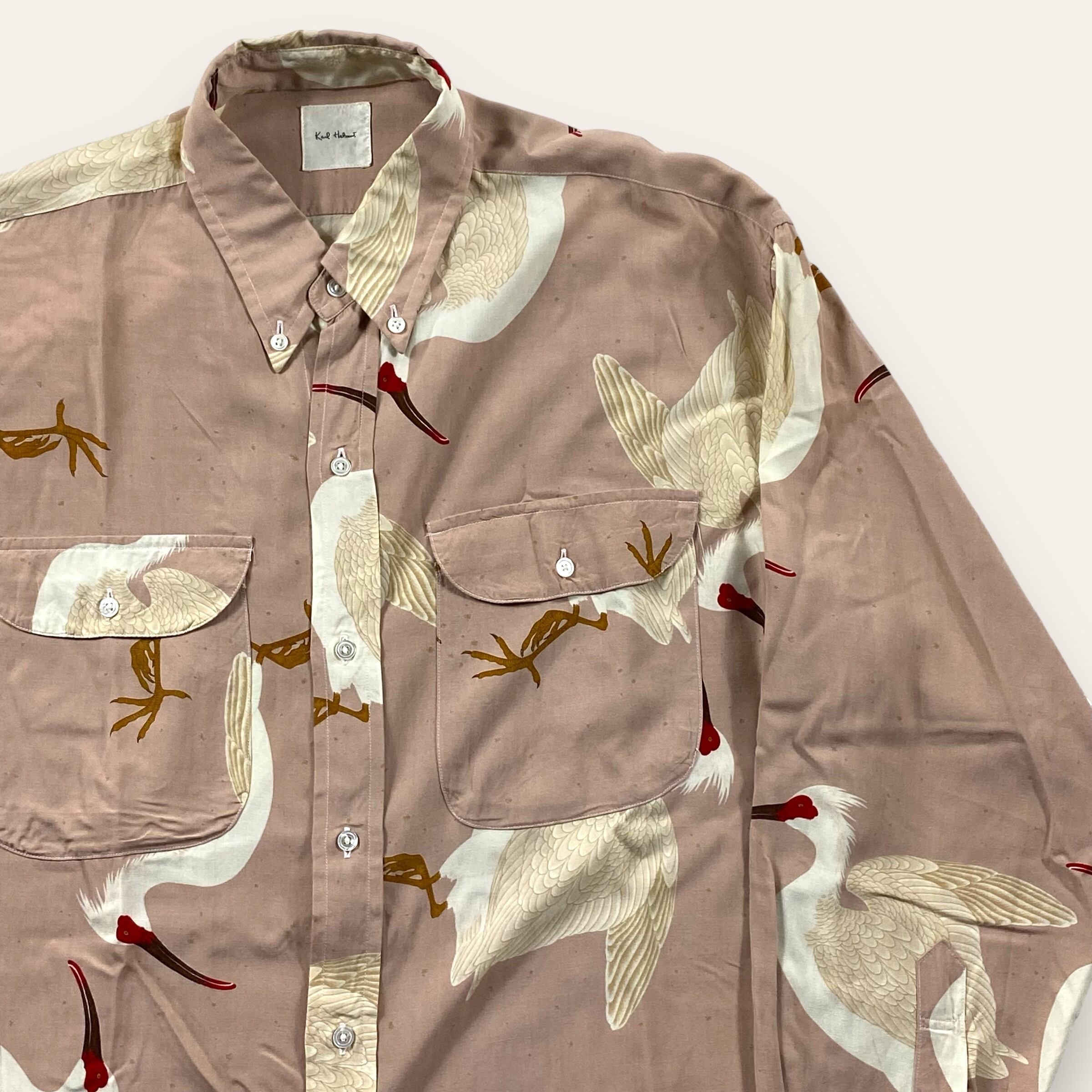 80年代のカール・ヘルムのアーカイブより、朱鷺が全面にプリントされたレーヨン100%のボタンダウンシャツです。