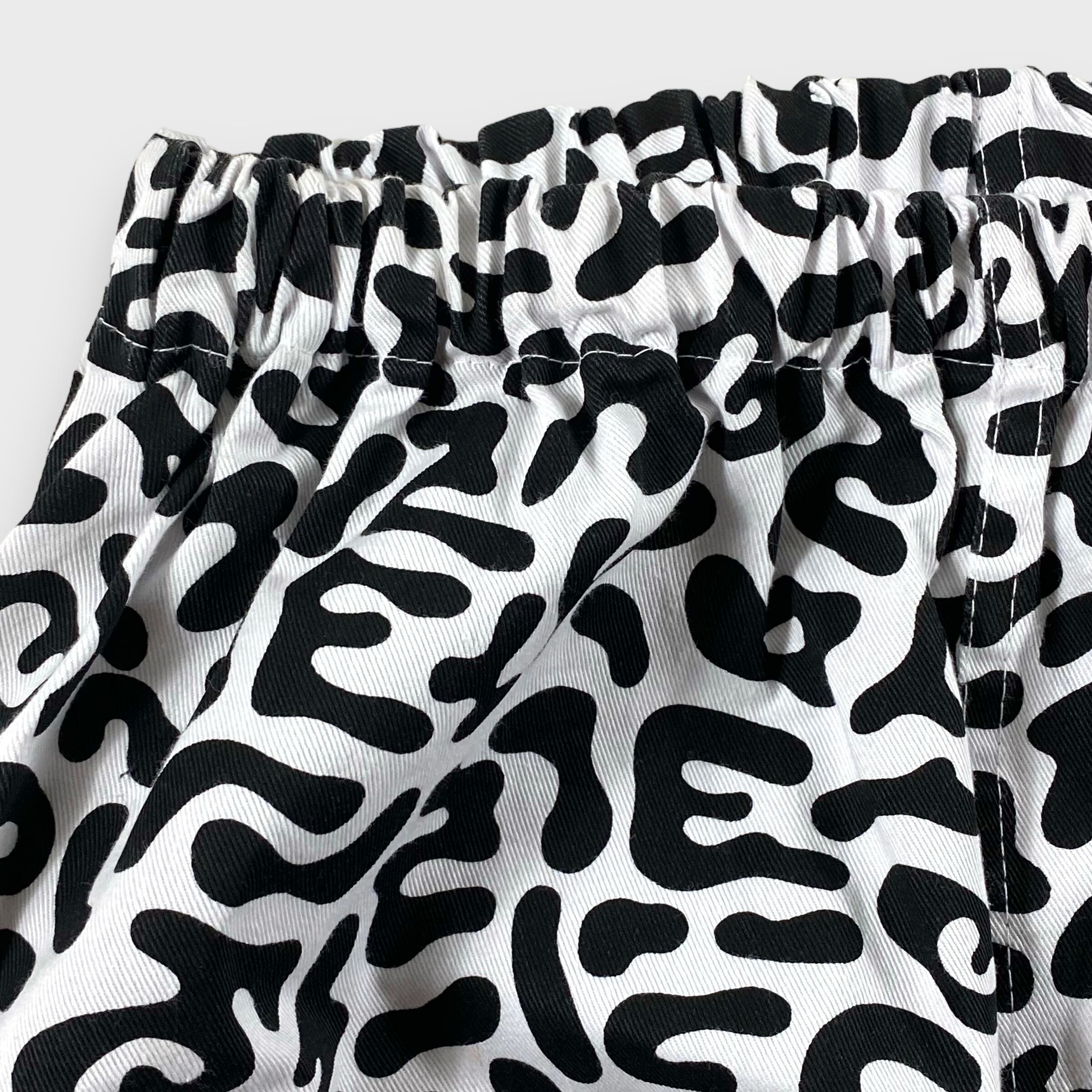 ポリエステル素材で履き易く、ウエストはゴム仕様、ワイドテーパードなシルエットにやや短めなレングスが生み出すシルエットが最高です◎