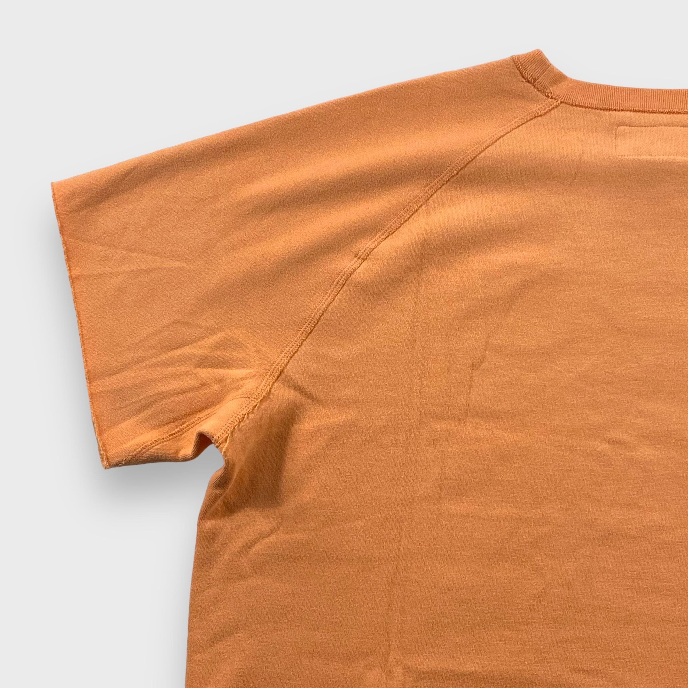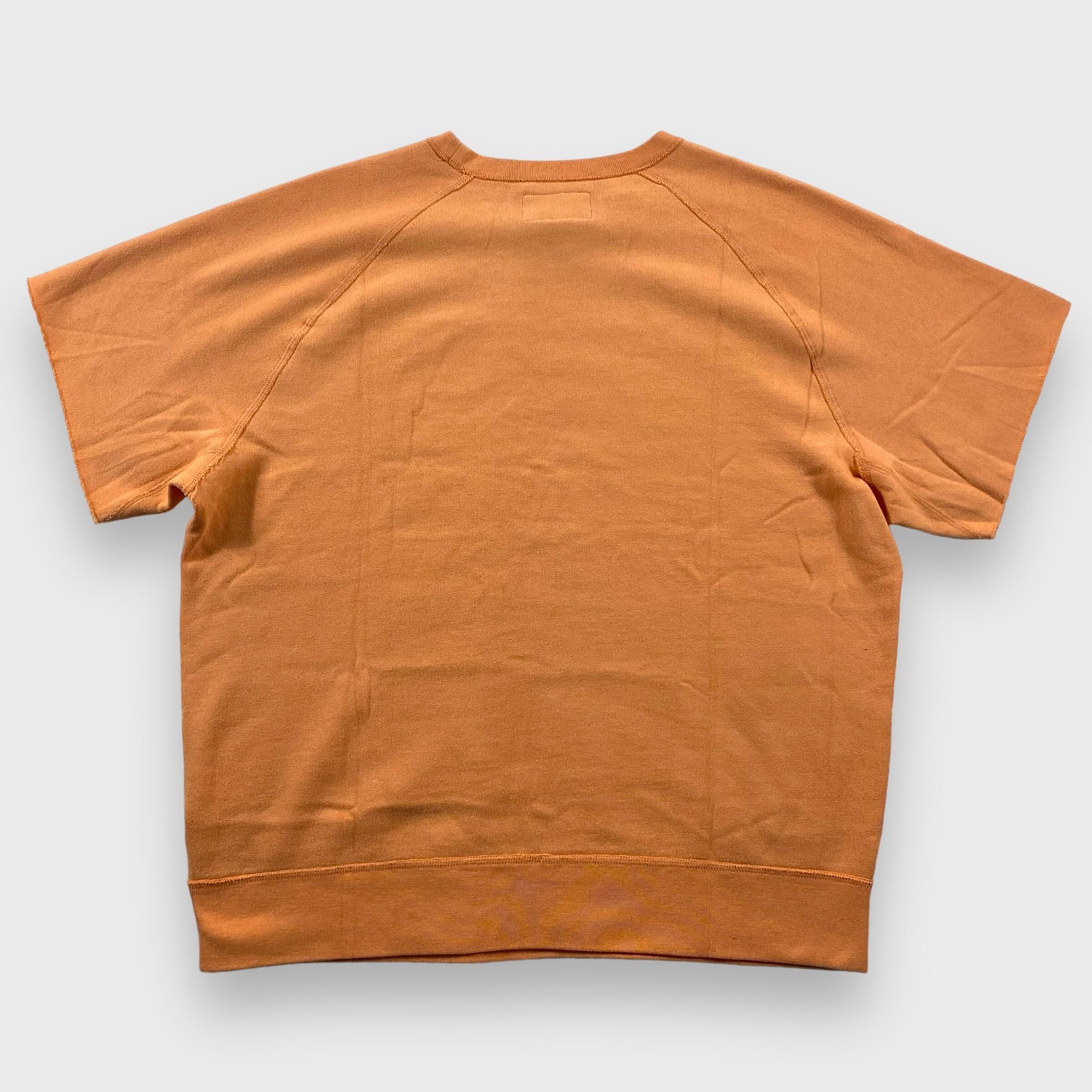 こちらは50'sのスウェットに見られる脇下ガゼットや、60'sのスウェットに見られるラグランスリーブなどの、ディテールを踏襲し、カットオフされた袖口やフェードしたオレンジカラーが特徴的な正に"デニサプ"な半袖スウェットです。