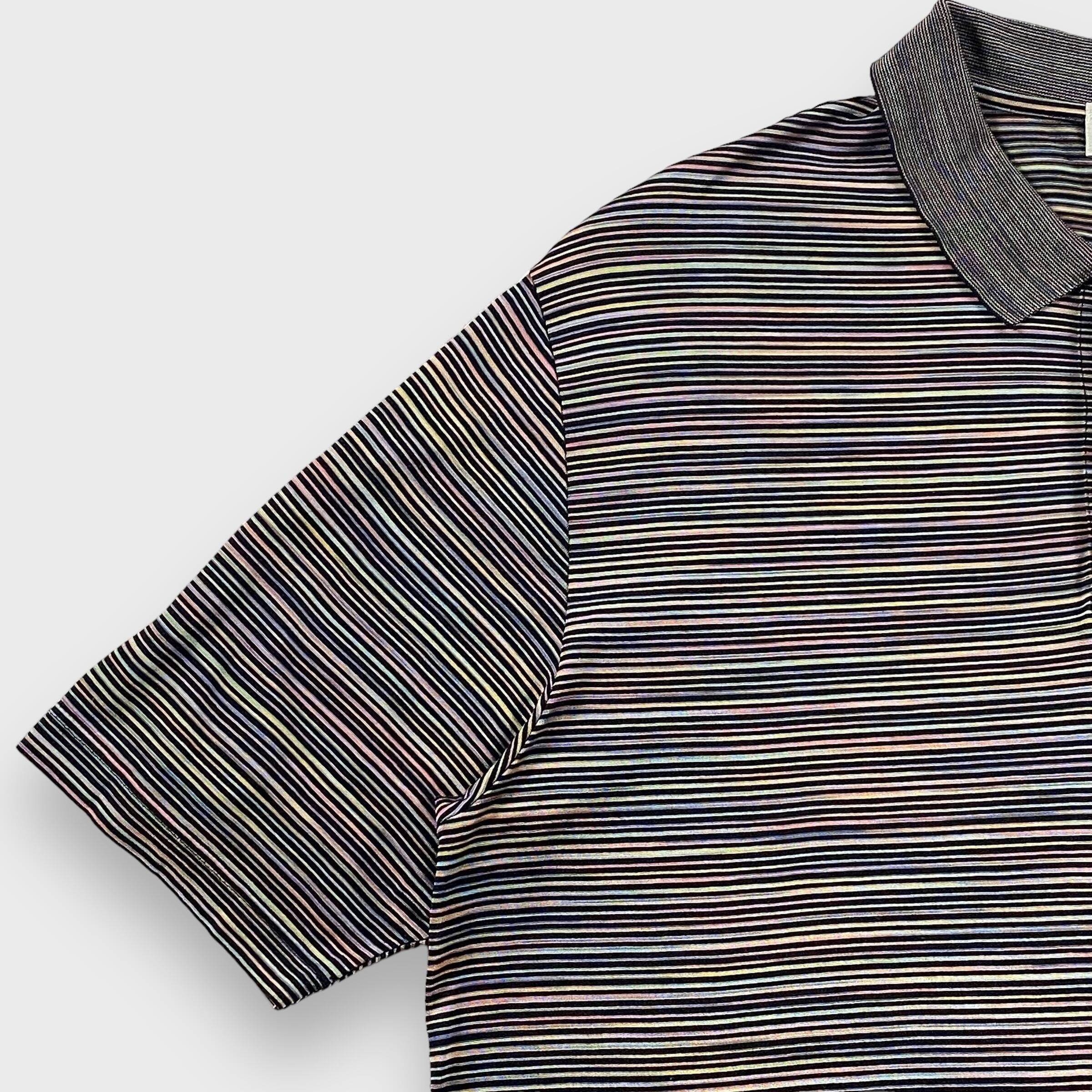 1990's MISSONI SPORT Cotton Multi Border Polo Shirts XL MADE IN ITALY