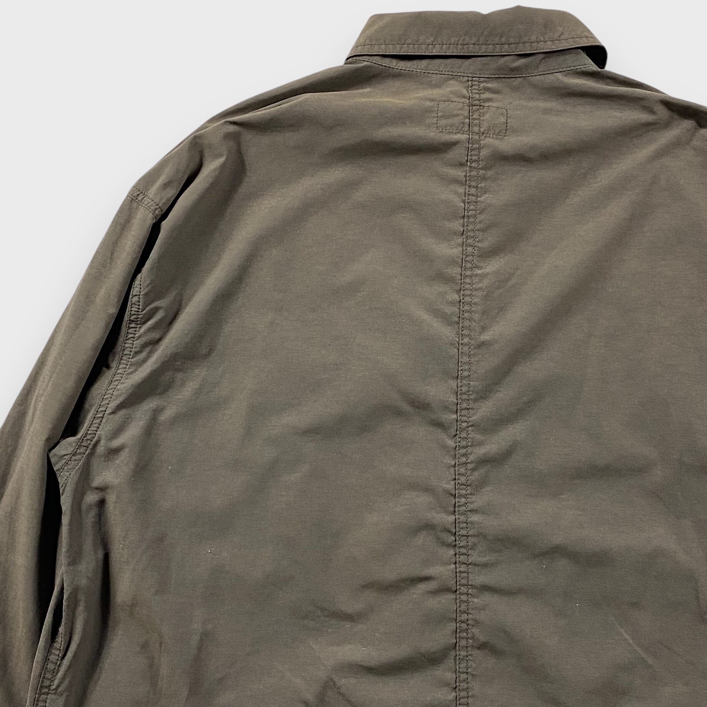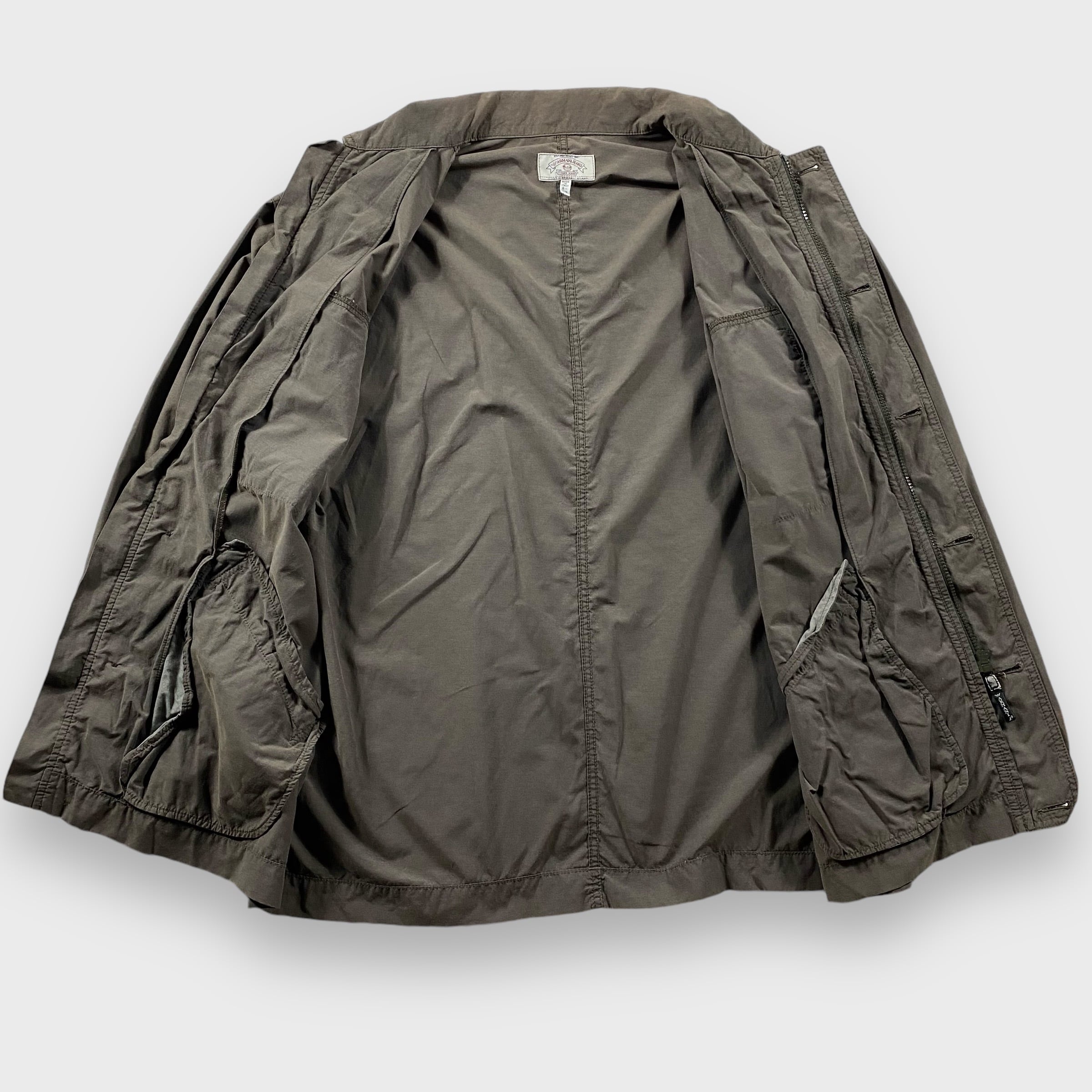 フロントは前立てのボタンとジップの二重構造となっており、ボディーはコットンポリアミド素材。非常に軽くサラッと羽織れて、サイズバランスと相まって生み出される独特のドレープ感が堪りません。