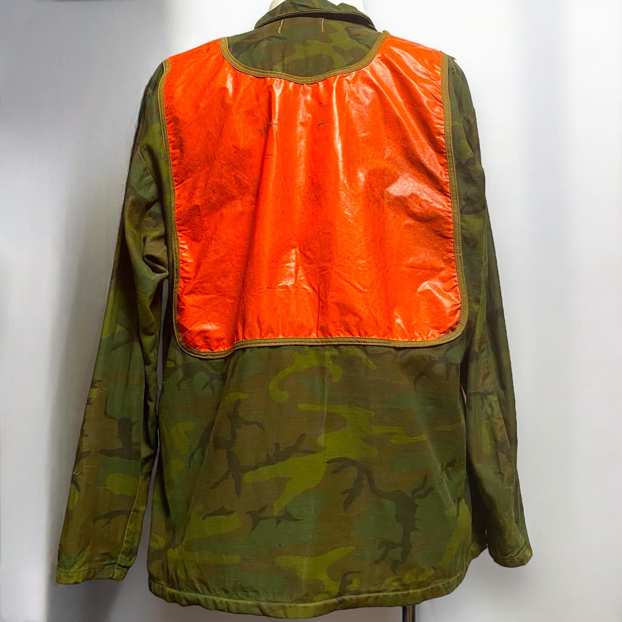 コットンツイルのリーフカモボディに、PVC素材をドッキングさせて、撥水性能を持たせたヴィンテージのハンティングJKTです。