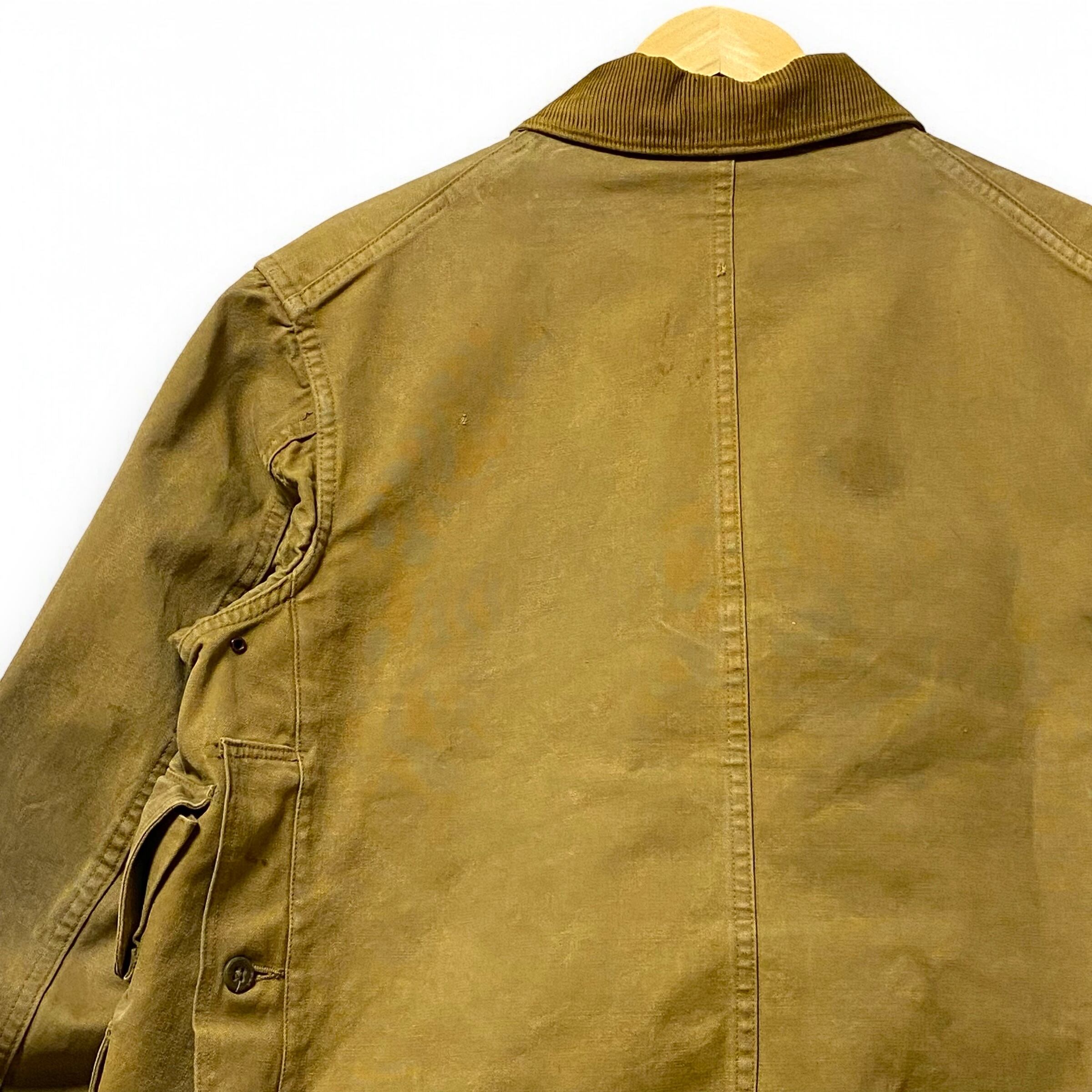 またフロントに配置された大きめの二段式のマルチポケットや、背面のゲームポケット、肩口の補強などハンティングJKTならではのディティールが、ビスポーク品が故の珍しい作りになっており、意図せずにデザインとして効いているのも素晴らしいと思います◎