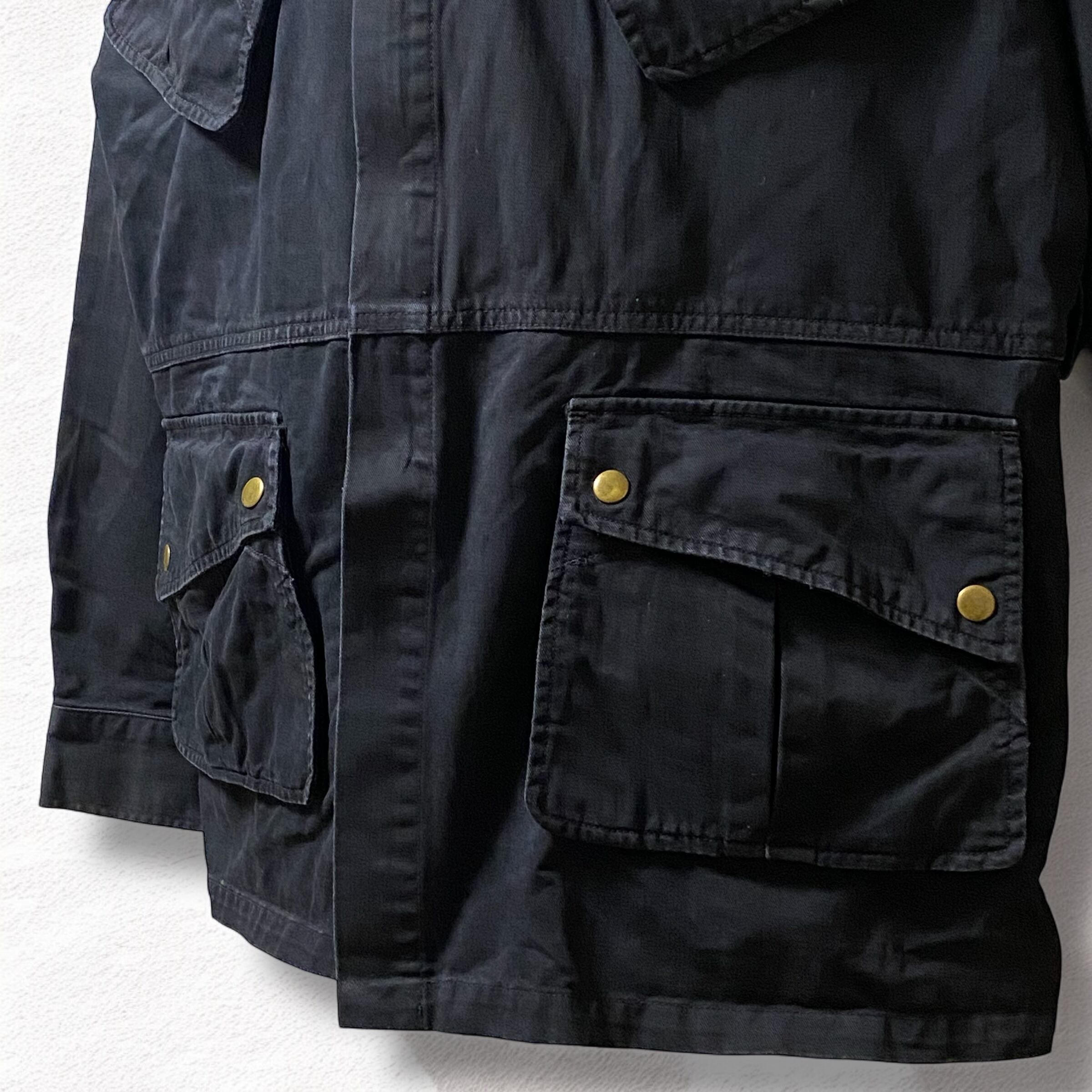 斜めに配置されたプリーツポケットや、フラップの形状、ボタンの質感にまでオリジナルへの強いリスペクトを感じる事が出来て、カラーがブラックという点も最高かと思います。